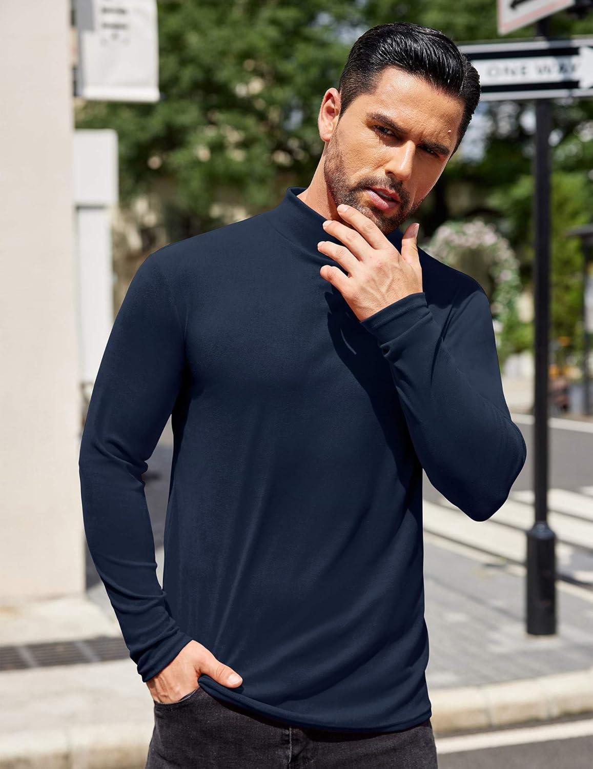 • COOFANDY Mens Mock Turtleneck T-Shirts Long Sleeve Solid Color Tees Shirts Basic Casual Slim Fit Pullover T Shirts(Blue)