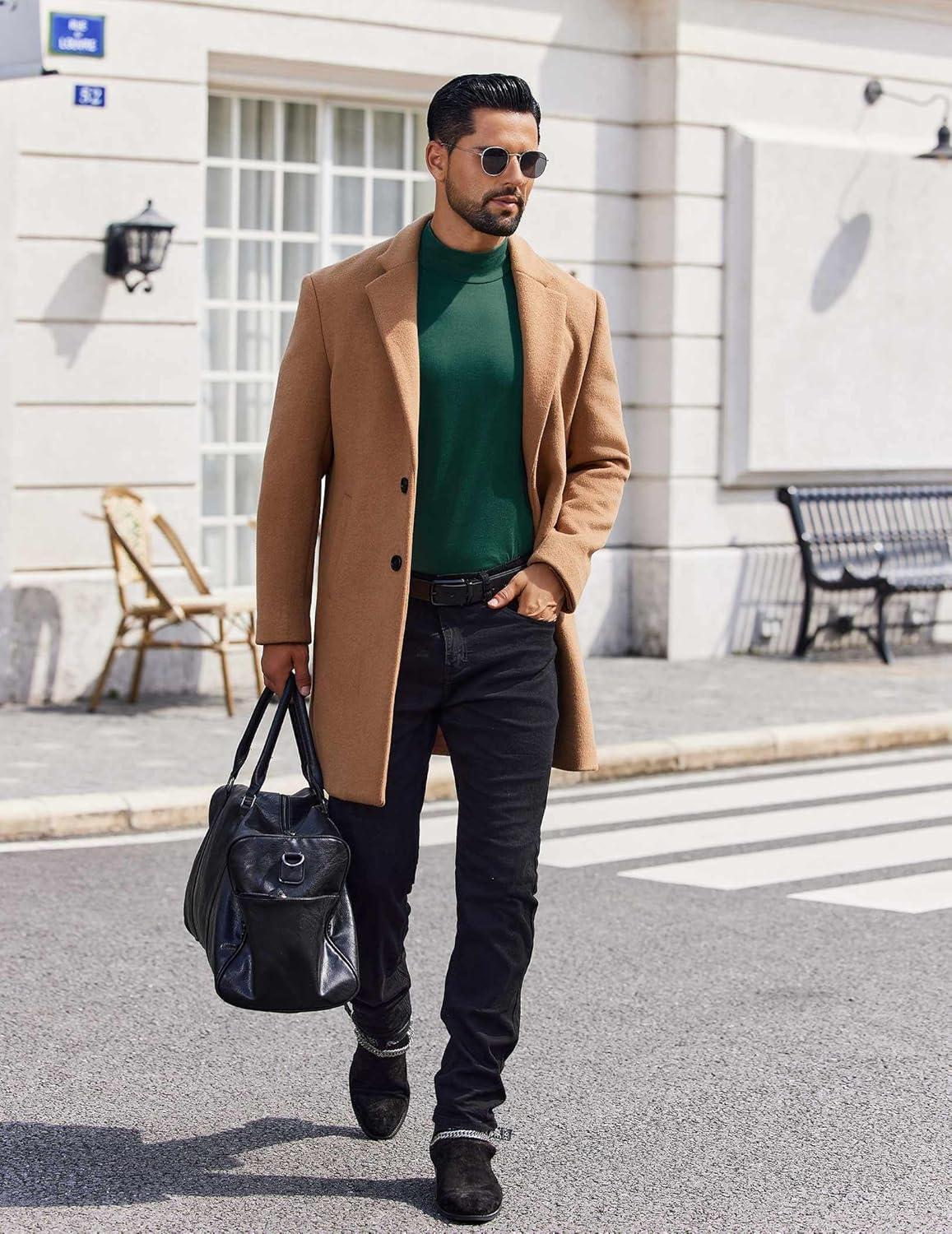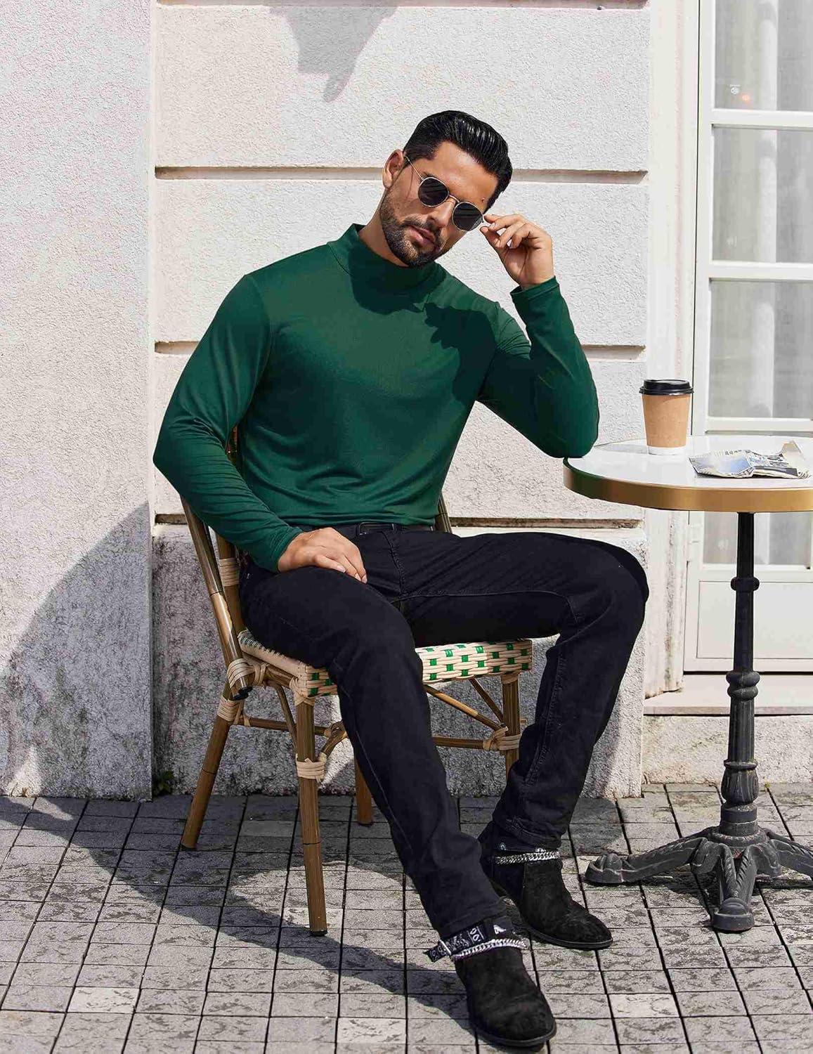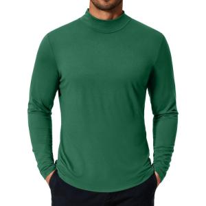 • COOFANDY Mens Mock Turtleneck T-Shirts Long Sleeve Solid Color Tees Shirts Basic Casual Slim Fit Pullover T Shirts(Dark Green)