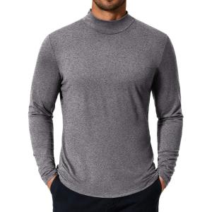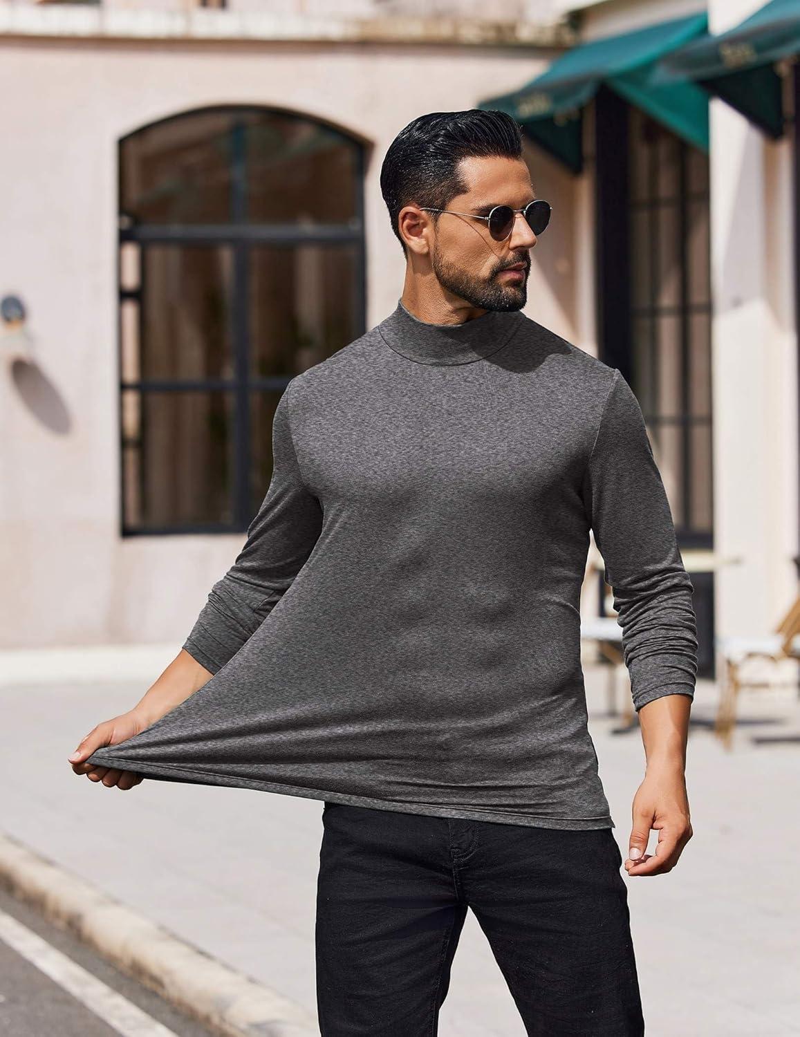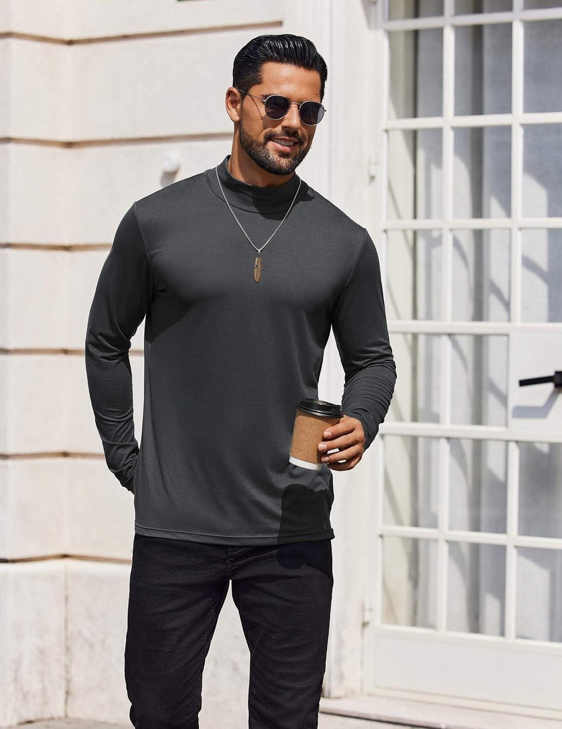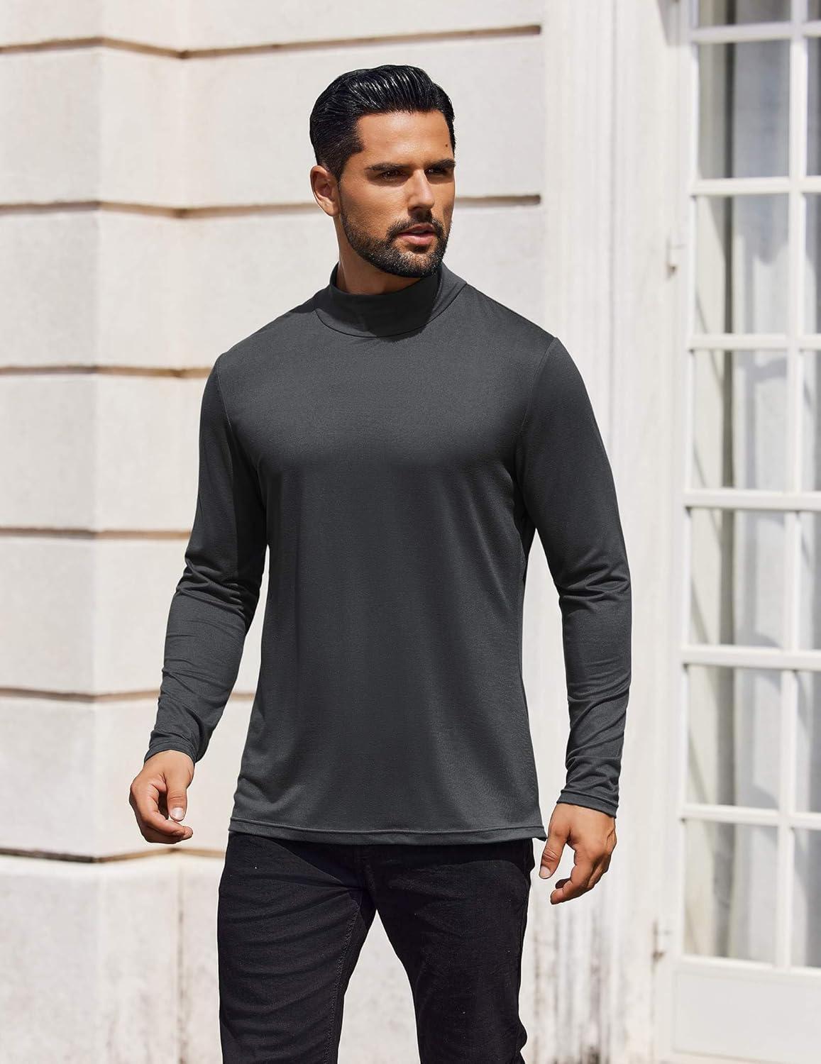 • COOFANDY Mens Mock Turtleneck T-Shirts Long Sleeve Solid Color Tees Shirts Basic Casual Slim Fit Pullover T Shirts(Dark Grey)