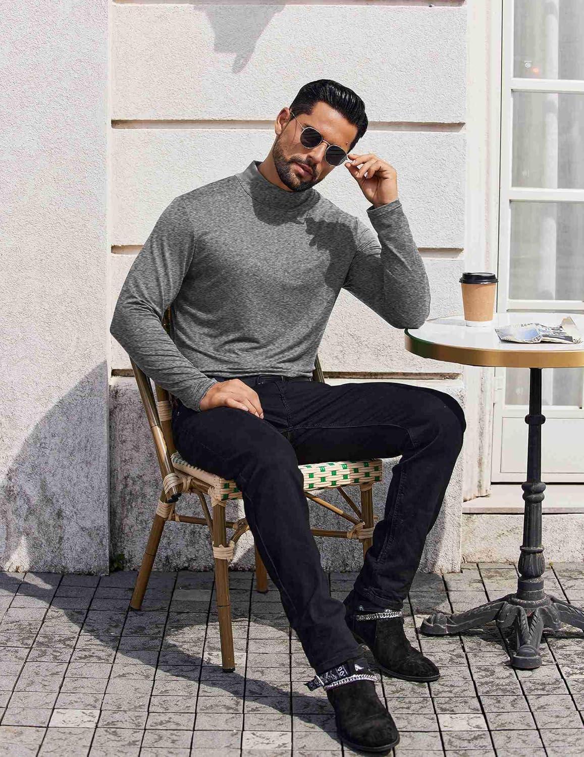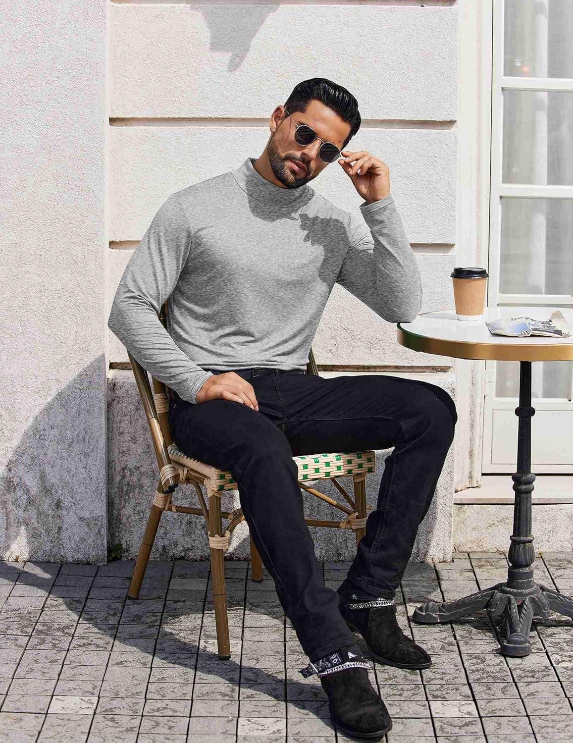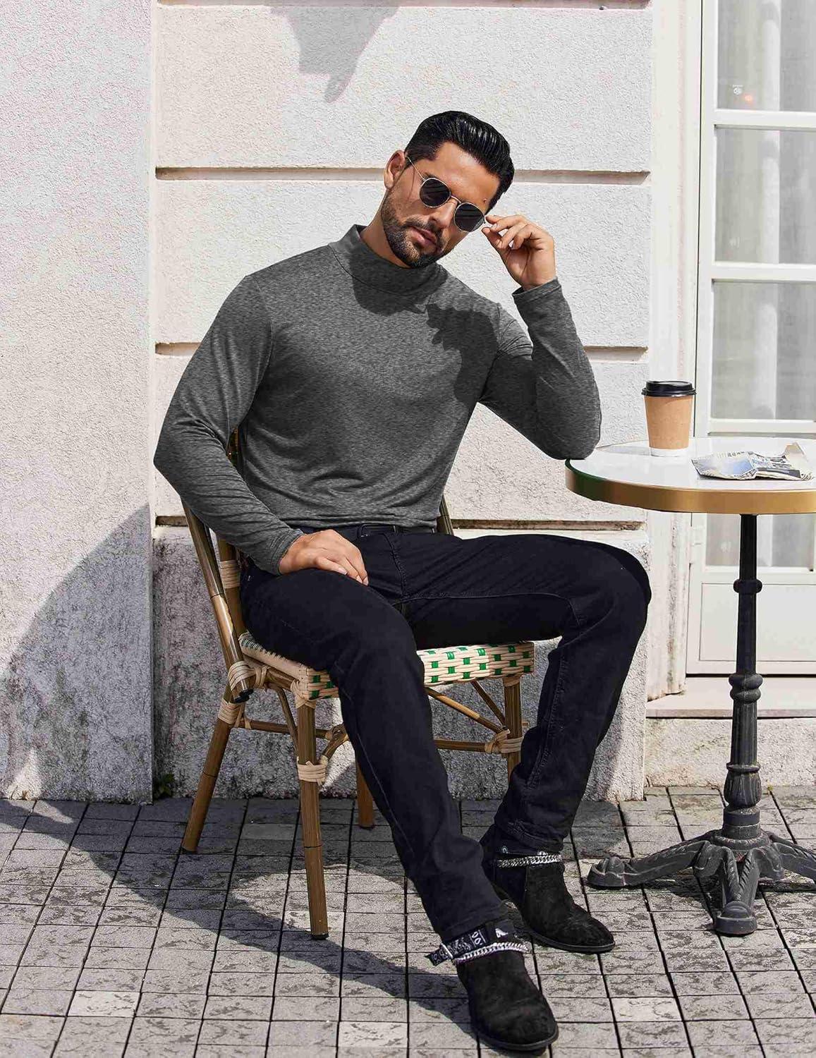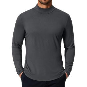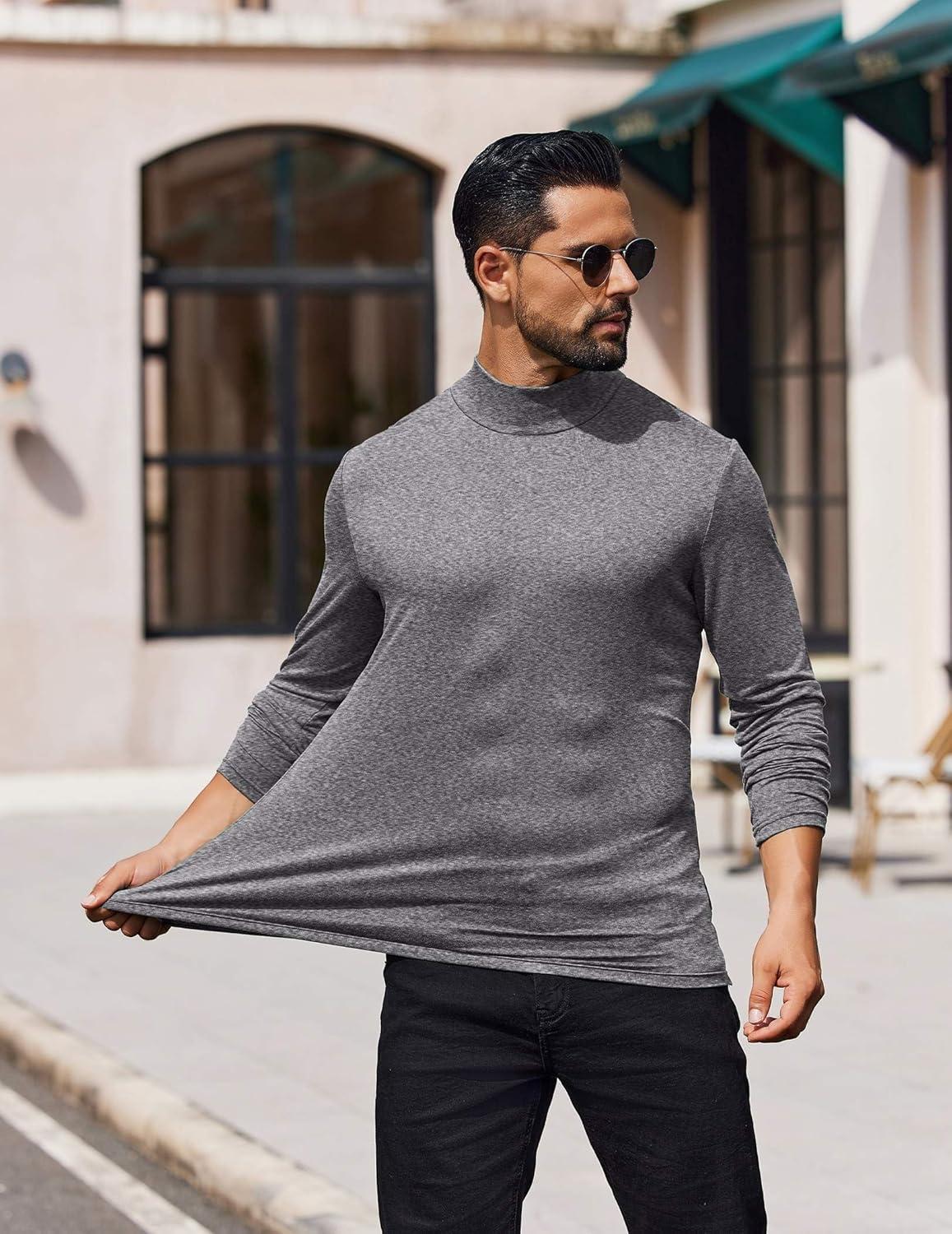• COOFANDY Mens Mock Turtleneck T-Shirts Long Sleeve Solid Color Tees Shirts Basic Casual Slim Fit Pullover T Shirts(Dark Grey)