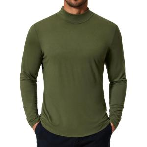 • COOFANDY Mens Mock Turtleneck T-Shirts Long Sleeve Solid Color Tees Shirts Basic Casual Slim Fit Pullover T Shirts(Army Green)