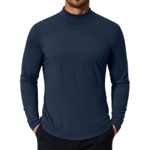 • COOFANDY Mens Mock Turtleneck T-Shirts Long Sleeve Solid Color Tees Shirts Basic Casual Slim Fit Pullover T Shirts(Dark Blue)