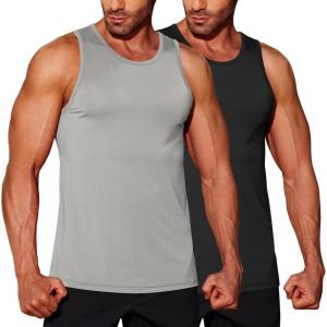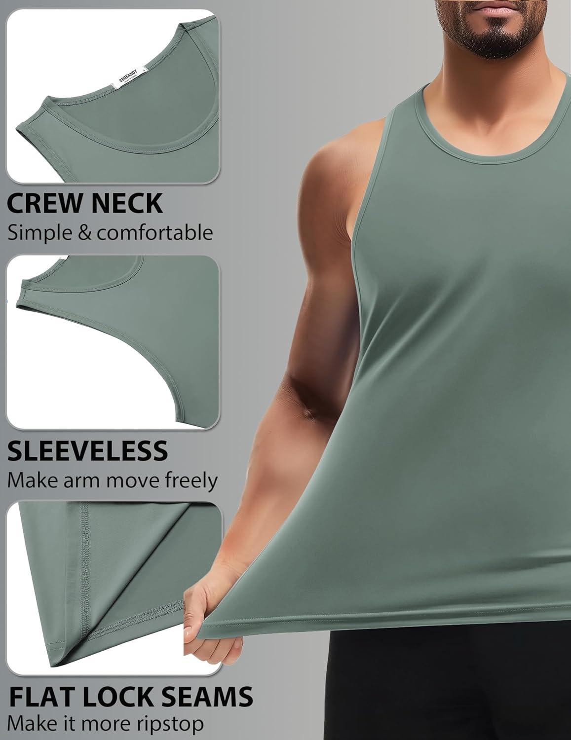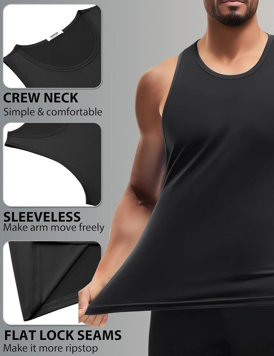 COOFANDY Mens Tank Top UPF 50+ Quick Dry Sleeveless Shirts Summer Workout Muscle T Shirt Cool Swim Beach Top(Black/Light Grey)