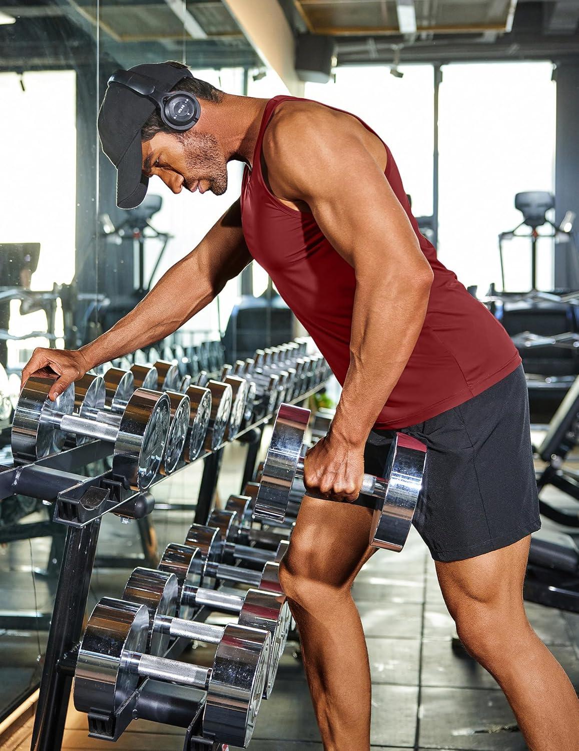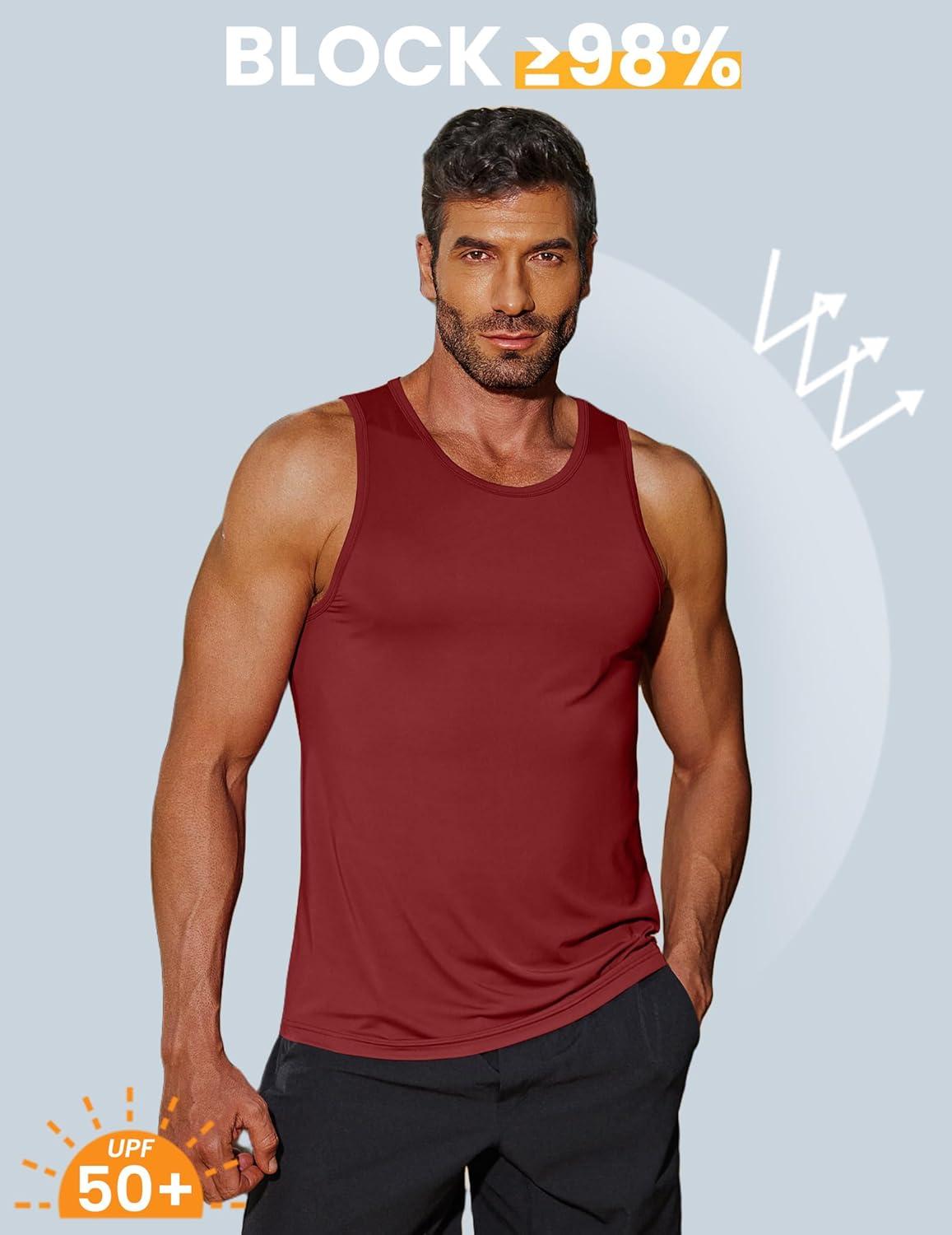 COOFANDY Mens Tank Top UPF 50+ Quick Dry Sleeveless Shirts Summer Workout Muscle T Shirt Cool Swim Beach Top(Black/ Wine Red)