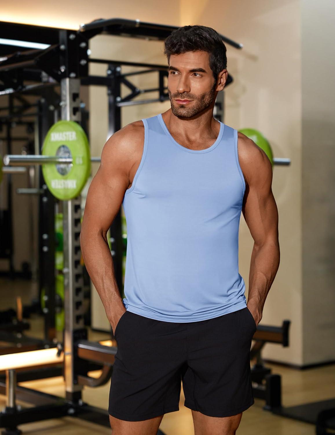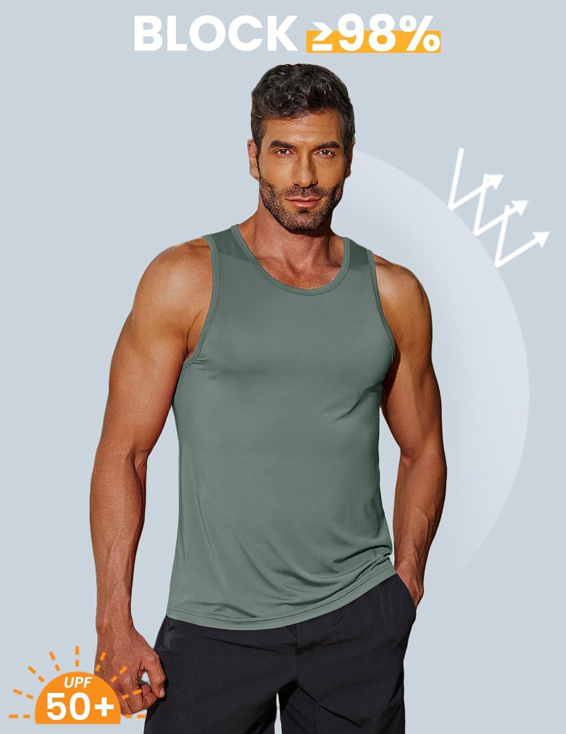 COOFANDY Mens Tank Top UPF 50+ Quick Dry Sleeveless Shirts Summer Workout Muscle T Shirt Cool Swim Beach Top(Light Blue/Army Green)