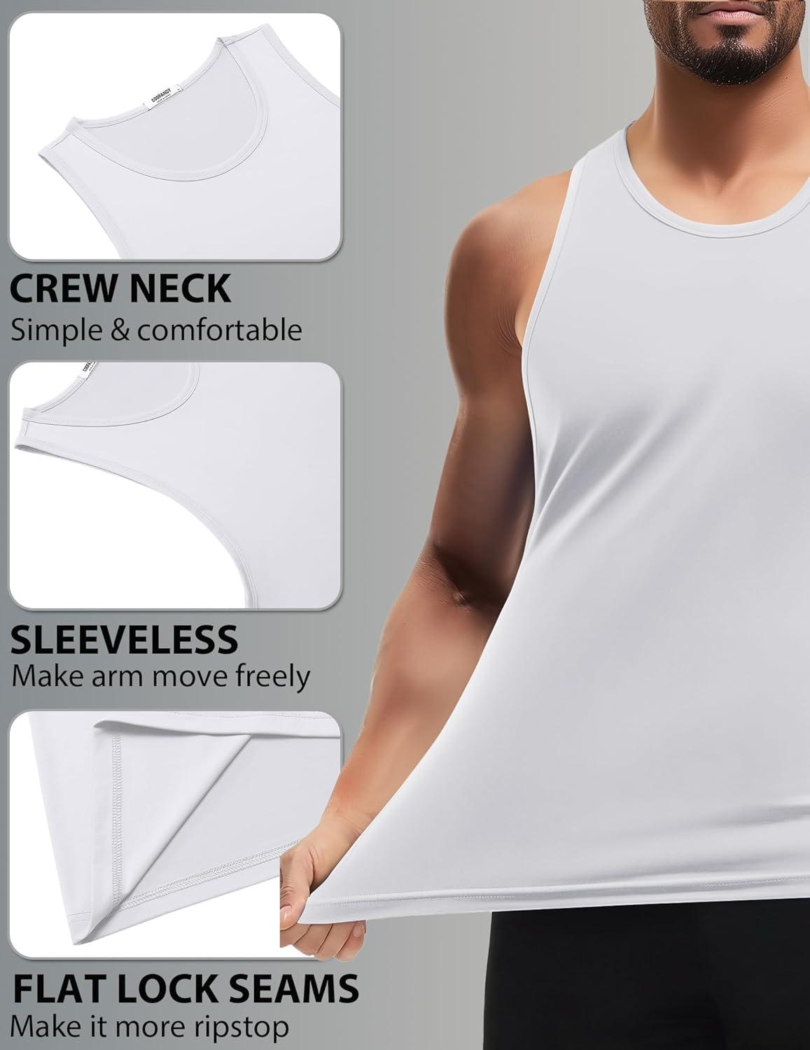 COOFANDY Mens Tank Top UPF 50+ Quick Dry Sleeveless Shirts Summer Workout Muscle T Shirt Cool Swim Beach Top(Black/White)