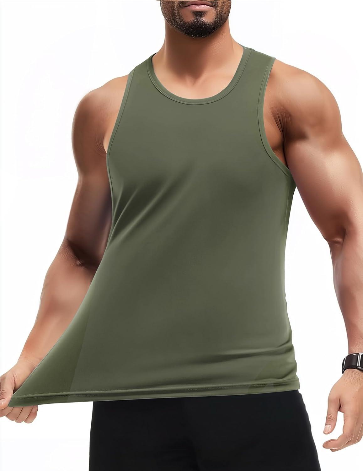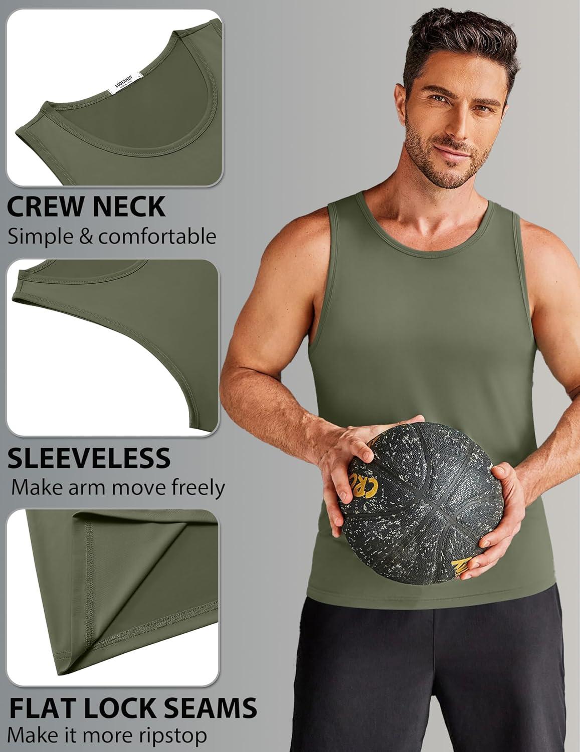 COOFANDY Mens Tank Top UPF 50+ Quick Dry Sleeveless Shirts Summer Workout Muscle T Shirt Cool Swim Beach Top(Black/Dark Army Green)