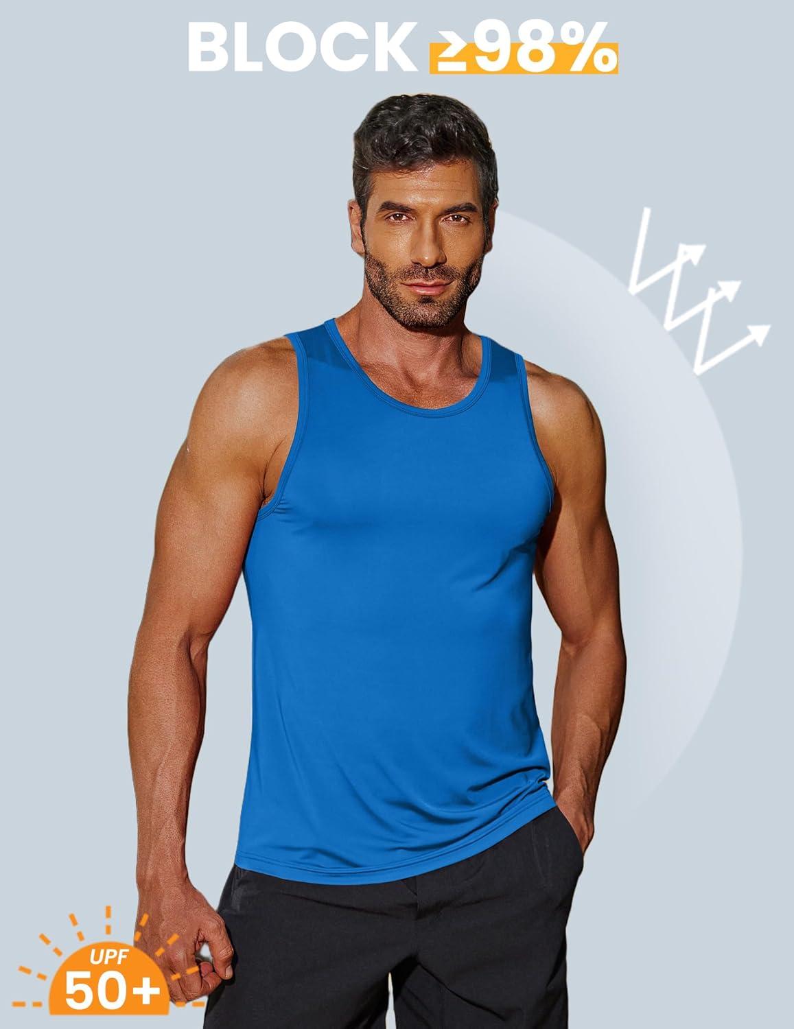 COOFANDY Mens Tank Top UPF 50+ Quick Dry Sleeveless Shirts Summer Workout Muscle T Shirt Cool Swim Beach Top(Navy/Blue)