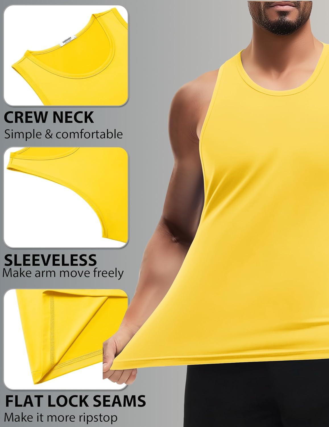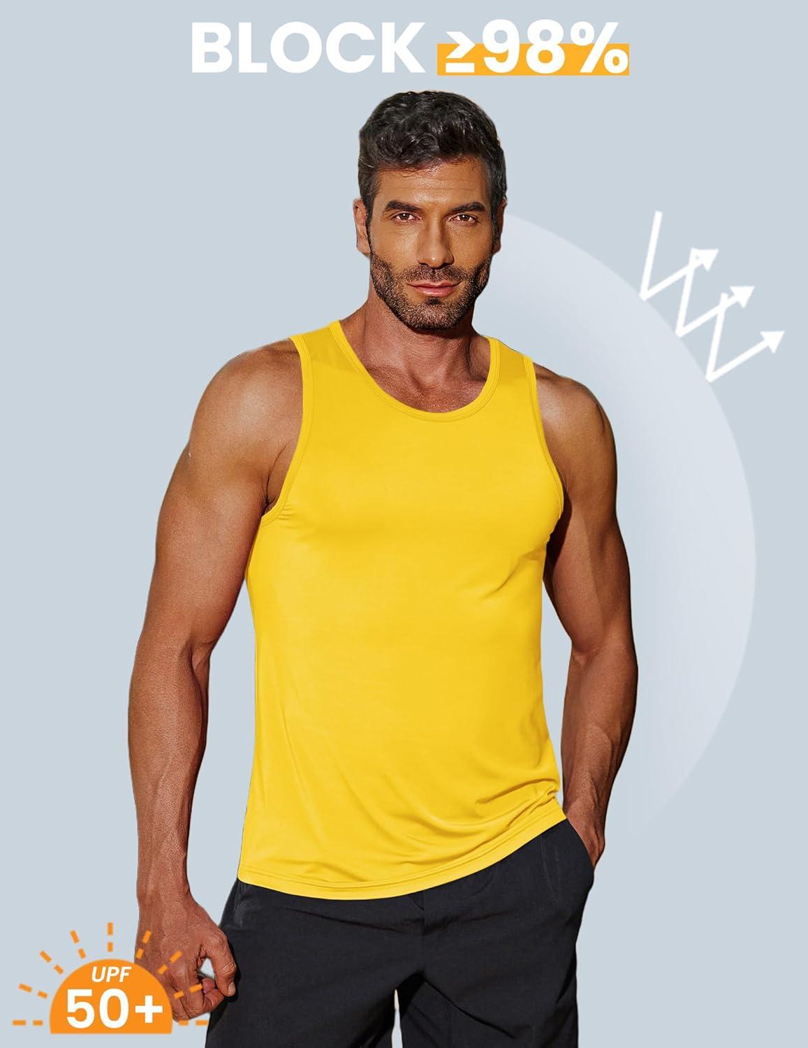 COOFANDY Mens Tank Top UPF 50+ Quick Dry Sleeveless Shirts Summer Workout Muscle T Shirt Cool Swim Beach Top(Yellow/Blue)