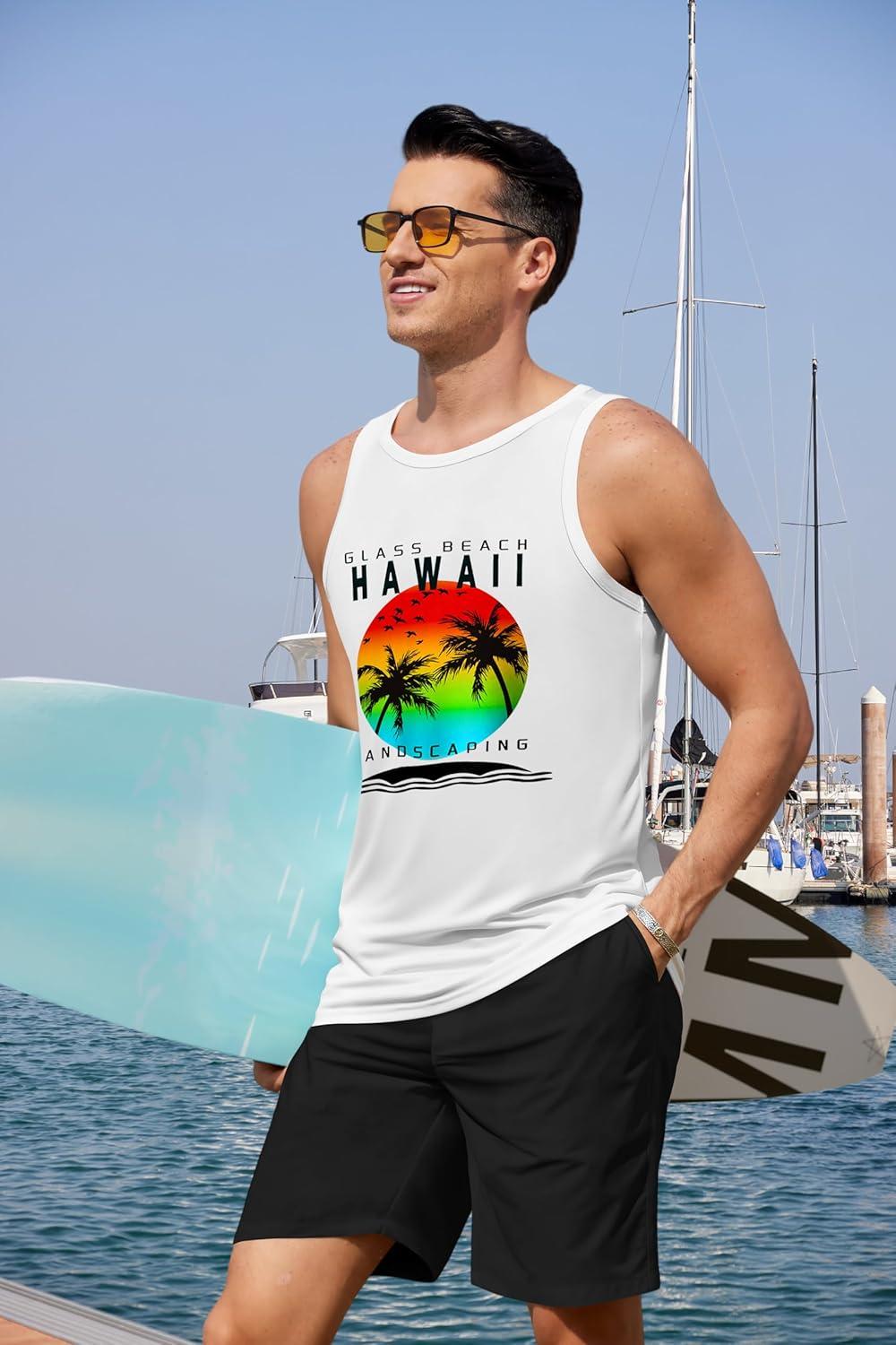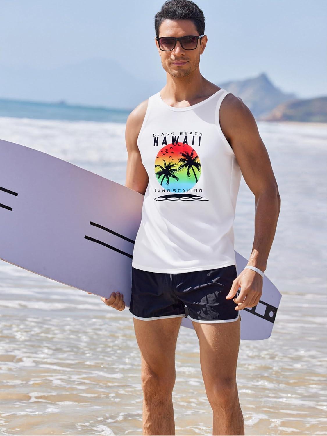 COOFANDY Mens Tank Tops Beach Summer Sleeveless Graphic T Shirts Palm Tree Vacation Quick Dry Muscle Tank(White-hawaii Coconut)