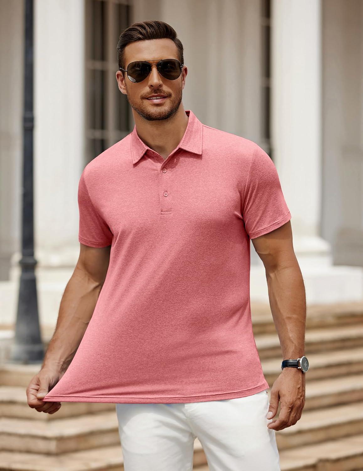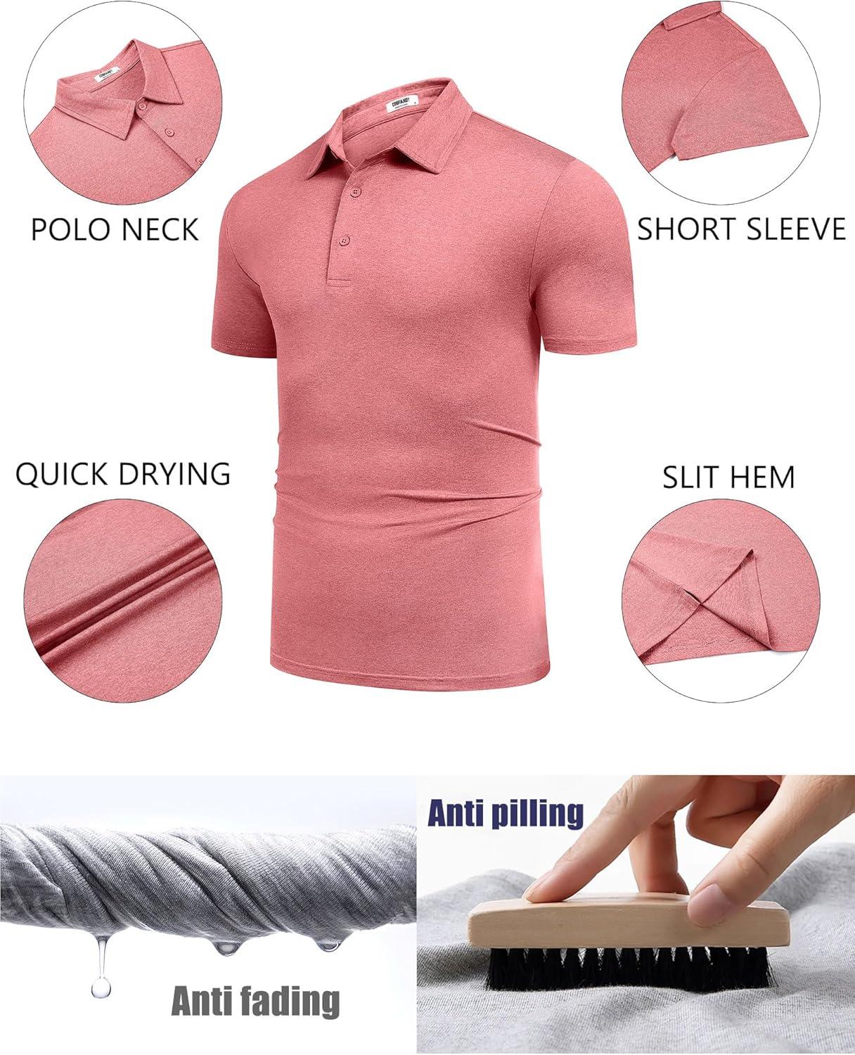 COOFANDY Men’s Polo Shirt Golf Quick Dry Performance Short Sleeve Moisture Wicking Athletic Polo Collared Tennis T-Shirt(Red)