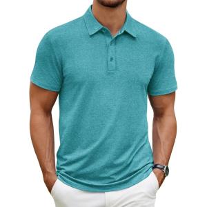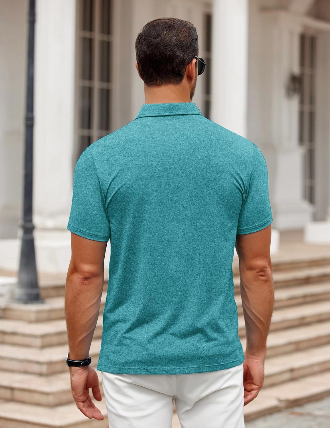 COOFANDY Men’s Polo Shirt Golf Quick Dry Performance Short Sleeve Moisture Wicking Athletic Polo Collared Tennis T-Shirt(Teal Green)