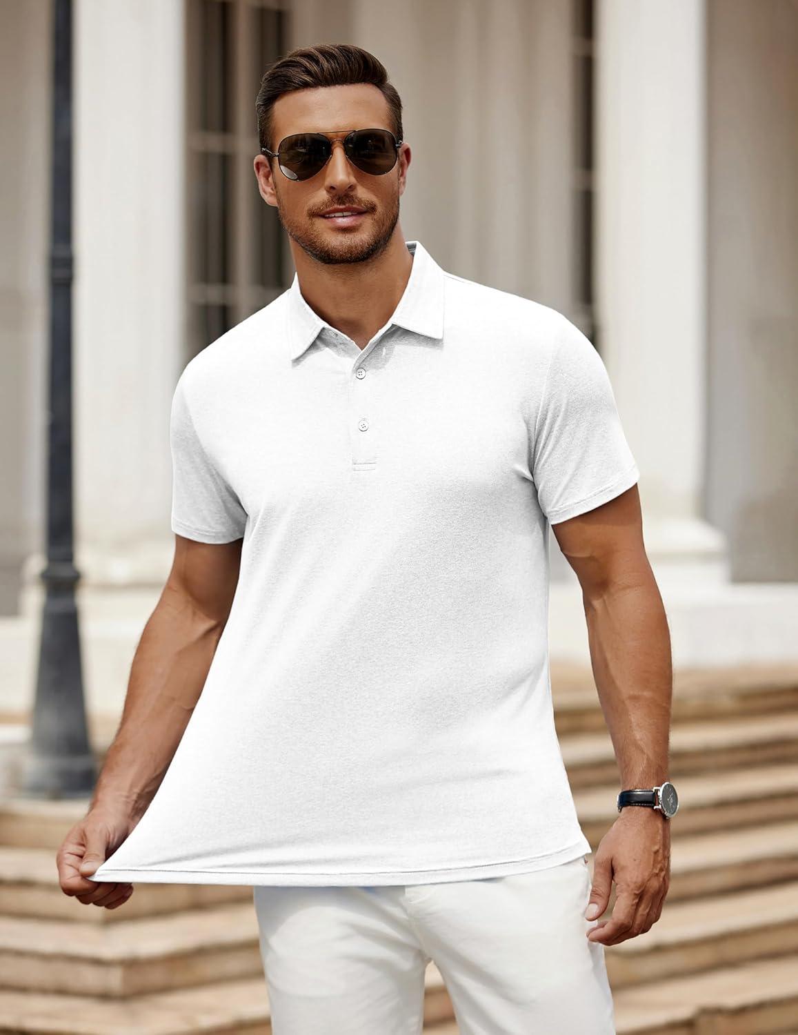 COOFANDY Men’s Polo Shirt Golf Quick Dry Performance Short Sleeve Moisture Wicking Athletic Polo Collared Tennis T-Shirt(White)