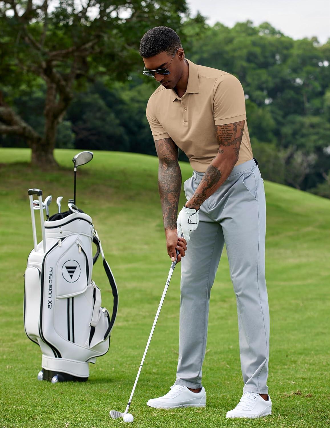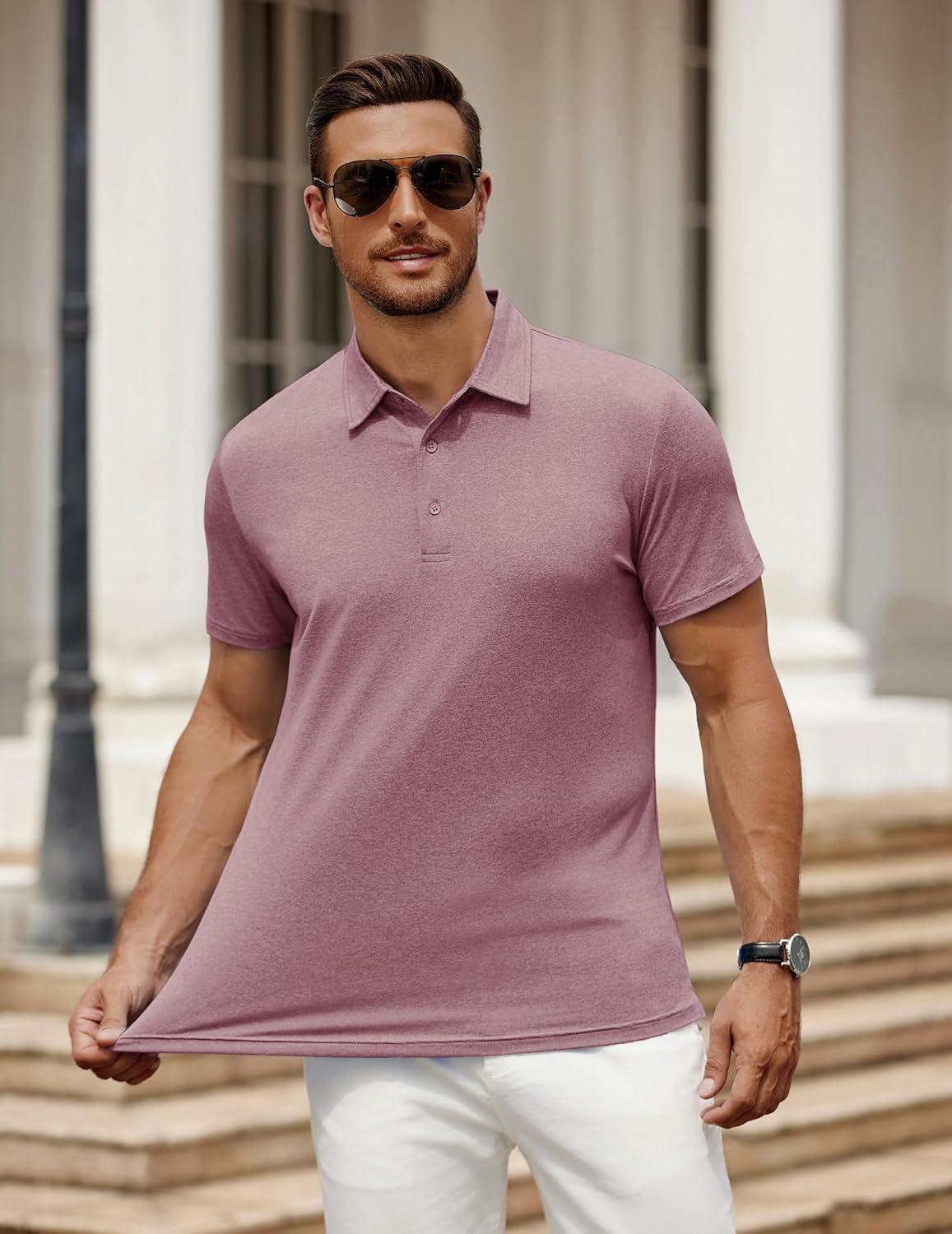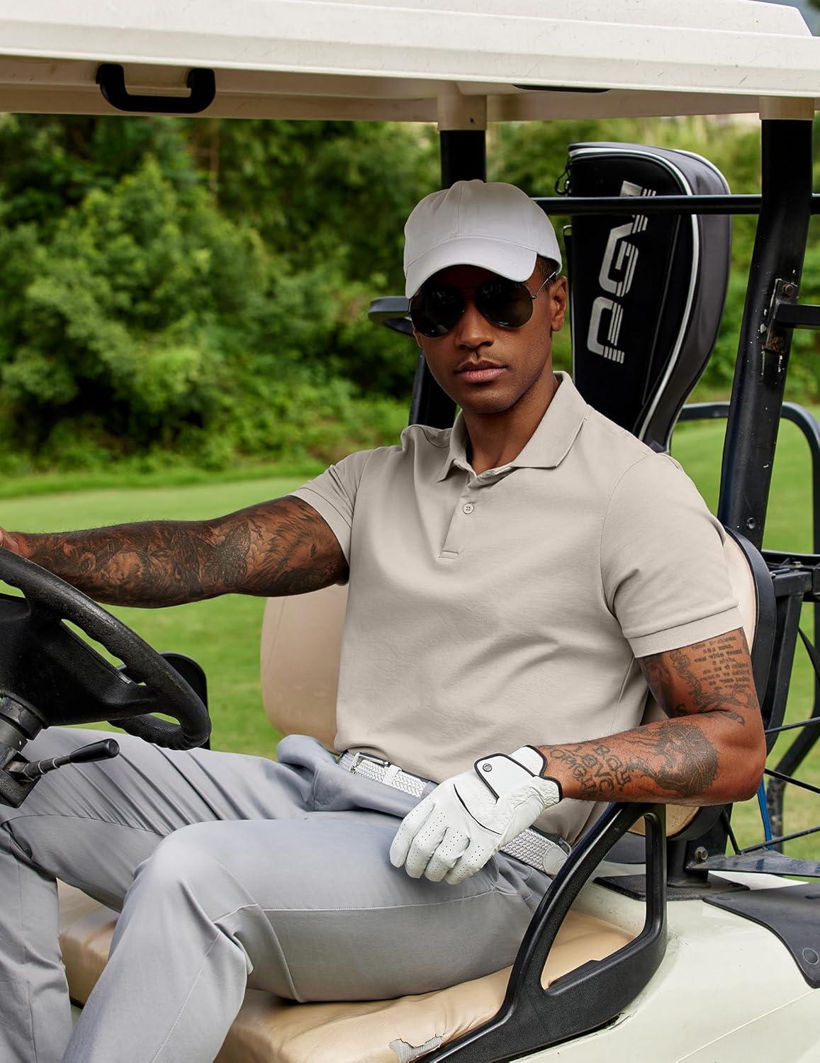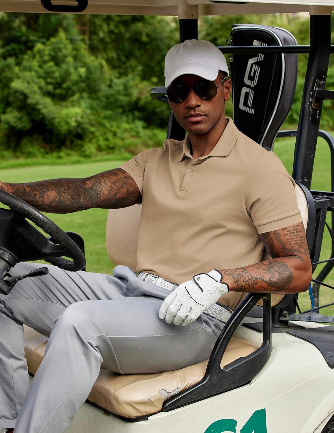 COOFANDY Men’s Polo Shirts Short Sleeve Pique Jersey Golf Shirt Casual Summer Collared T-Shirts(Light Khaki)