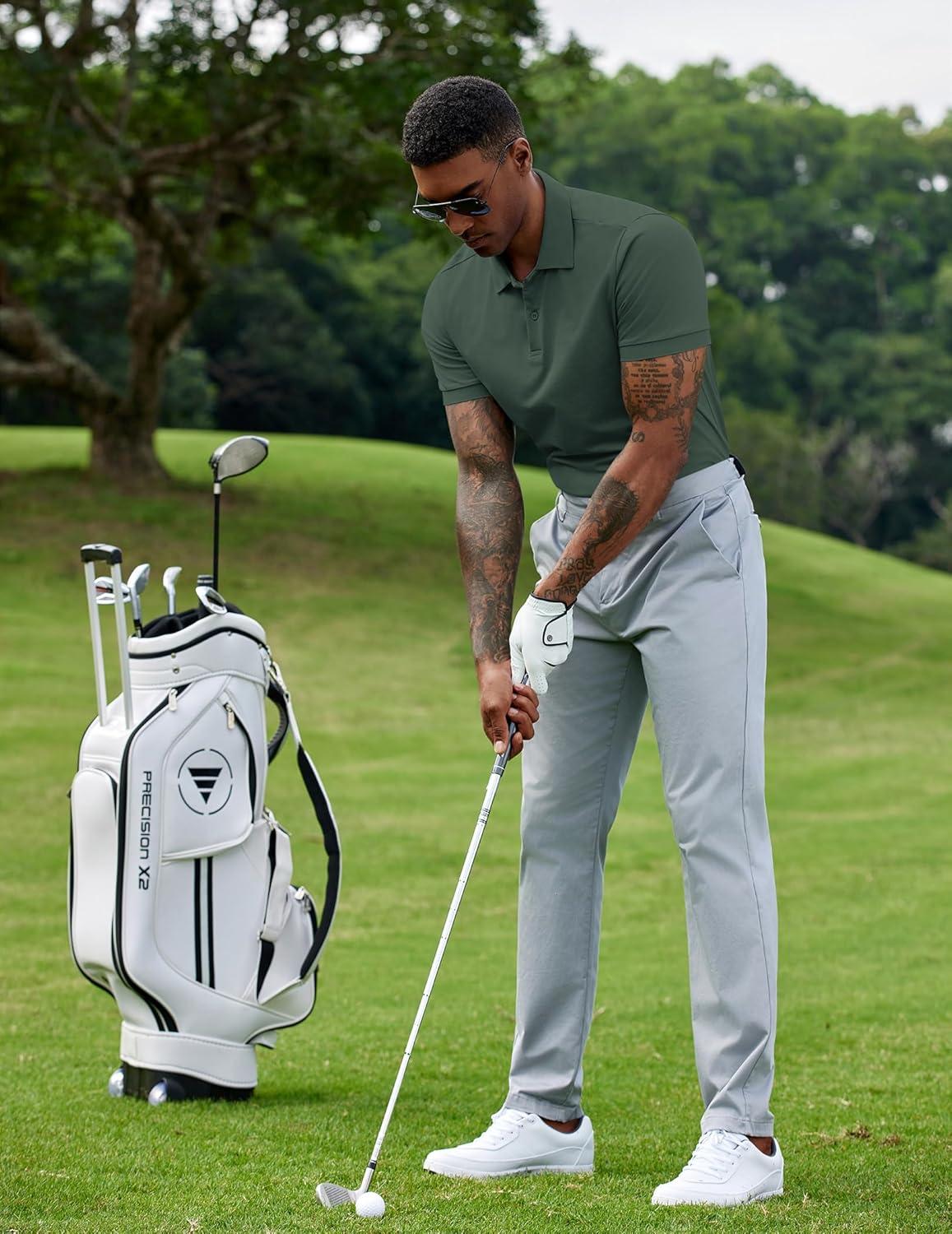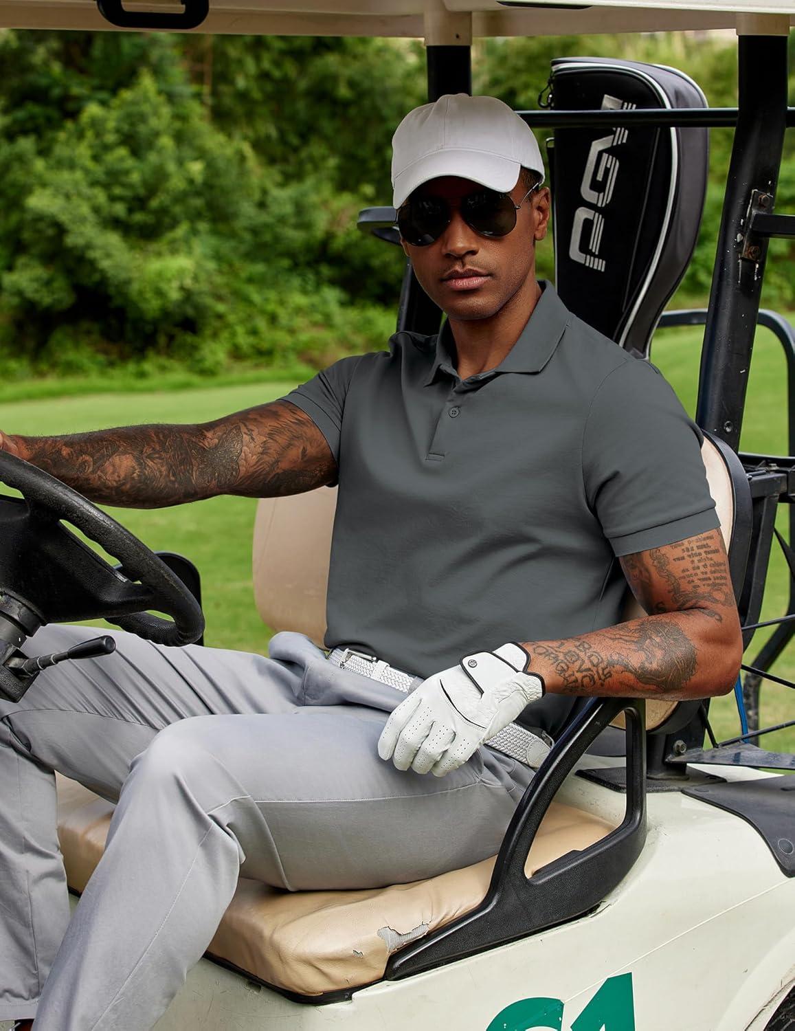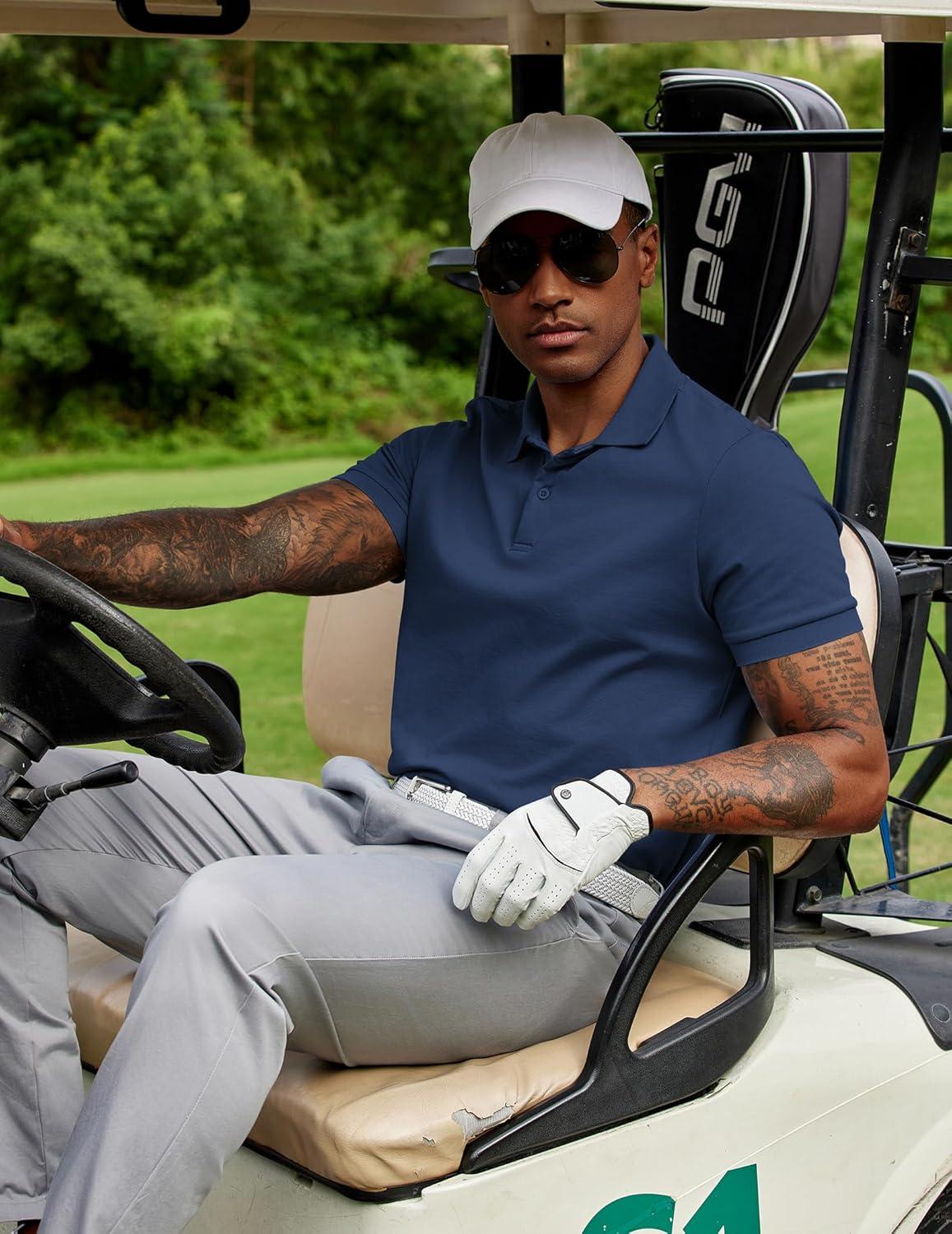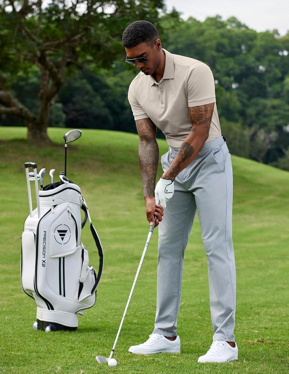 COOFANDY Men’s Polo Shirts Short Sleeve Pique Jersey Golf Shirt Casual Summer Collared T-Shirts(Light Khaki)