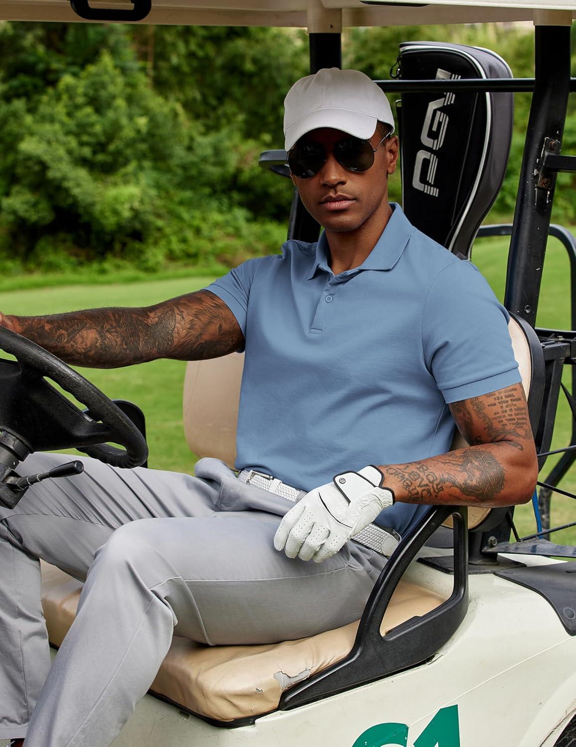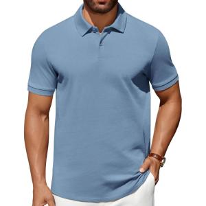 COOFANDY Men’s Polo Shirts 100% Cotton Heavyweight Short Sleeve Button Golf Shirts Classic Pullover Ribbed Collar and Cuffs(Grey Blue)