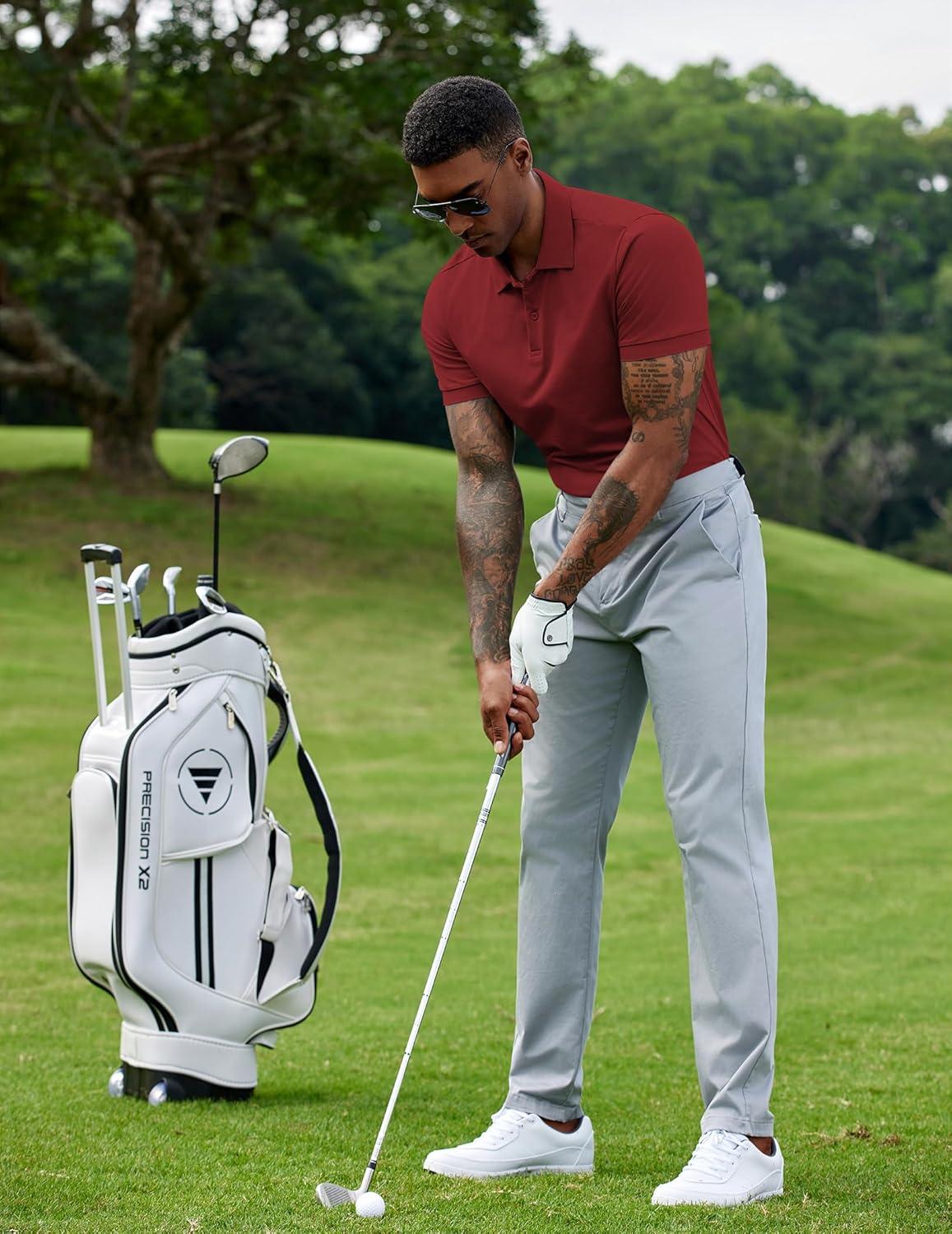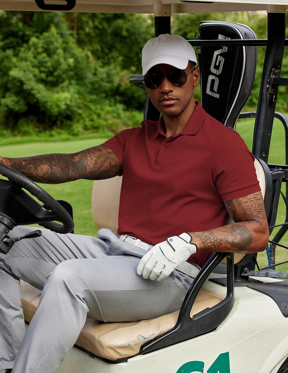 COOFANDY Men’s Polo Shirt Golf Quick Dry Performance Short Sleeve Moisture Wicking Athletic Polo Collared Tennis T-Shirt(Wine)
