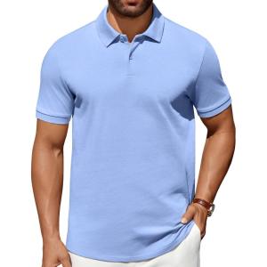 COOFANDY Men’s Polo Shirts 100% Cotton Heavyweight Short Sleeve Button Golf Shirts Classic Pullover Ribbed Collar and Cuffs(Clear Blue)