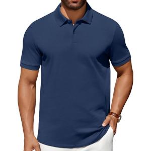 COOFANDY Men’s Polo Shirts 100% Cotton Heavyweight Short Sleeve Button Golf Shirts Classic Pullover Ribbed Collar and Cuffs(Dark Navy)