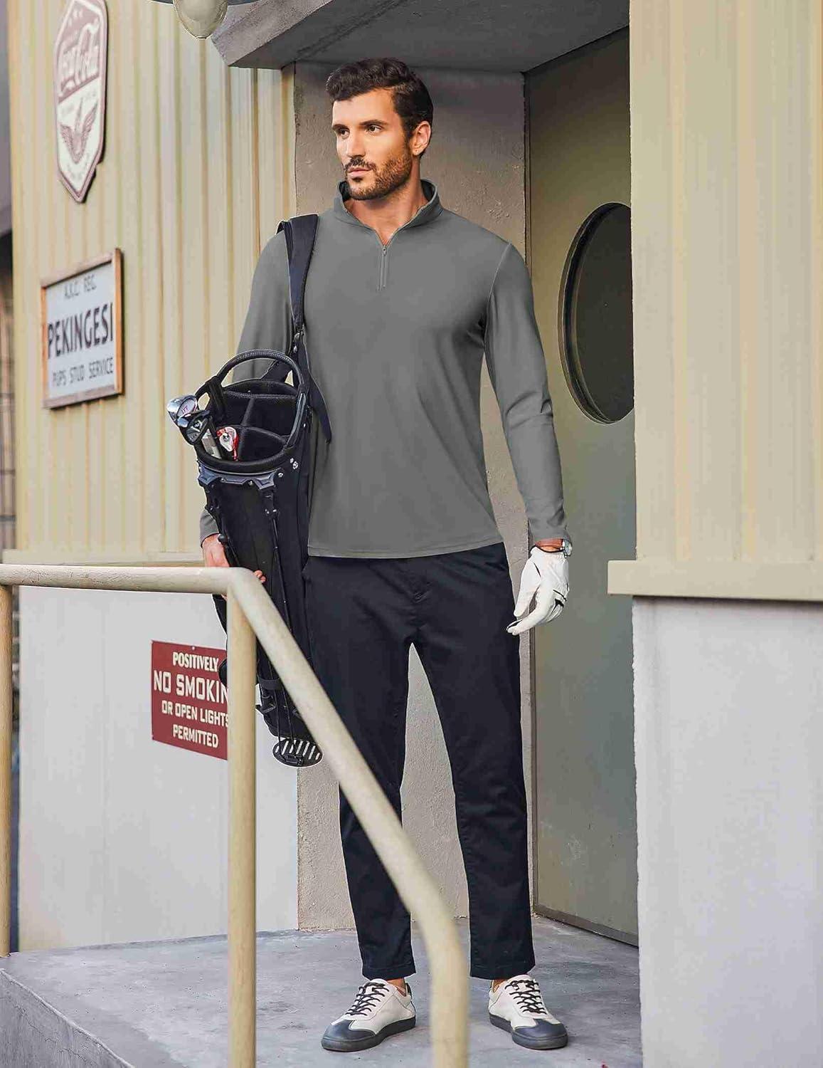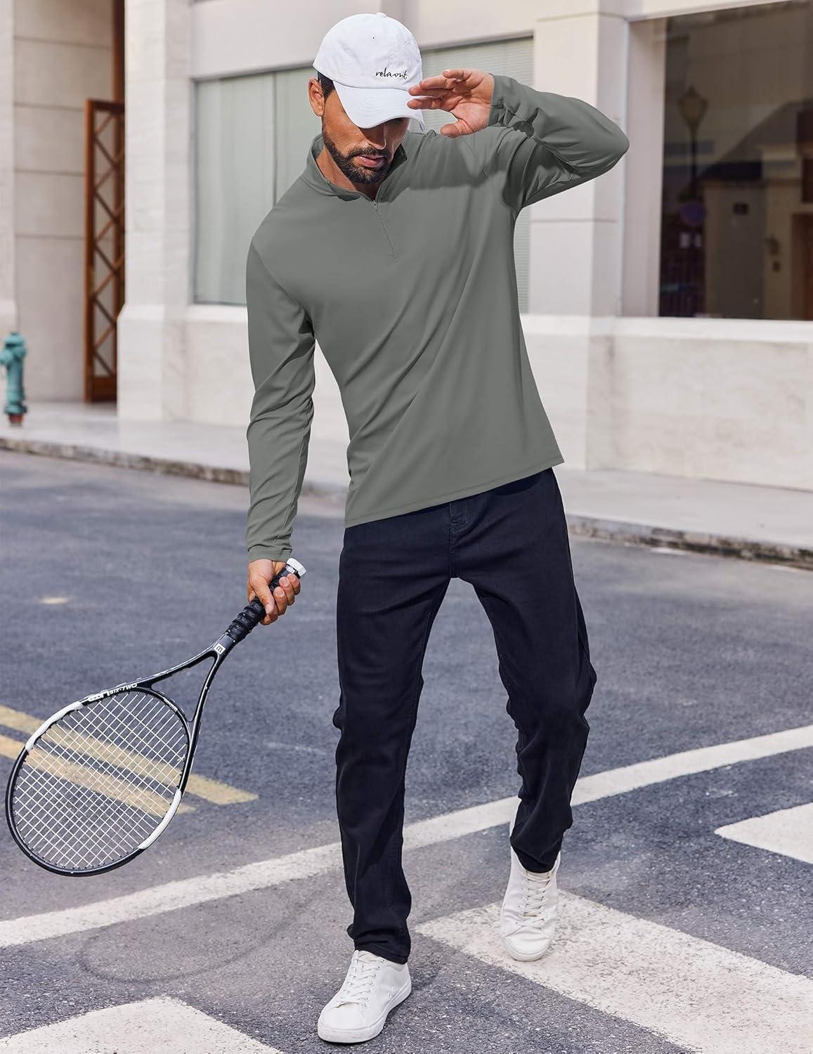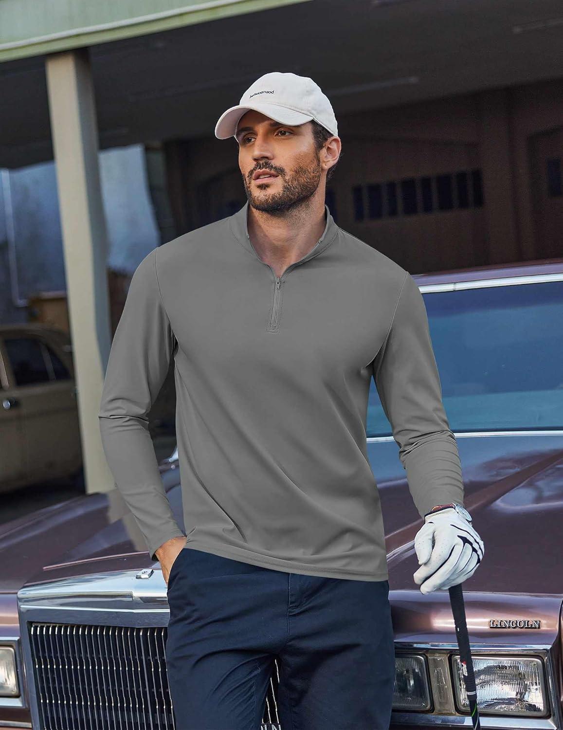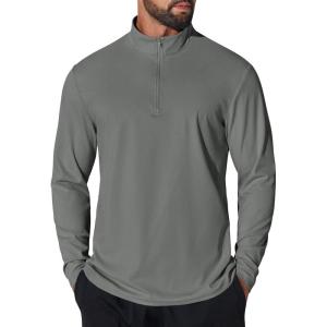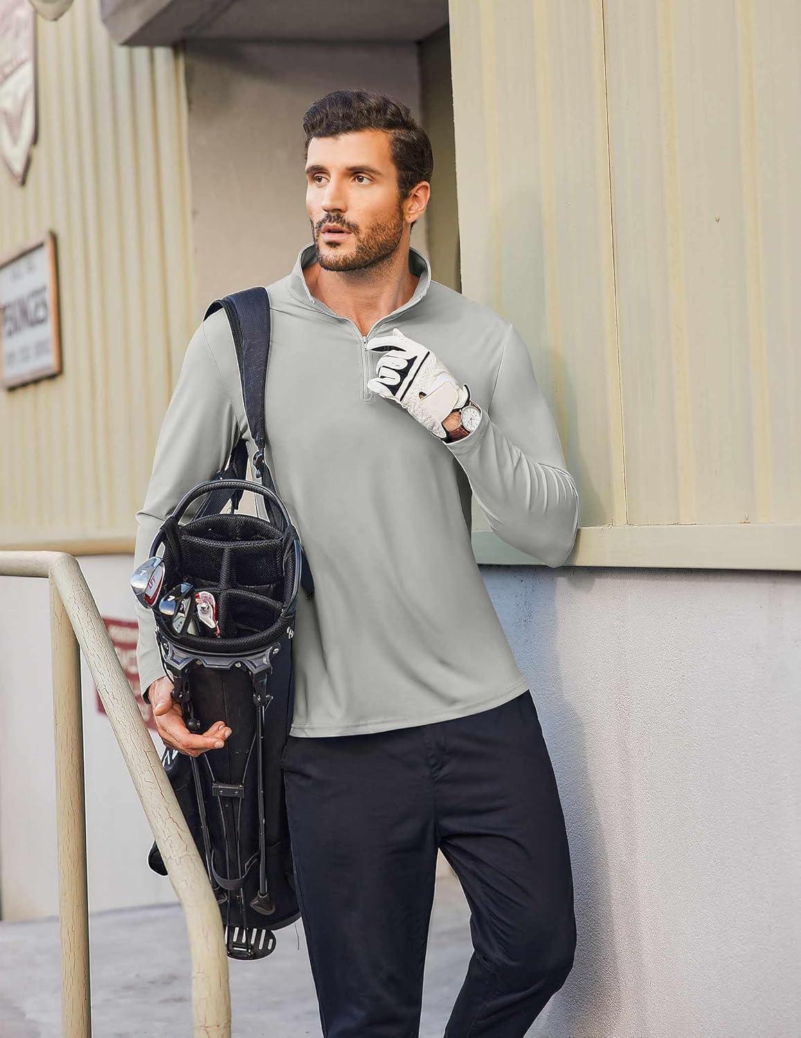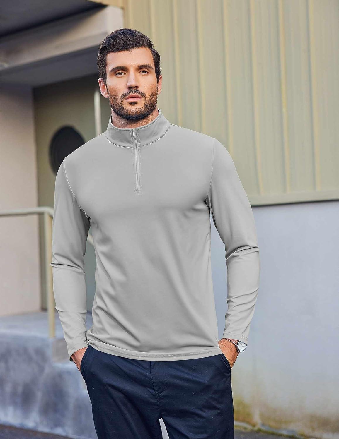 COOFANDY Mens Quarter Zip Pullover Sweatshirt UPF 50+ Long Sleeve Sun Protection Shirts Golf Running Rash Guard T-Shirts(Grey)