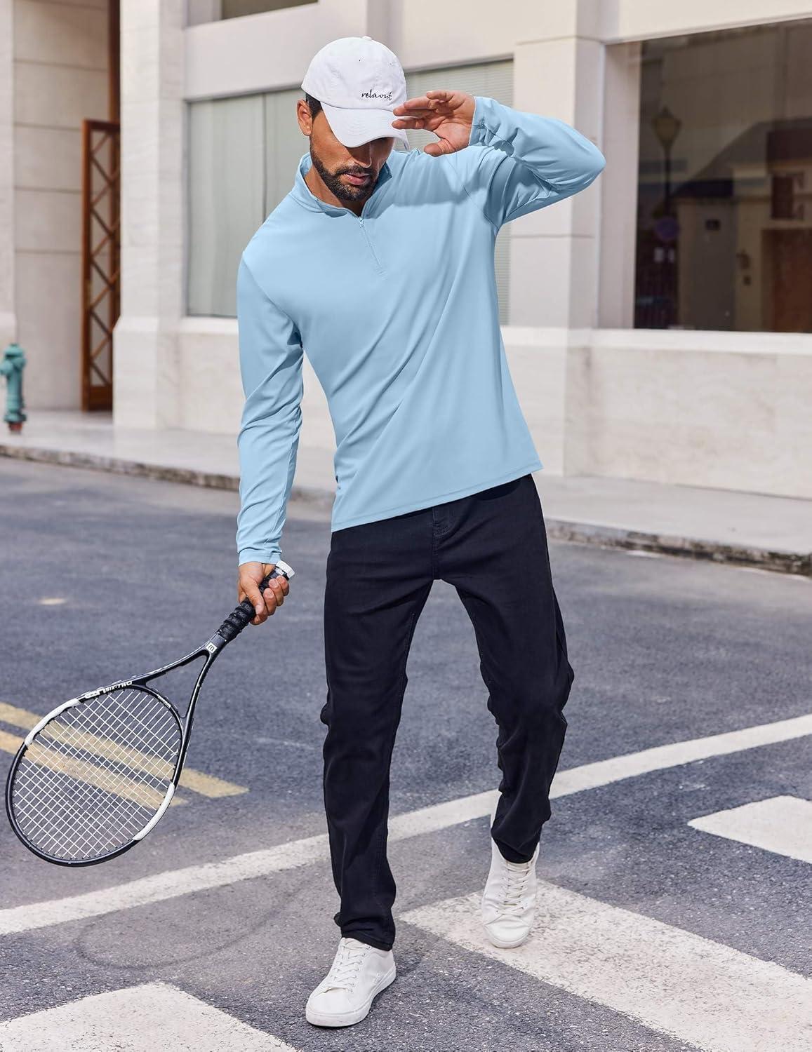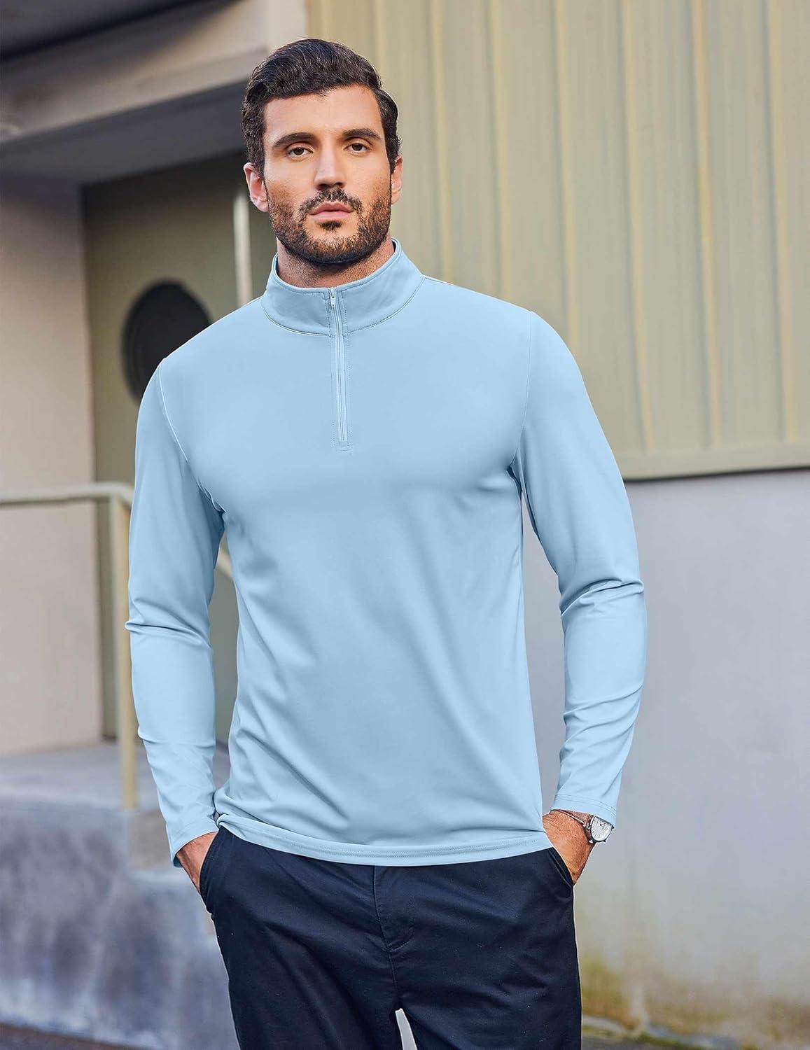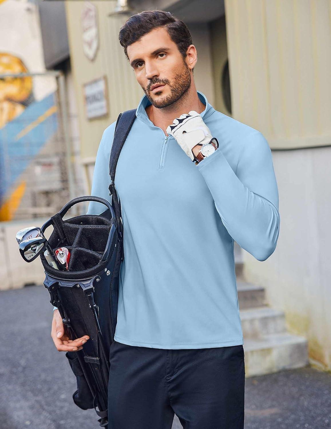 COOFANDY Mens Quarter Zip Pullover Sweatshirt UPF 50+ Long Sleeve Sun Protection Shirts Golf Running Rash Guard T-Shirts(Light Blue)