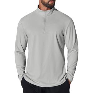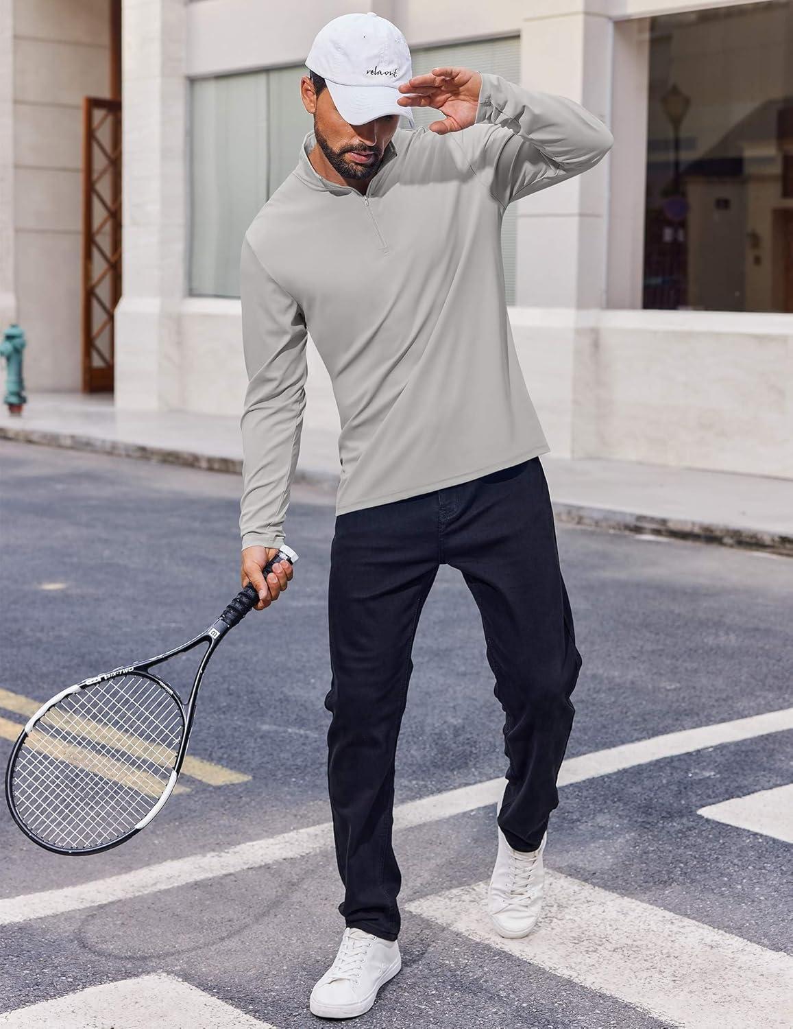 COOFANDY Mens Quarter Zip Pullover Sweatshirt UPF 50+ Long Sleeve Sun Protection Shirts Golf Running Rash Guard T-Shirts(Light Grey)