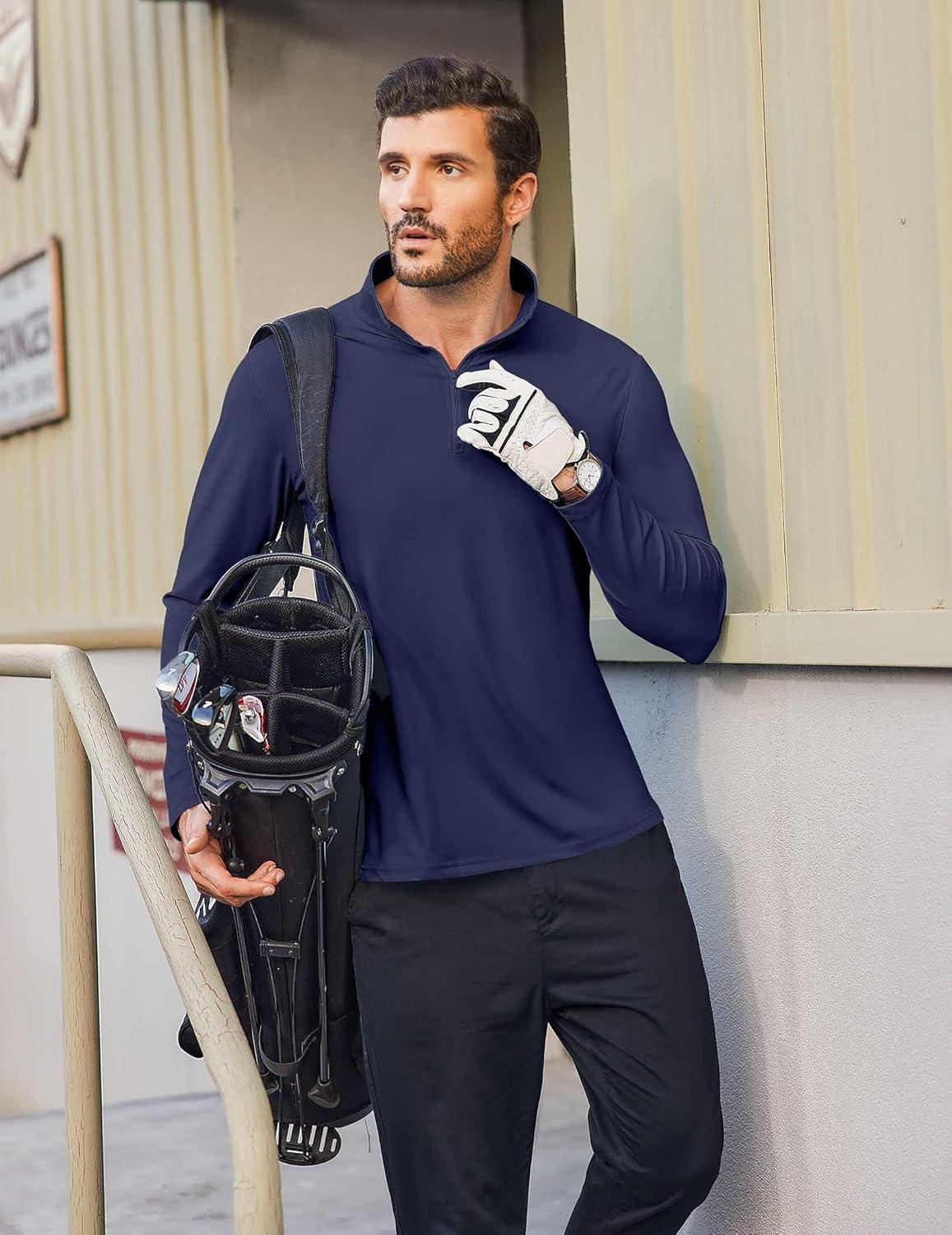 COOFANDY Mens Quarter Zip Pullover Sweatshirt UPF 50+ Long Sleeve Sun Protection Shirts Golf Running Rash Guard T-Shirts(Navy Blue)