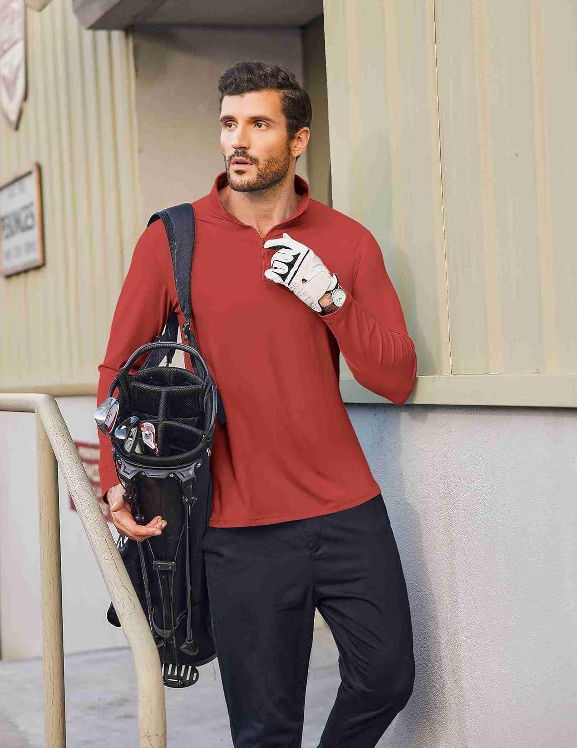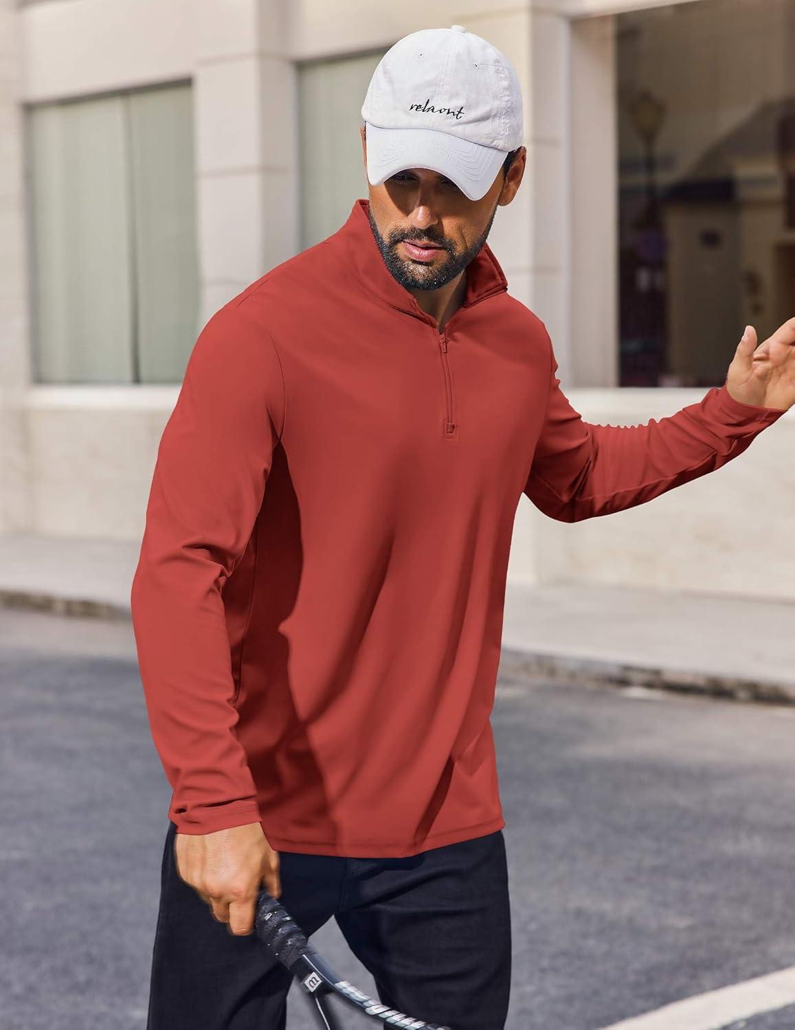 COOFANDY Mens Quarter Zip Pullover Sweatshirt UPF 50+ Long Sleeve Sun Protection Shirts Golf Running Rash Guard T-Shirts(Red)