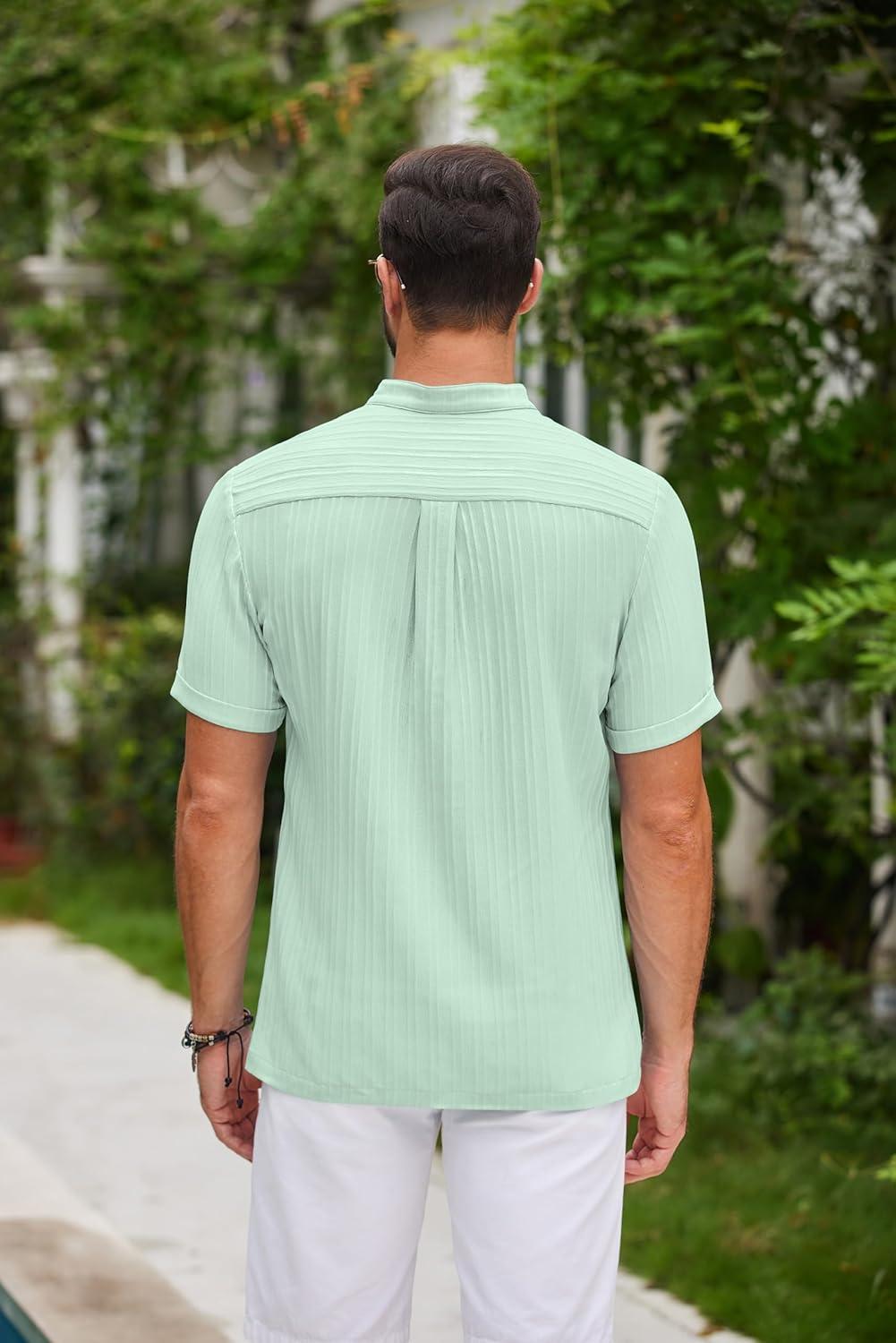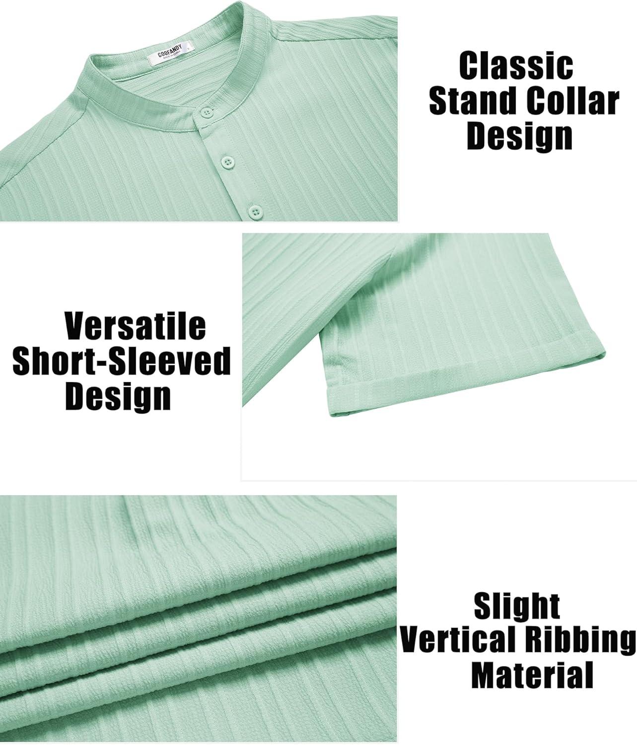 COOFANDY Men Casual Henley Tee Shirt Short Sleeve Band Collar Summer Beach Textured T-Shirt(Ice Green)