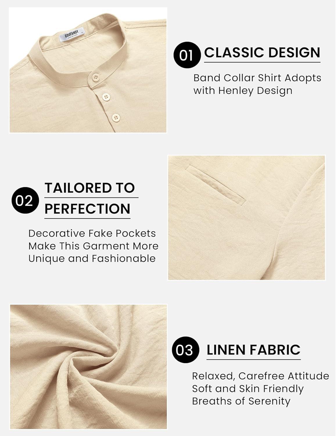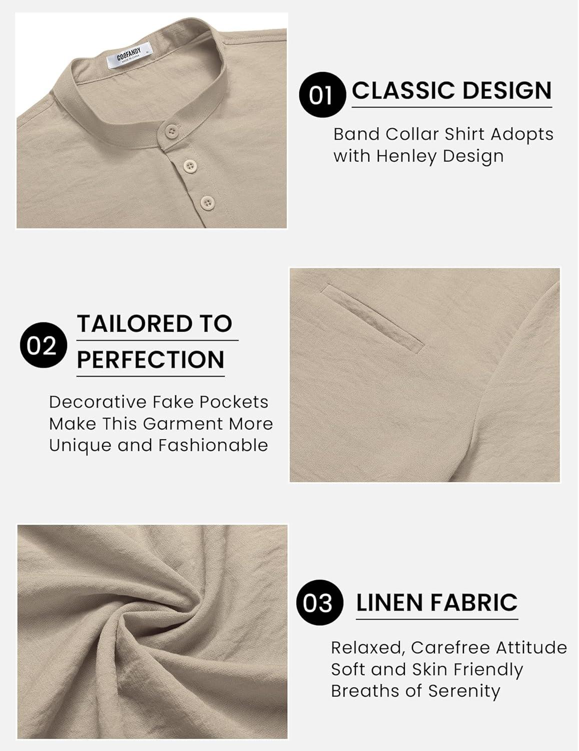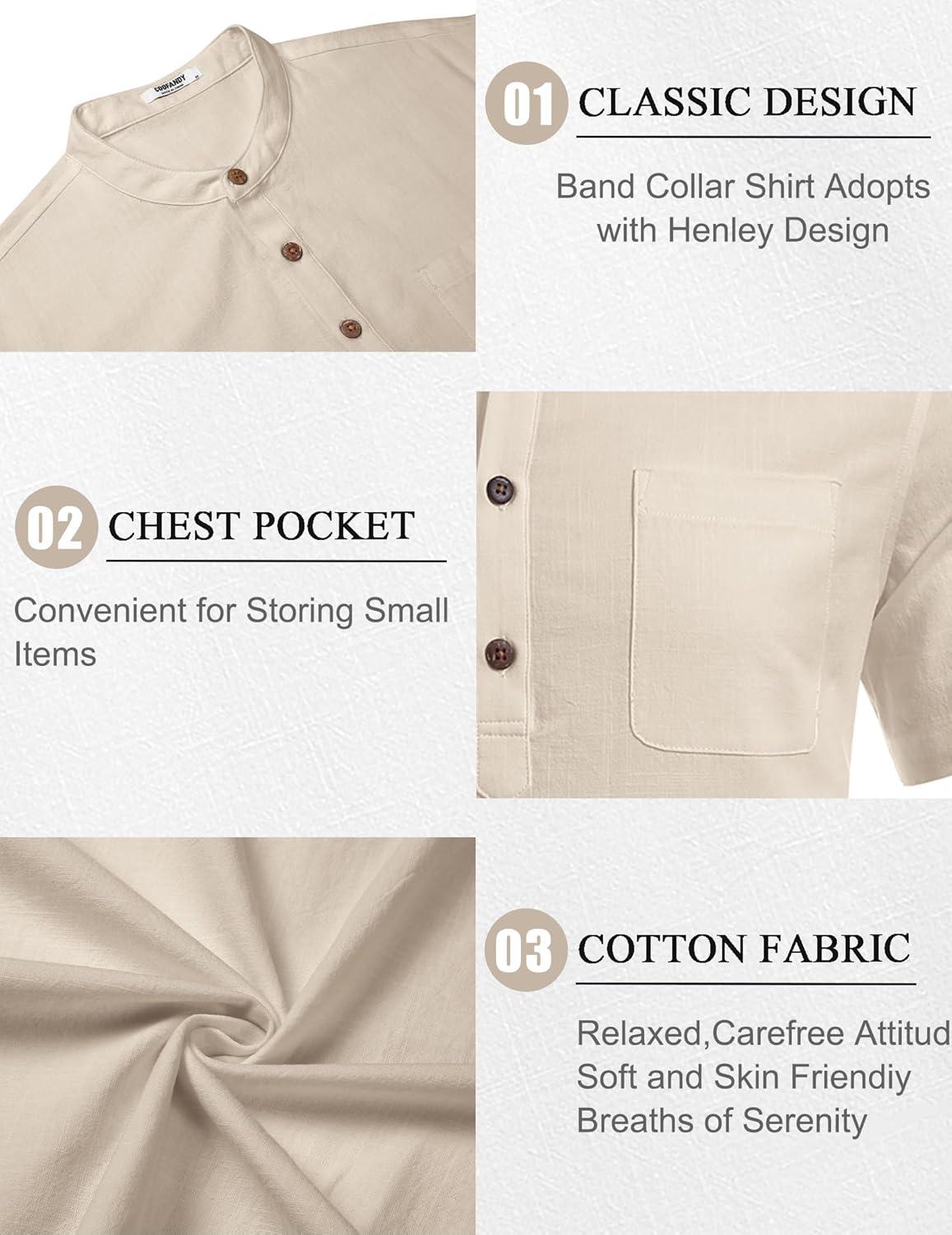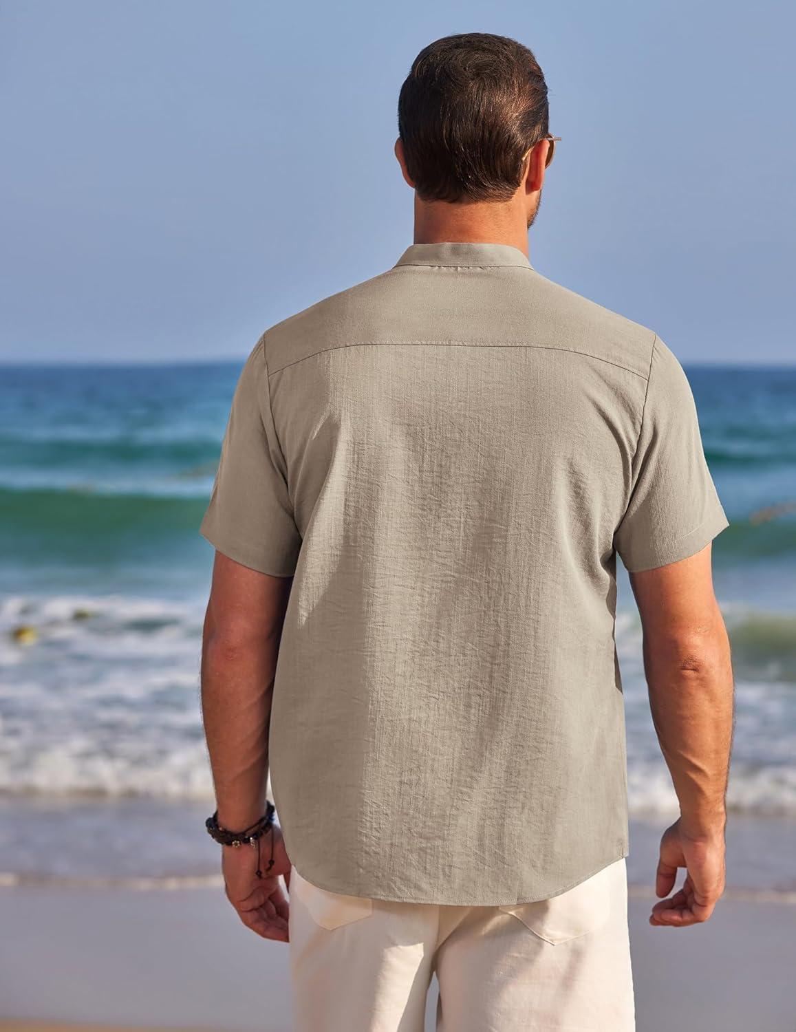 COOFANDY Men Casual Henley Tee Shirt Short Sleeve Band Collar Summer Beach Textured T-Shirt(Khaki)