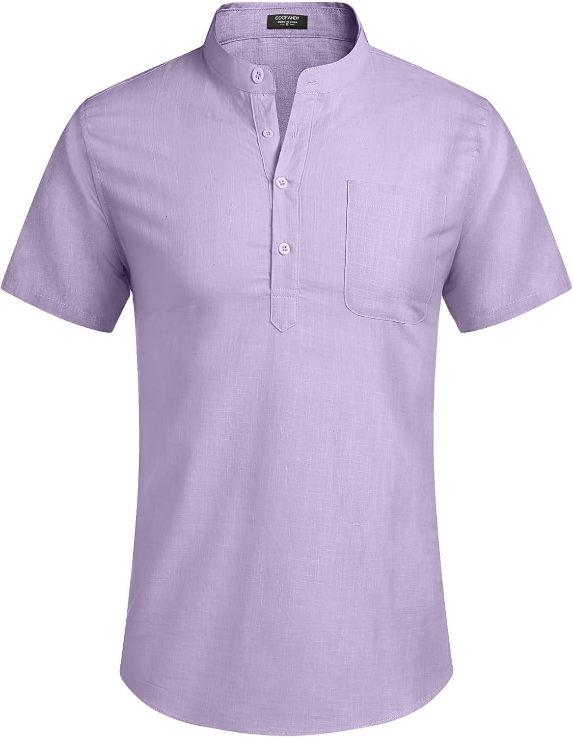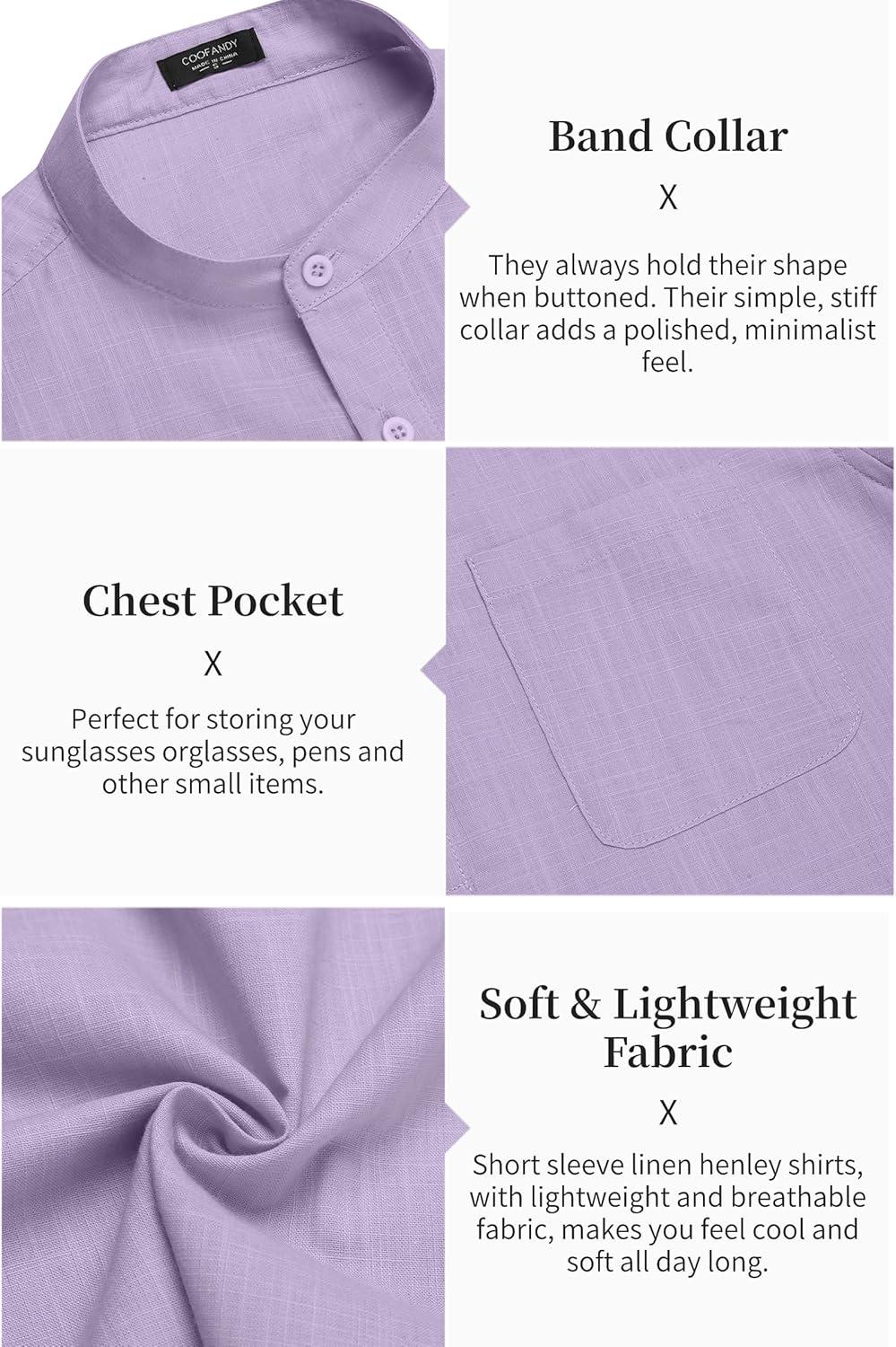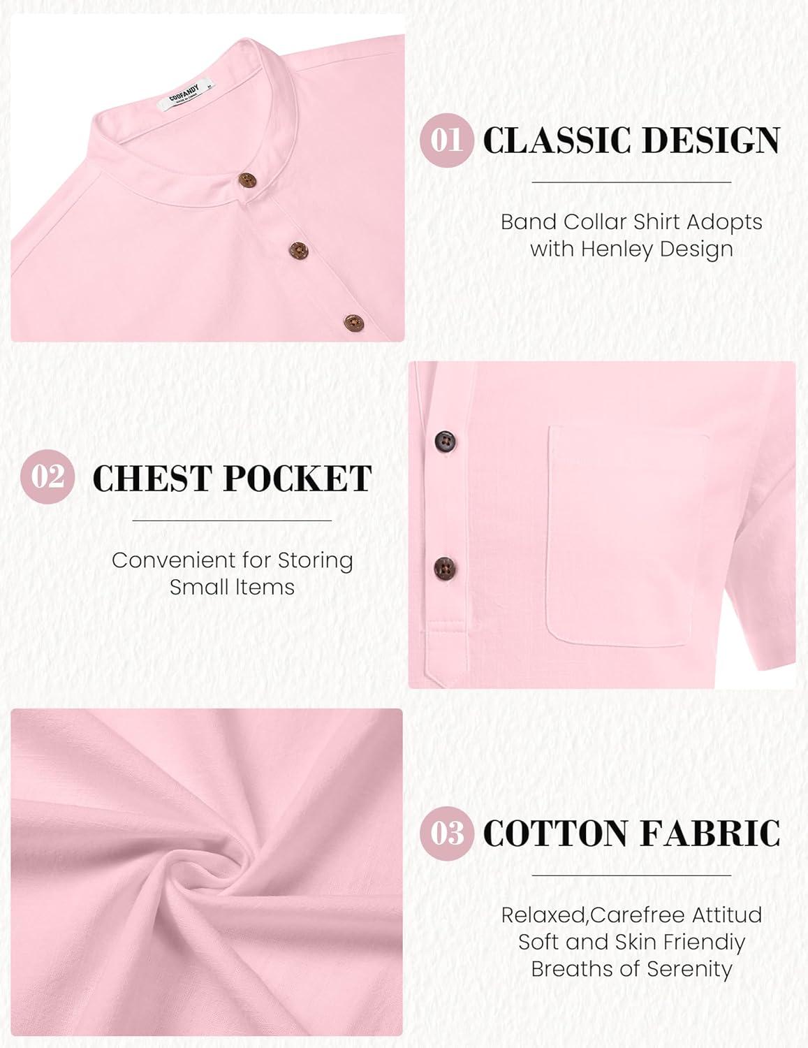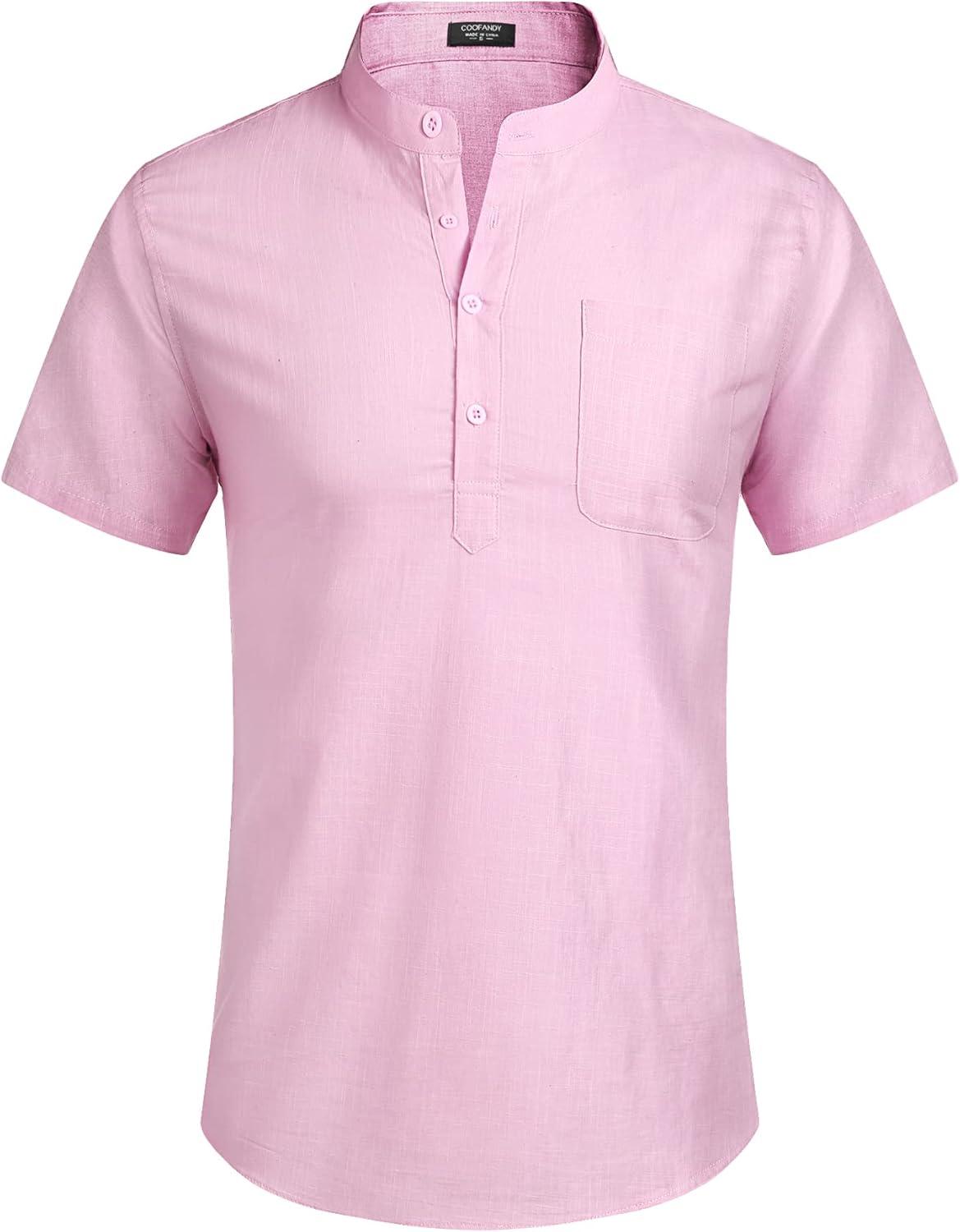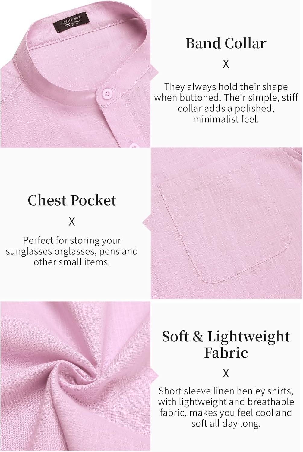 COOFANDY Men Casual Henley Tee Shirt Short Sleeve Band Collar Summer Beach Textured T-Shirt(Pink)