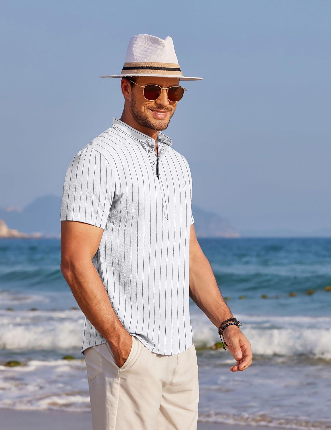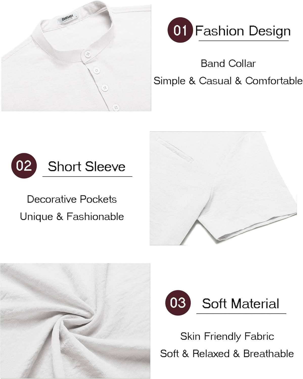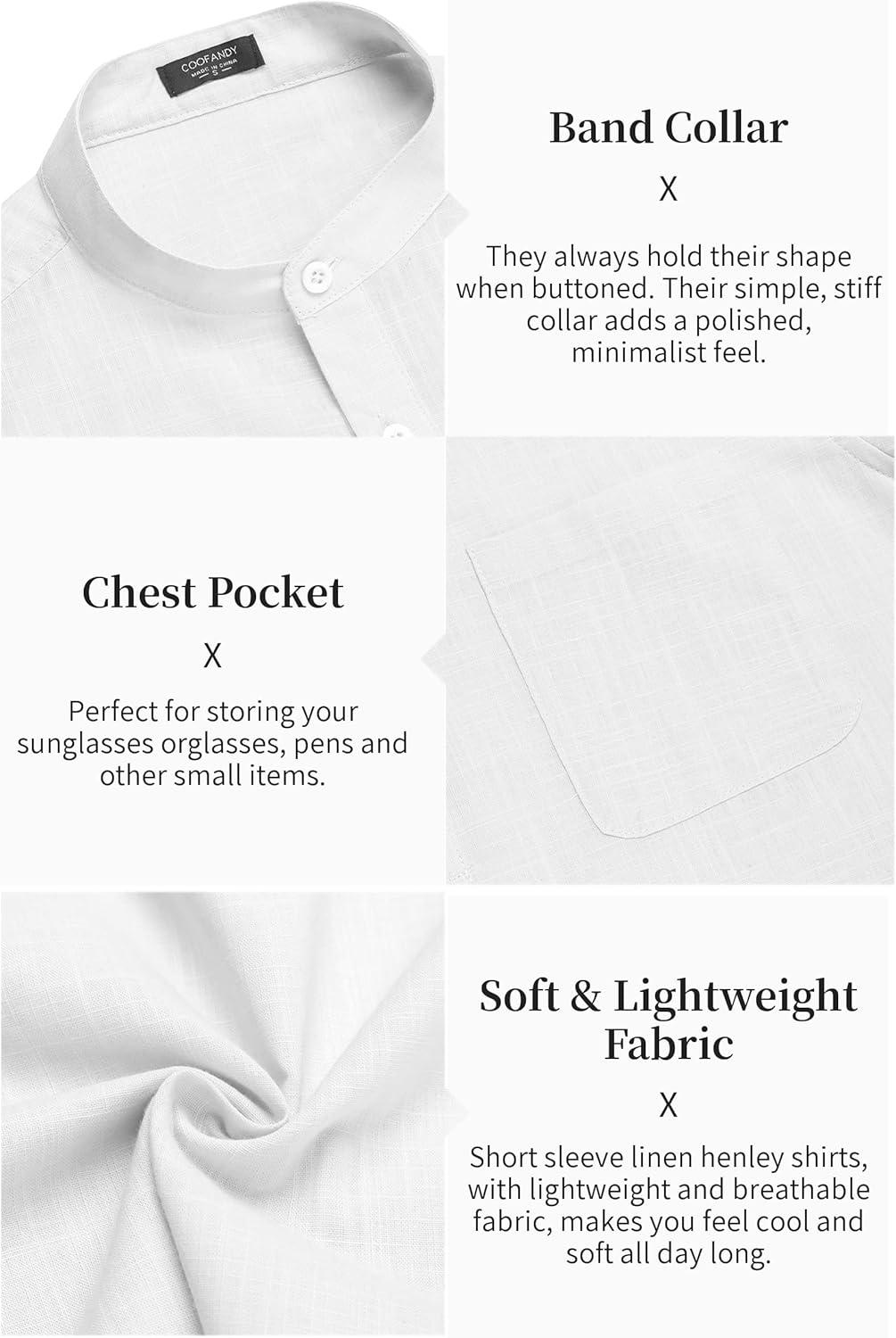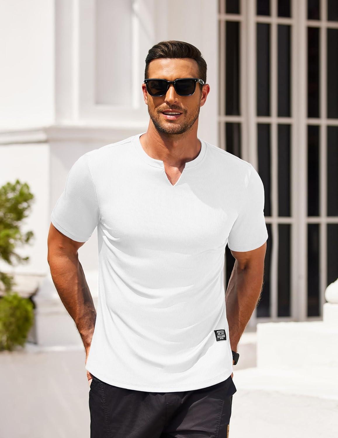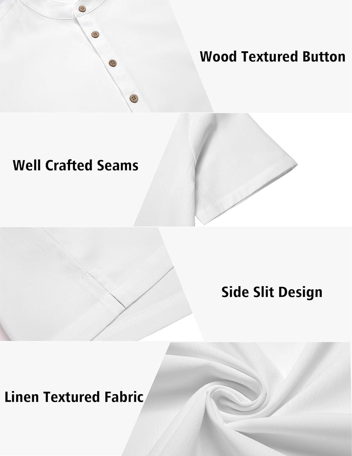 COOFANDY Men Casual Henley Tee Shirt Short Sleeve Band Collar Summer Beach Textured T-Shirt(White)