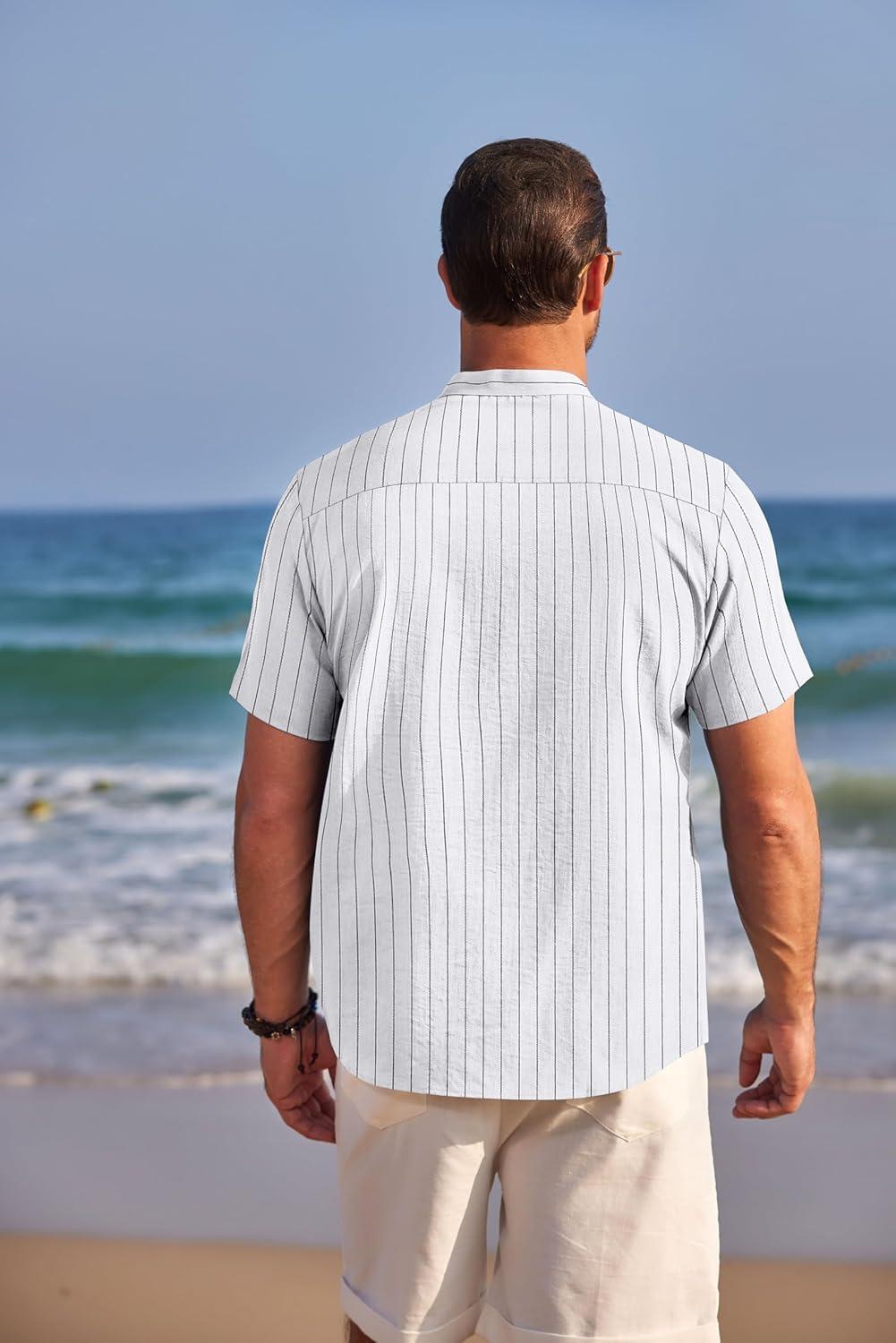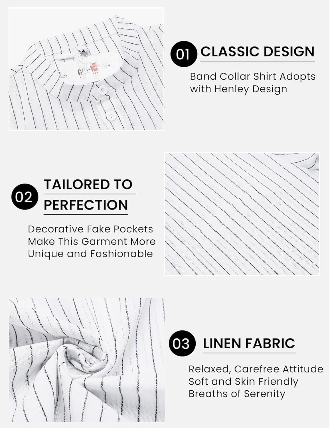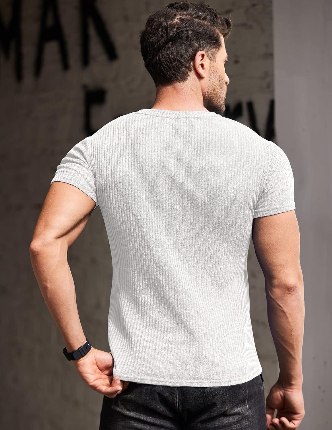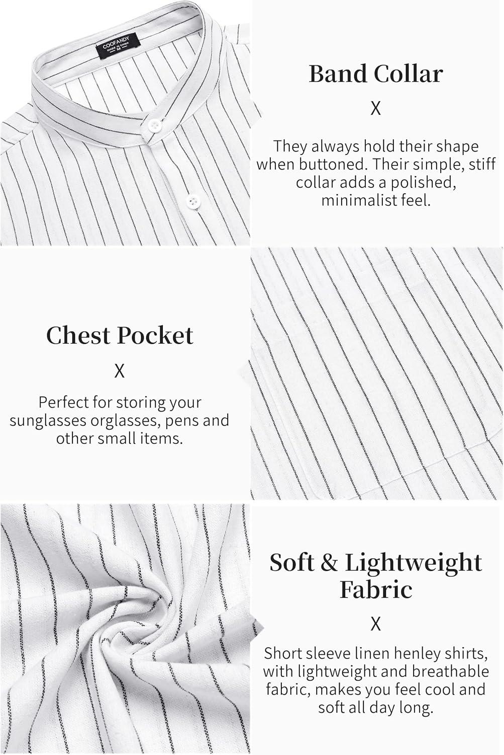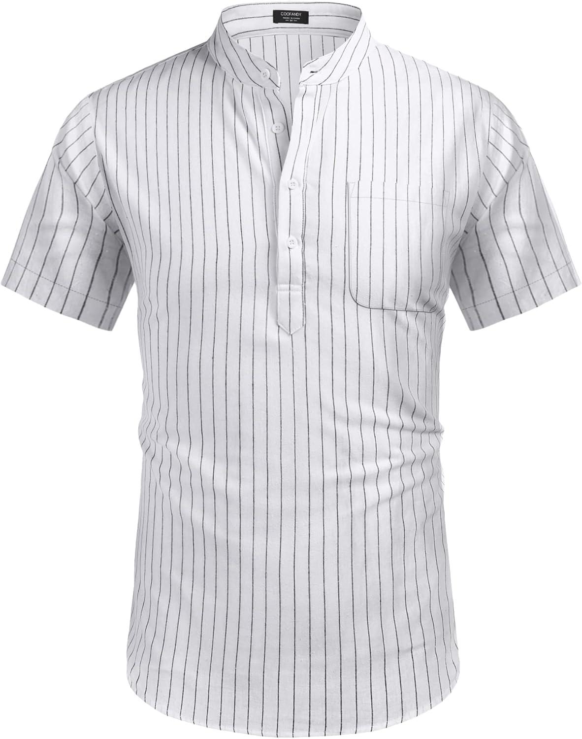 COOFANDY Men Casual Henley Tee Shirt Short Sleeve Band Collar Summer Beach Textured T-Shirt(White)