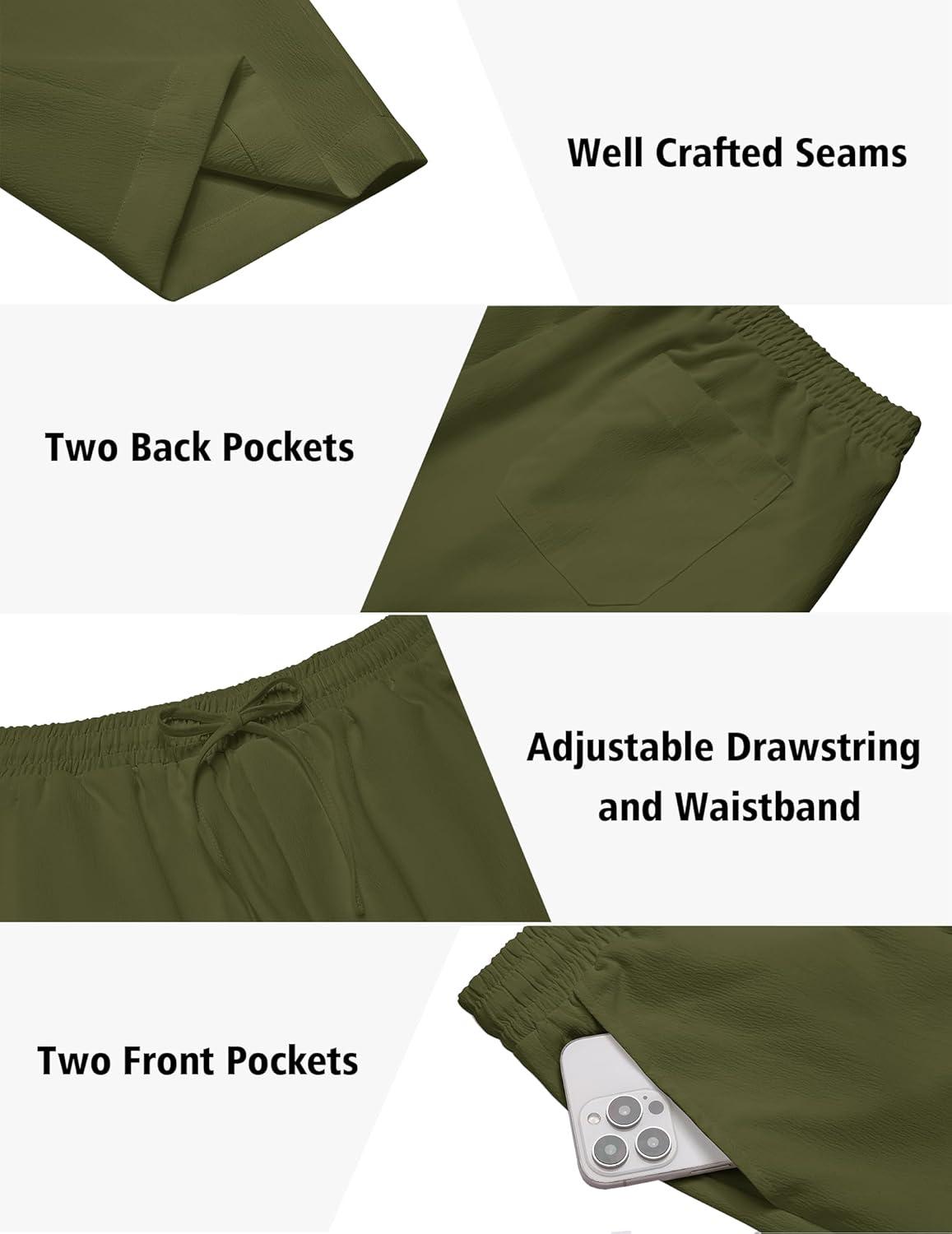 COOFANDY Men’s 2 Pieces Linen Set Henley Shirt Short Sleeve and Harem Capri Pants Wide Leg Baggy Beach Yoga Trousers Outfits(Army Green)