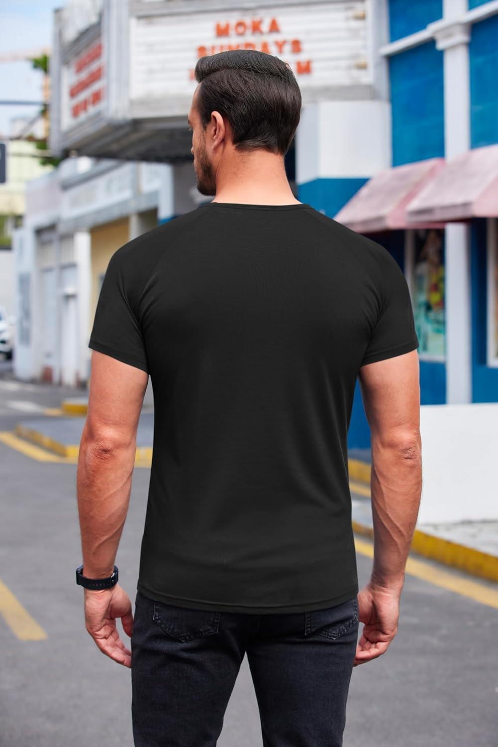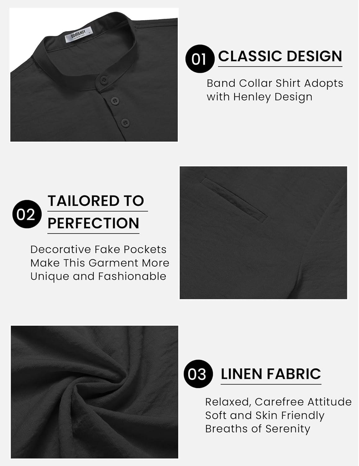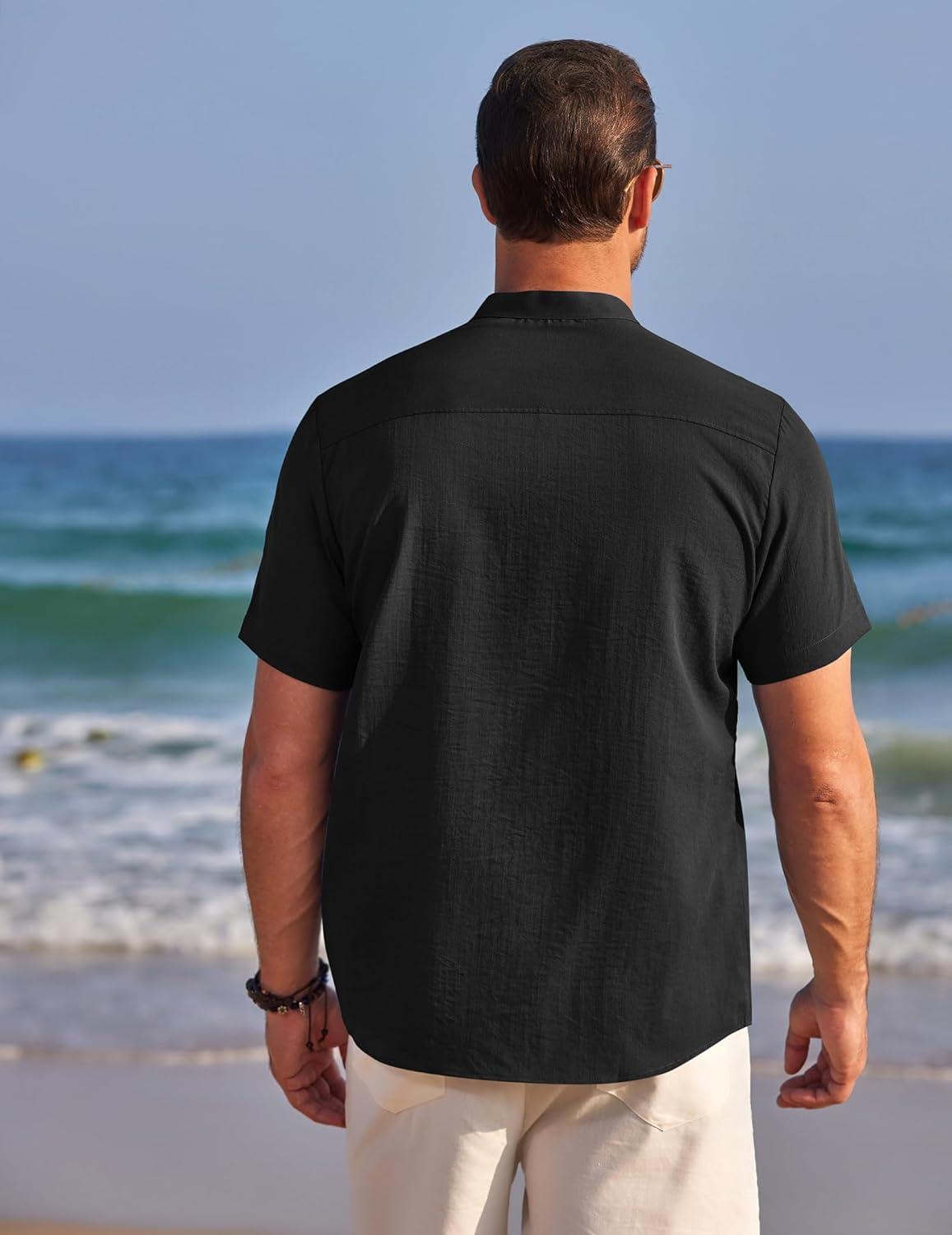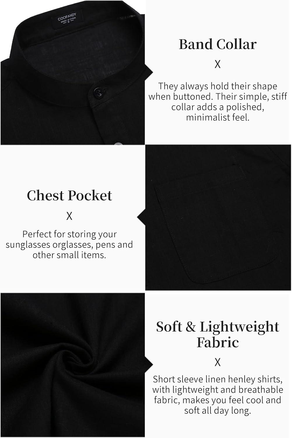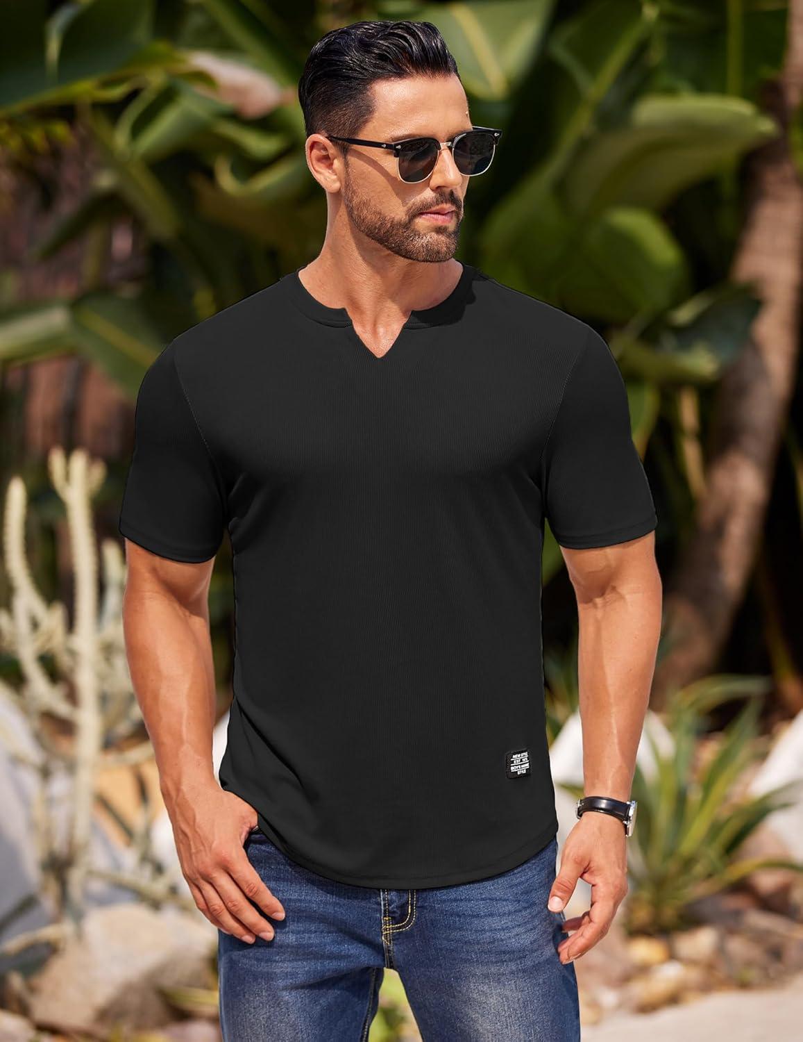 COOFANDY Men Casual Henley Tee Shirt Short Sleeve Band Collar Summer Beach Textured T-Shirt(Black)