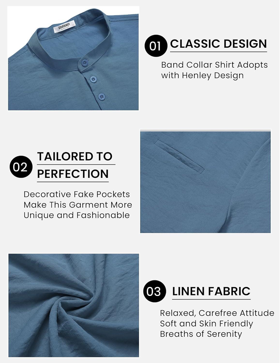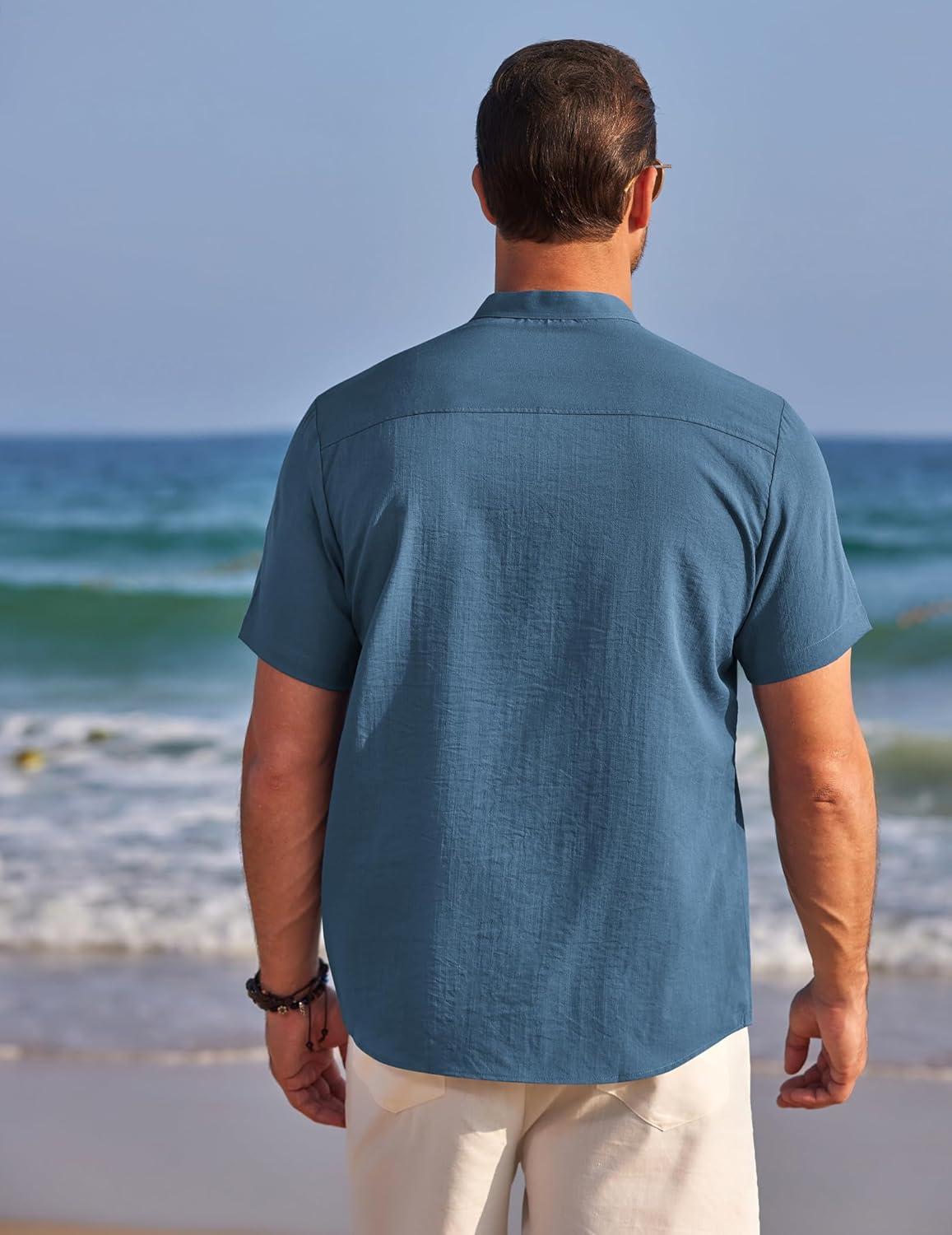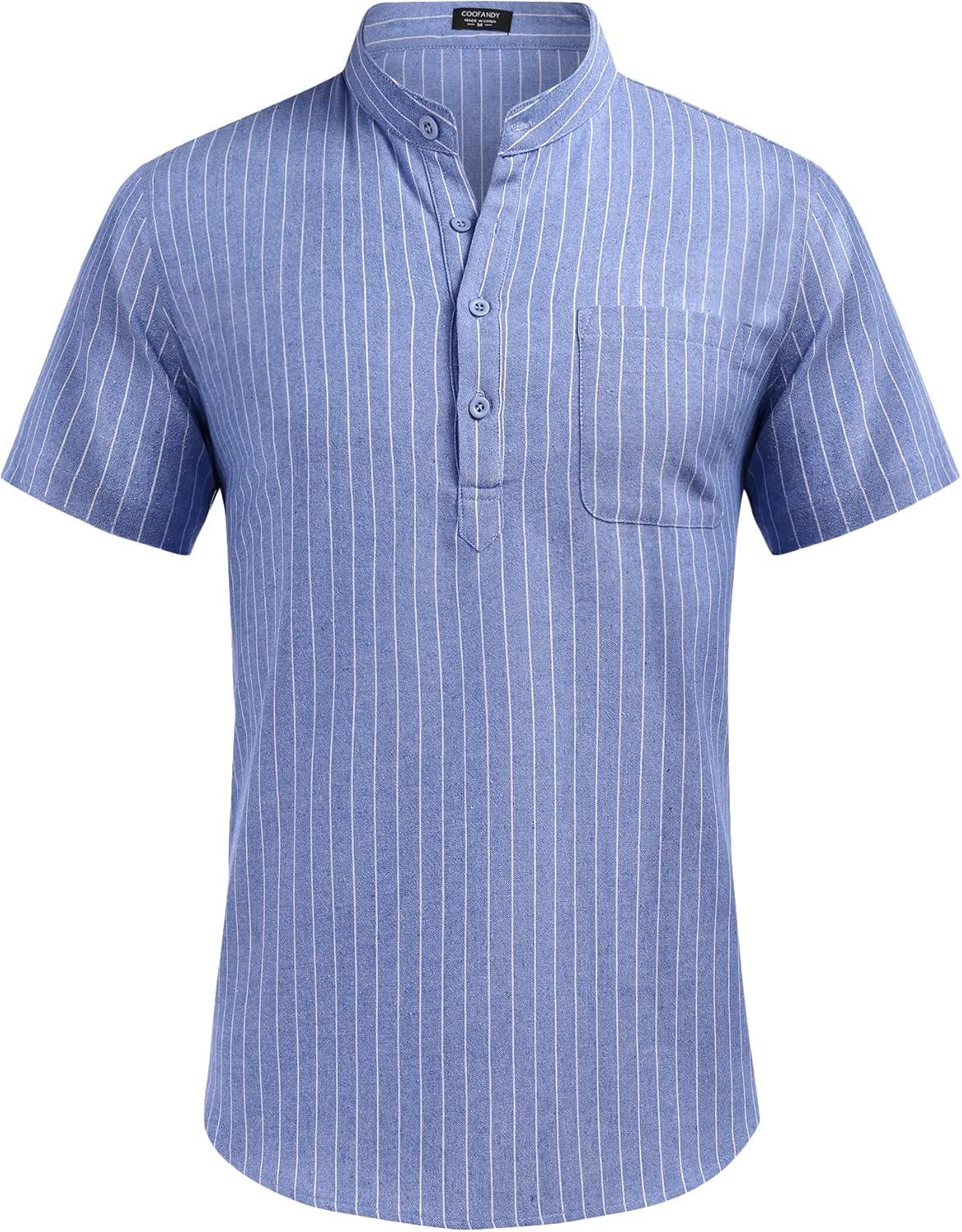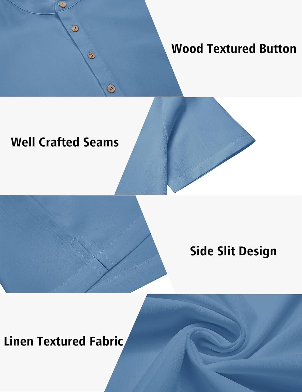COOFANDY Men Casual Henley Tee Shirt Short Sleeve Band Collar Summer Beach Textured T-Shirt(Blue)