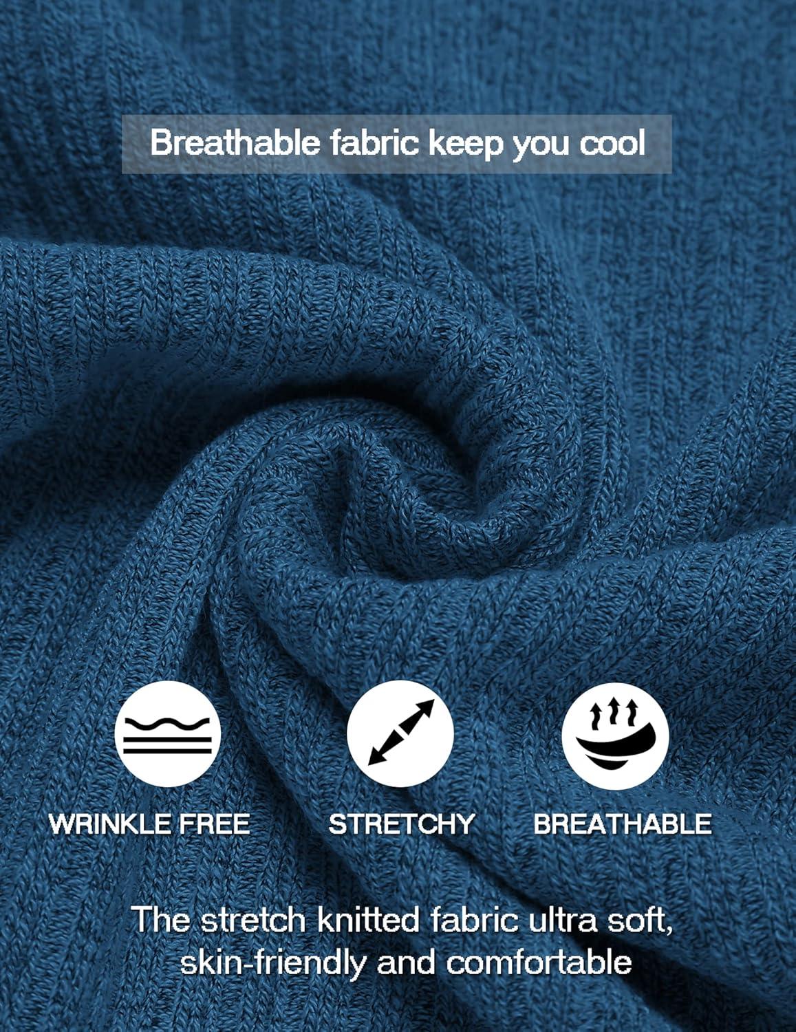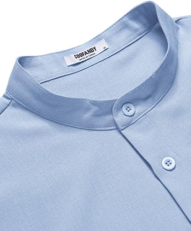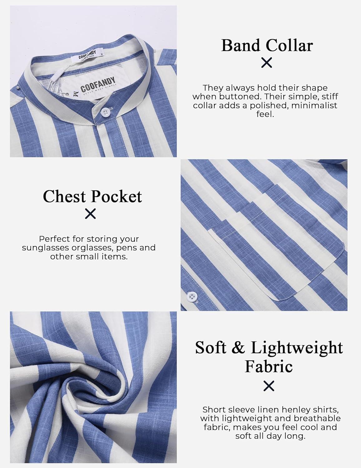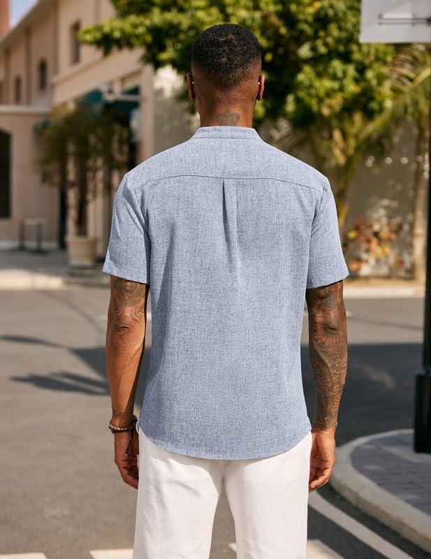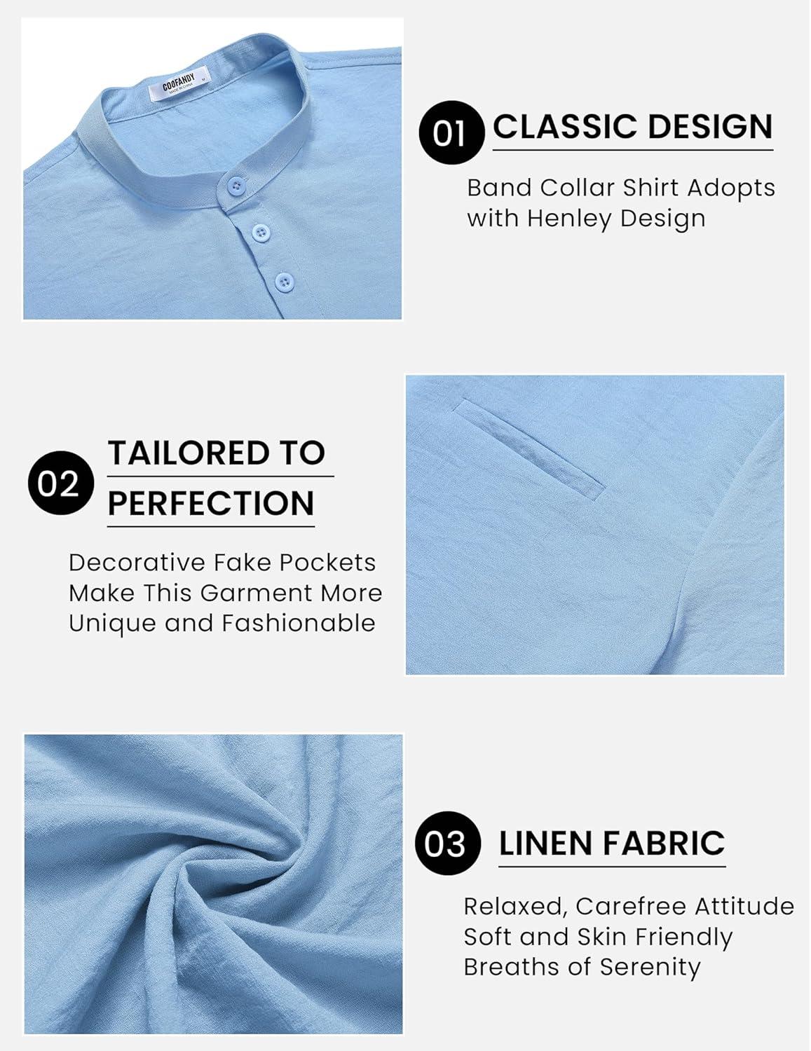 COOFANDY Men Casual Henley Tee Shirt Short Sleeve Band Collar Summer Beach Textured T-Shirt(Blue)