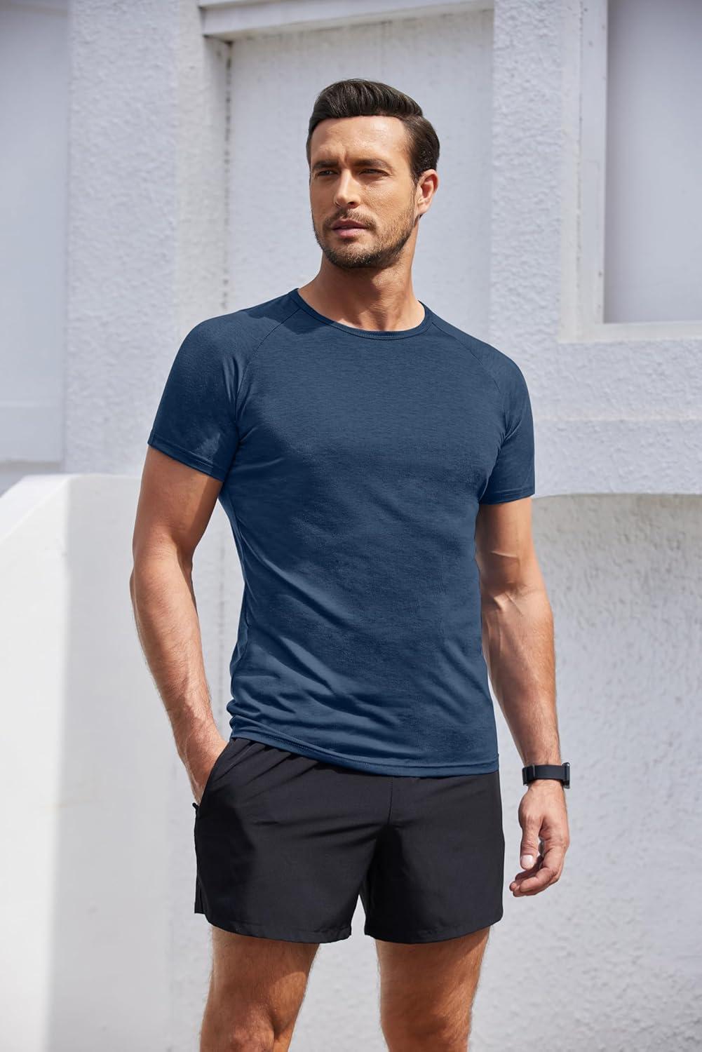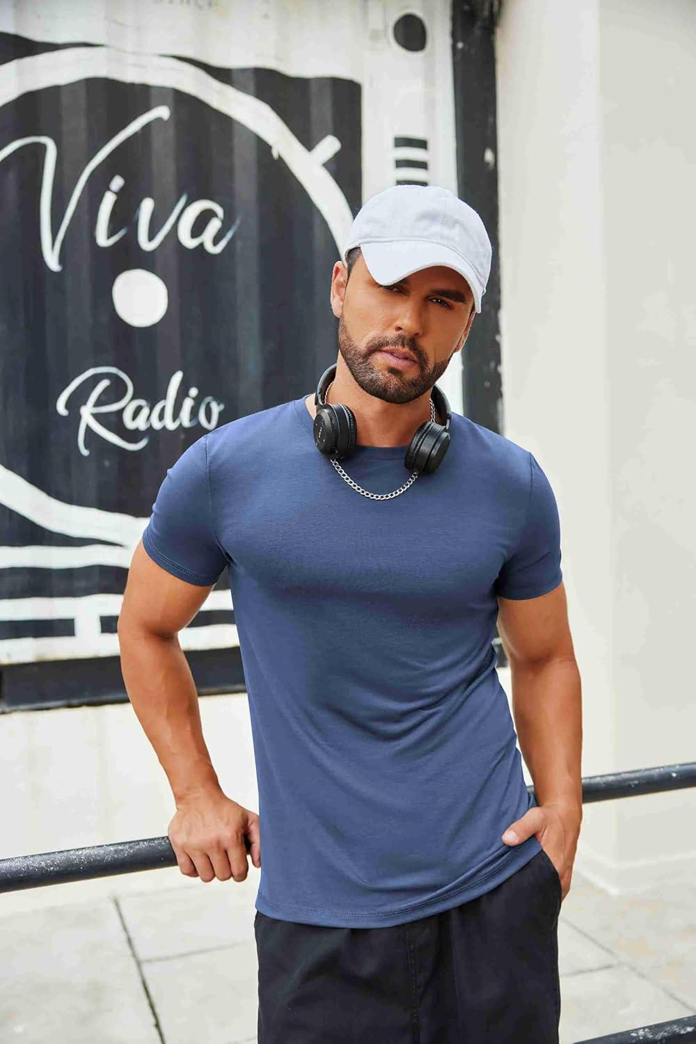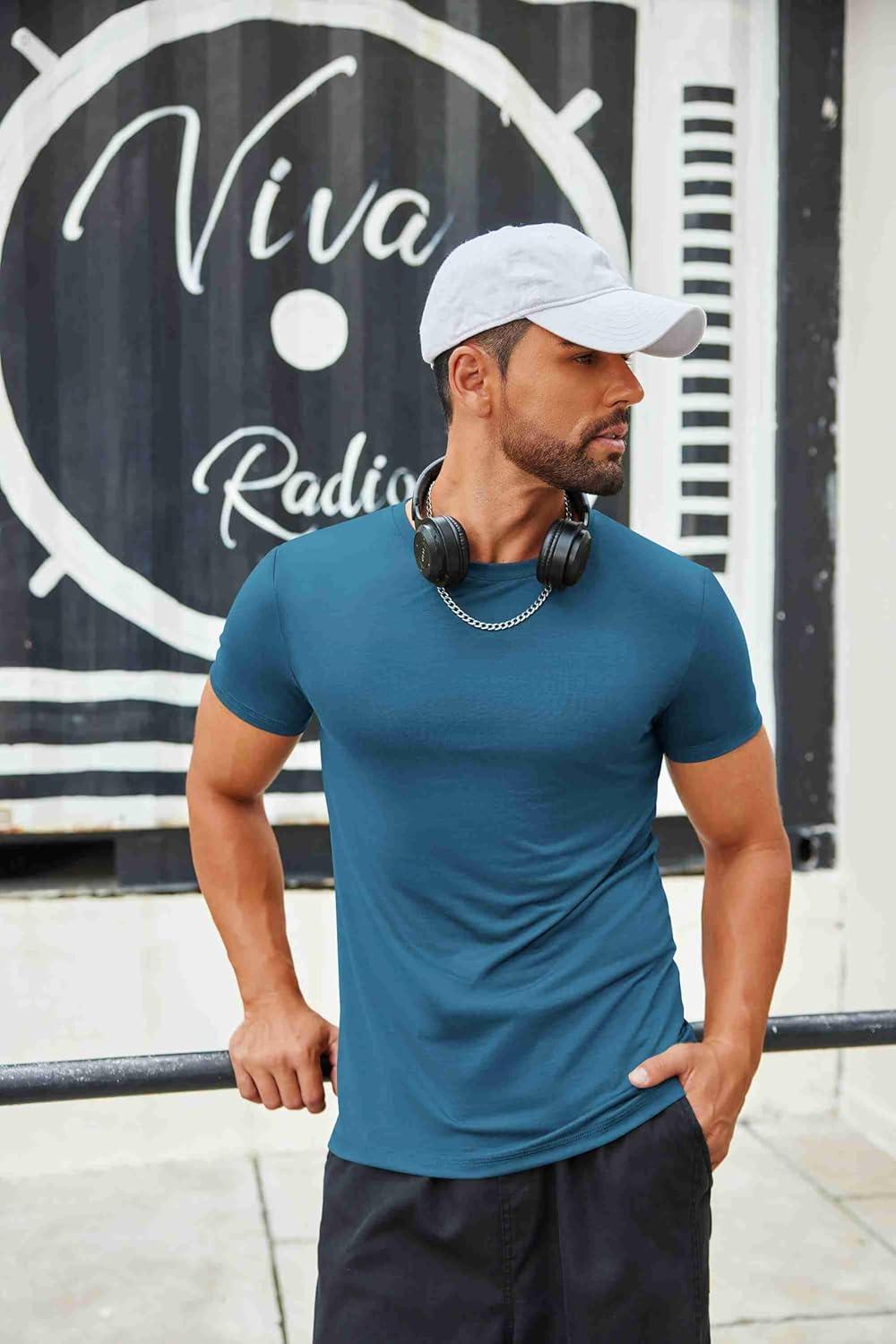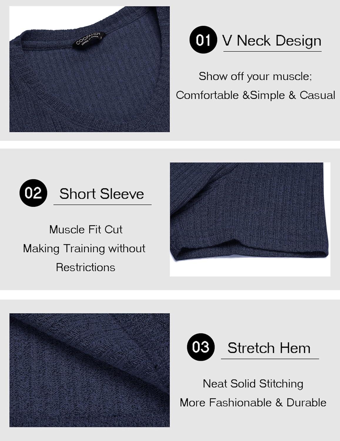 COOFANDY Men Muscle Workout T Shirt Gym Bodybuilding Active Short Sleeve Tee Top Black(One Piece- Navy Blue)