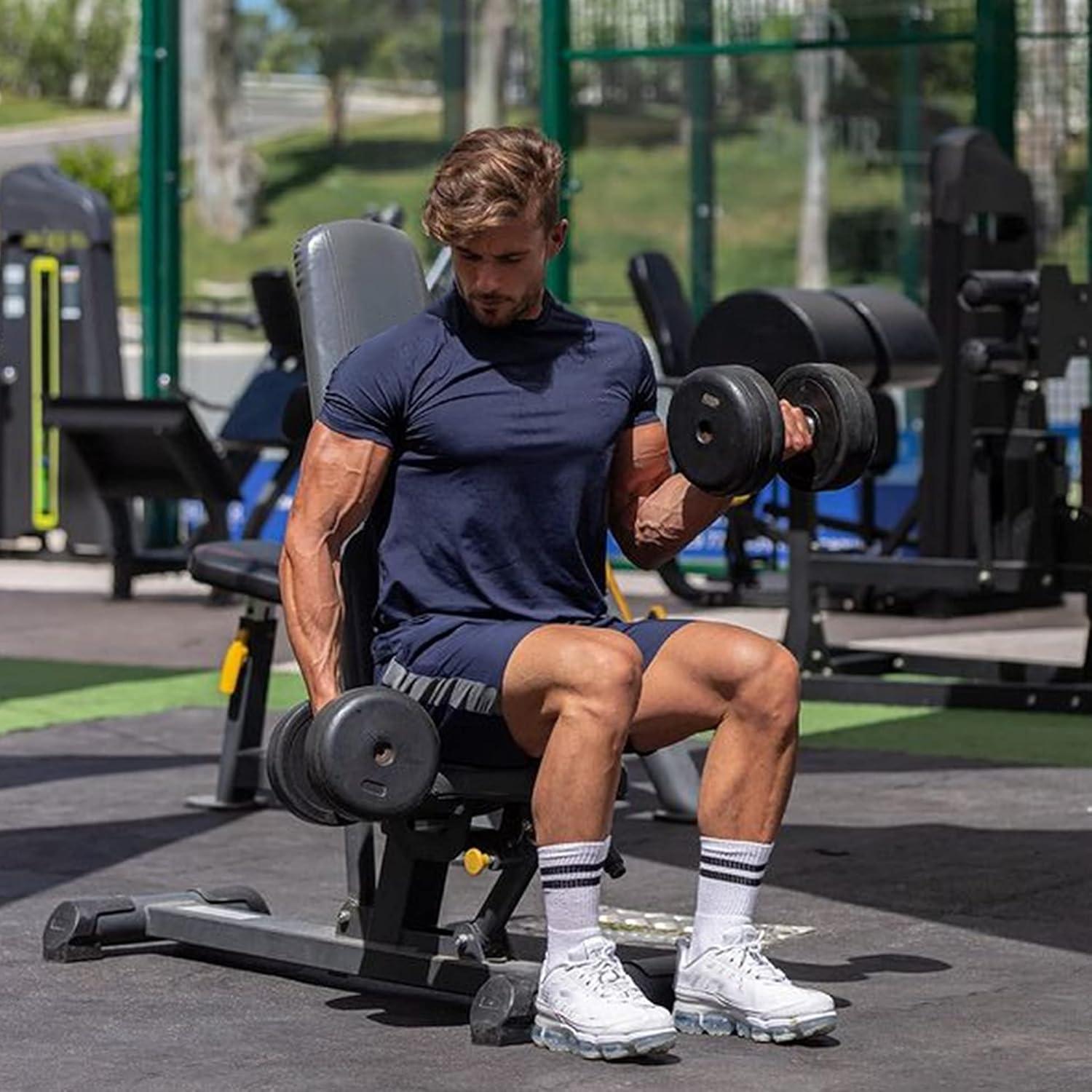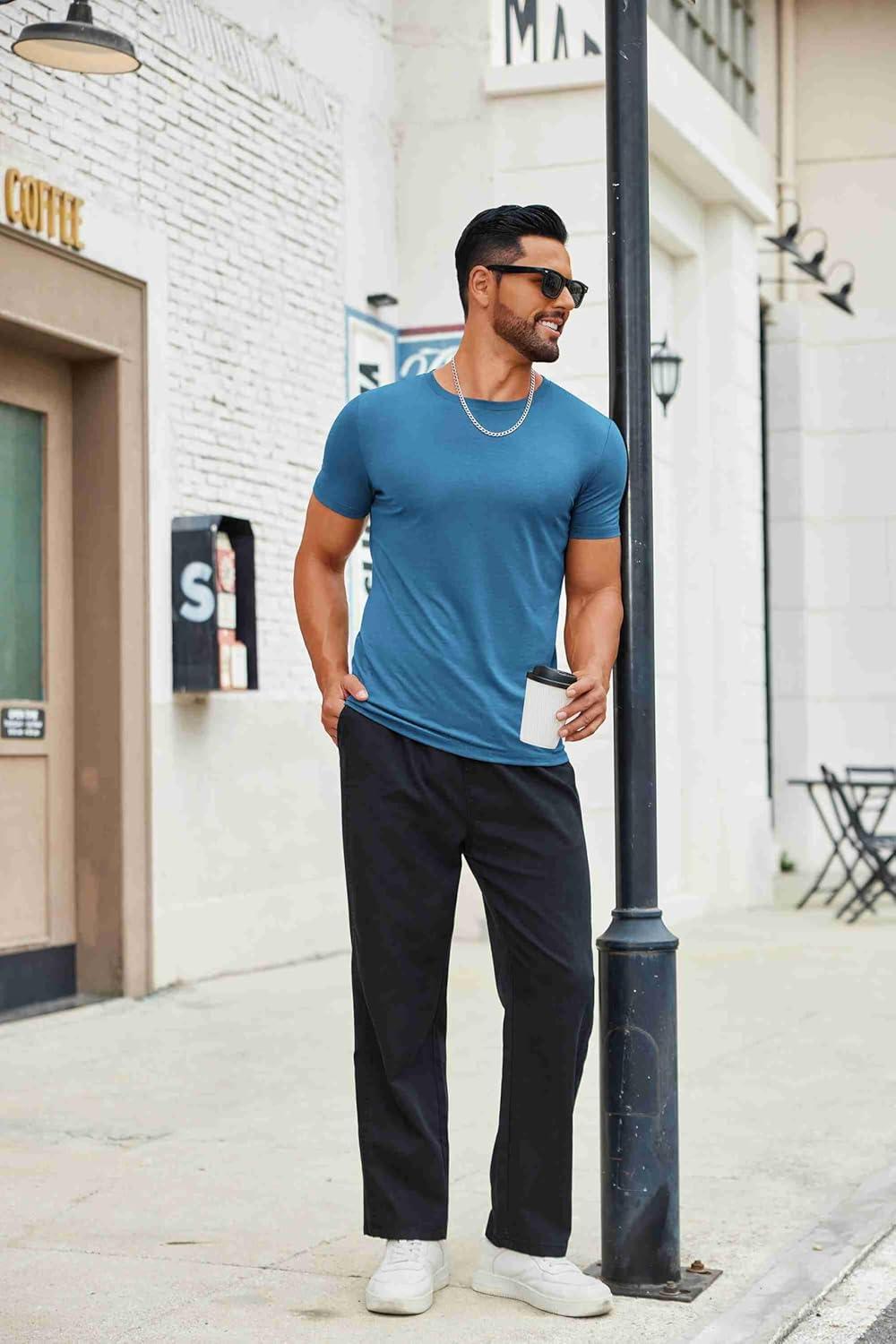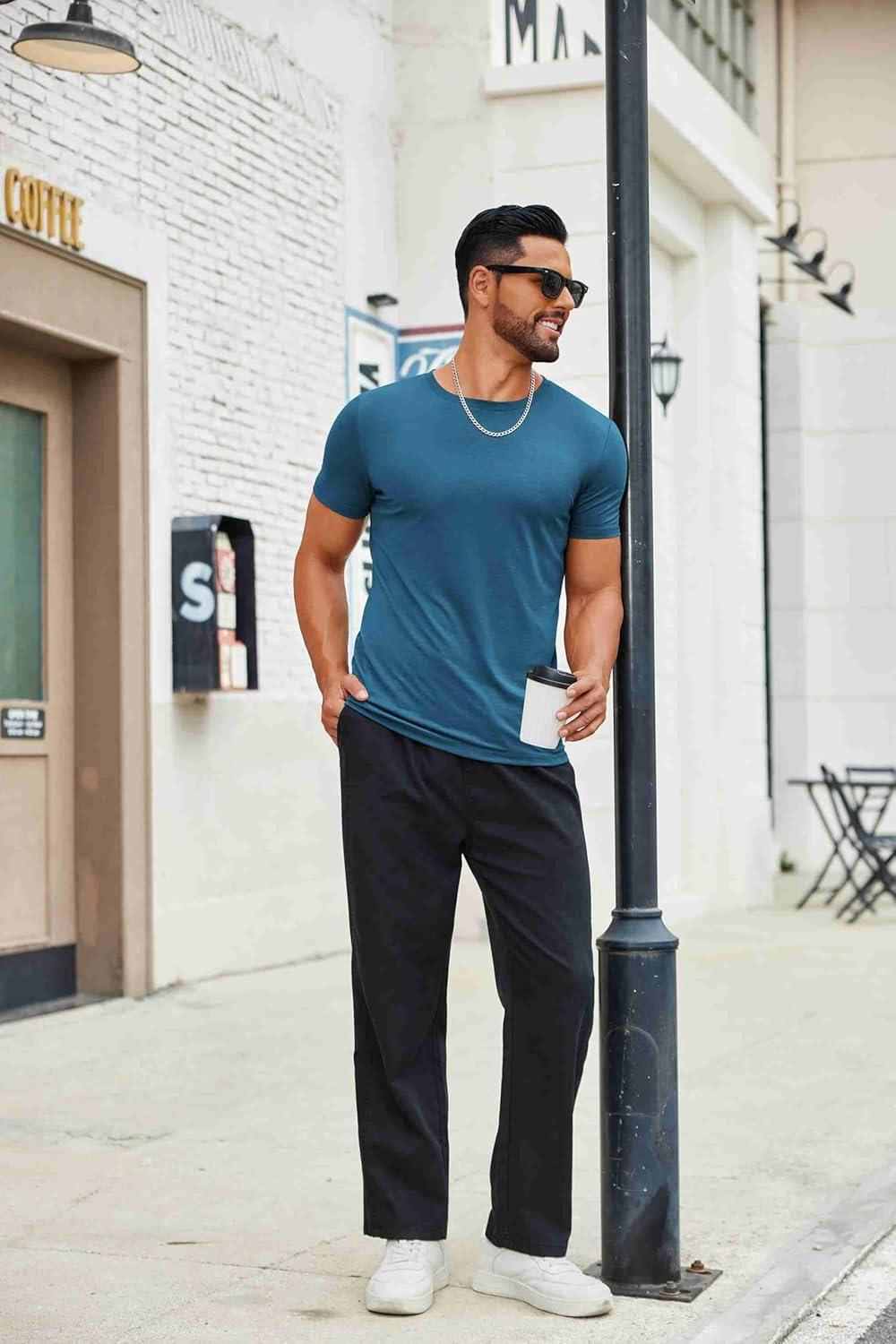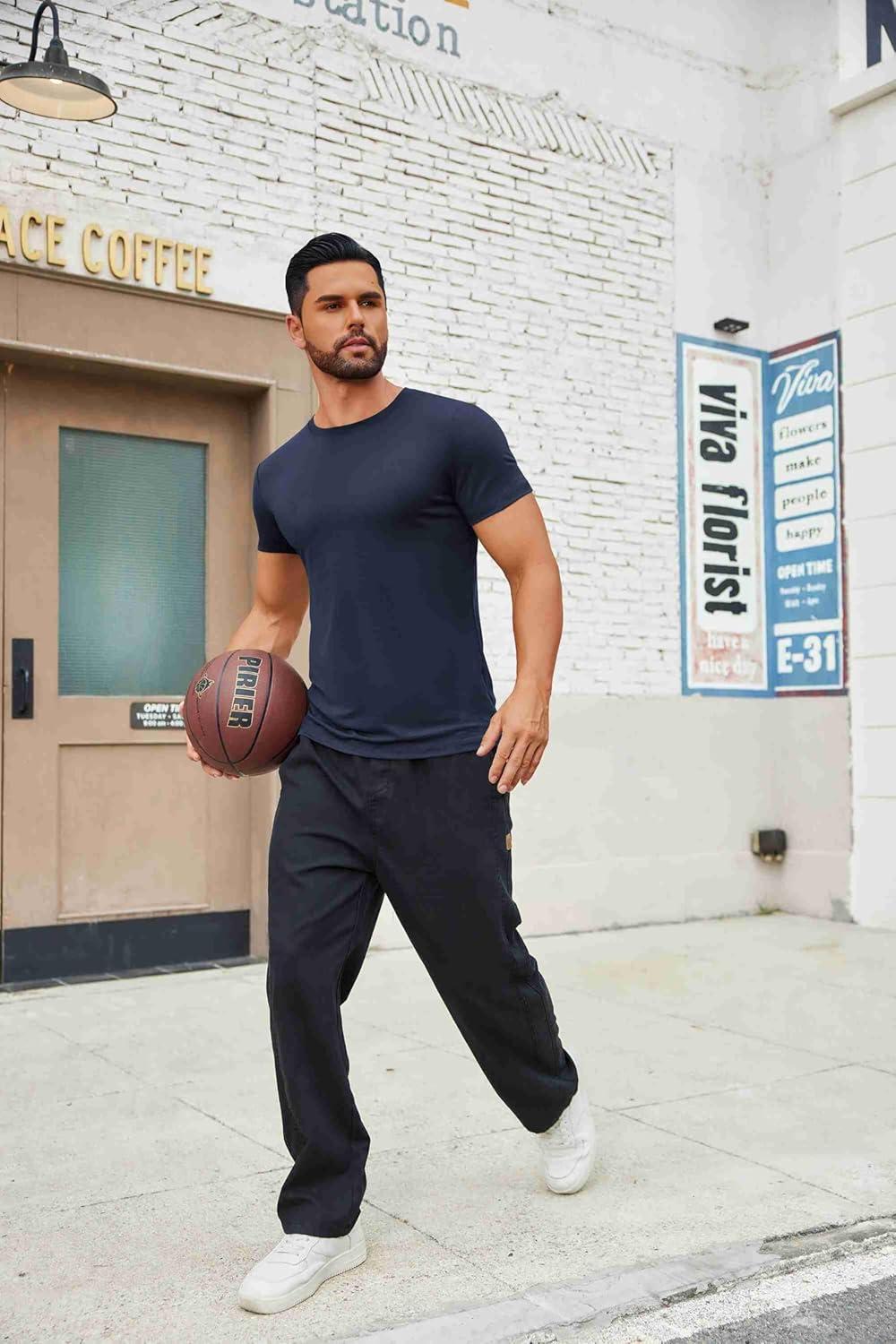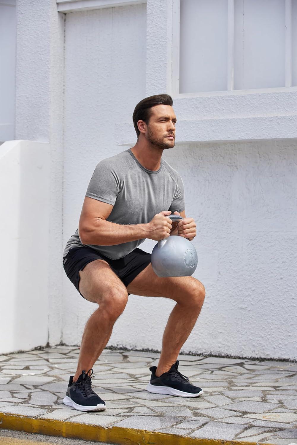 COOFANDY Men Muscle Workout T Shirt Gym Bodybuilding Active Short Sleeve Tee Top Black(One Piece- Navy Blue)