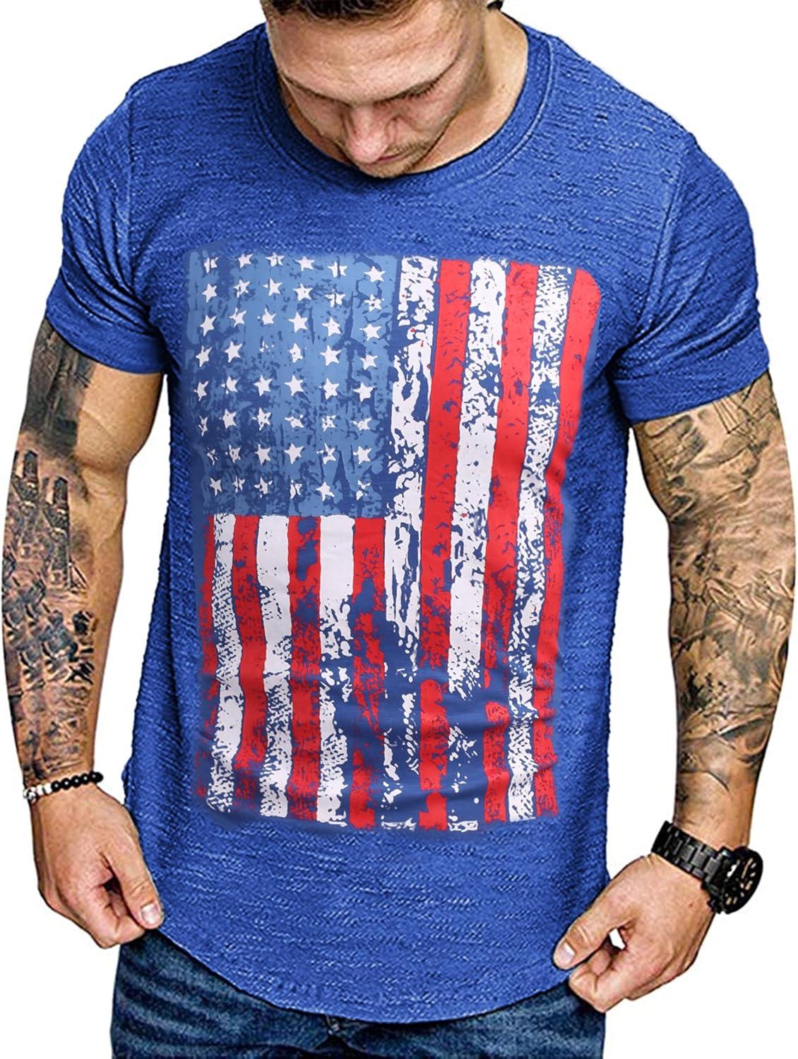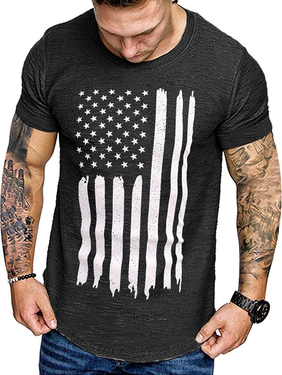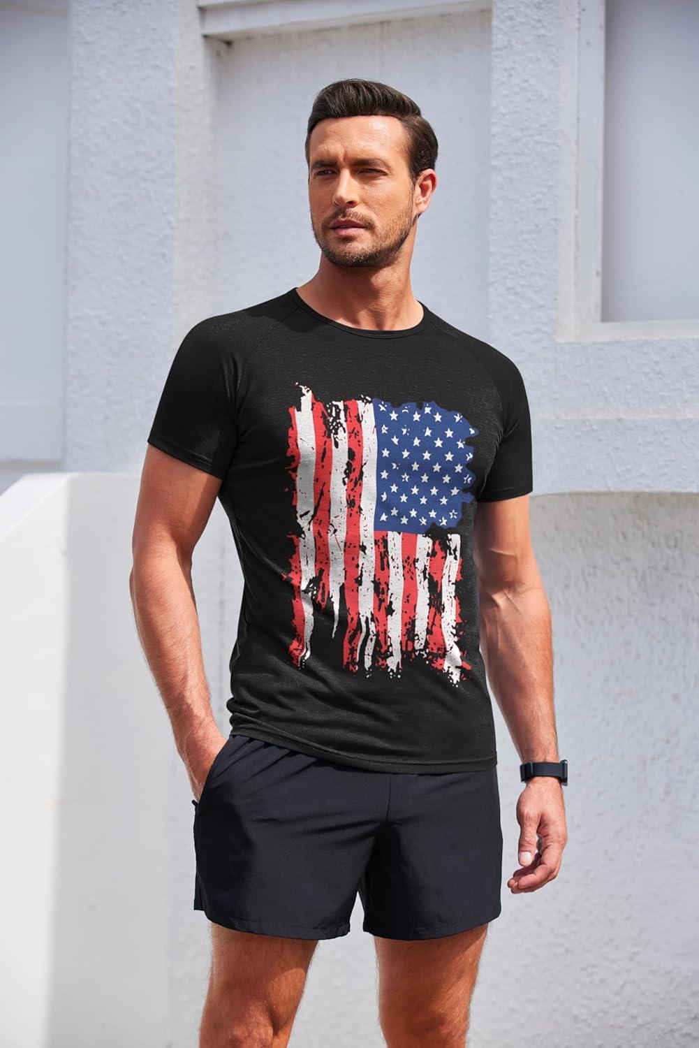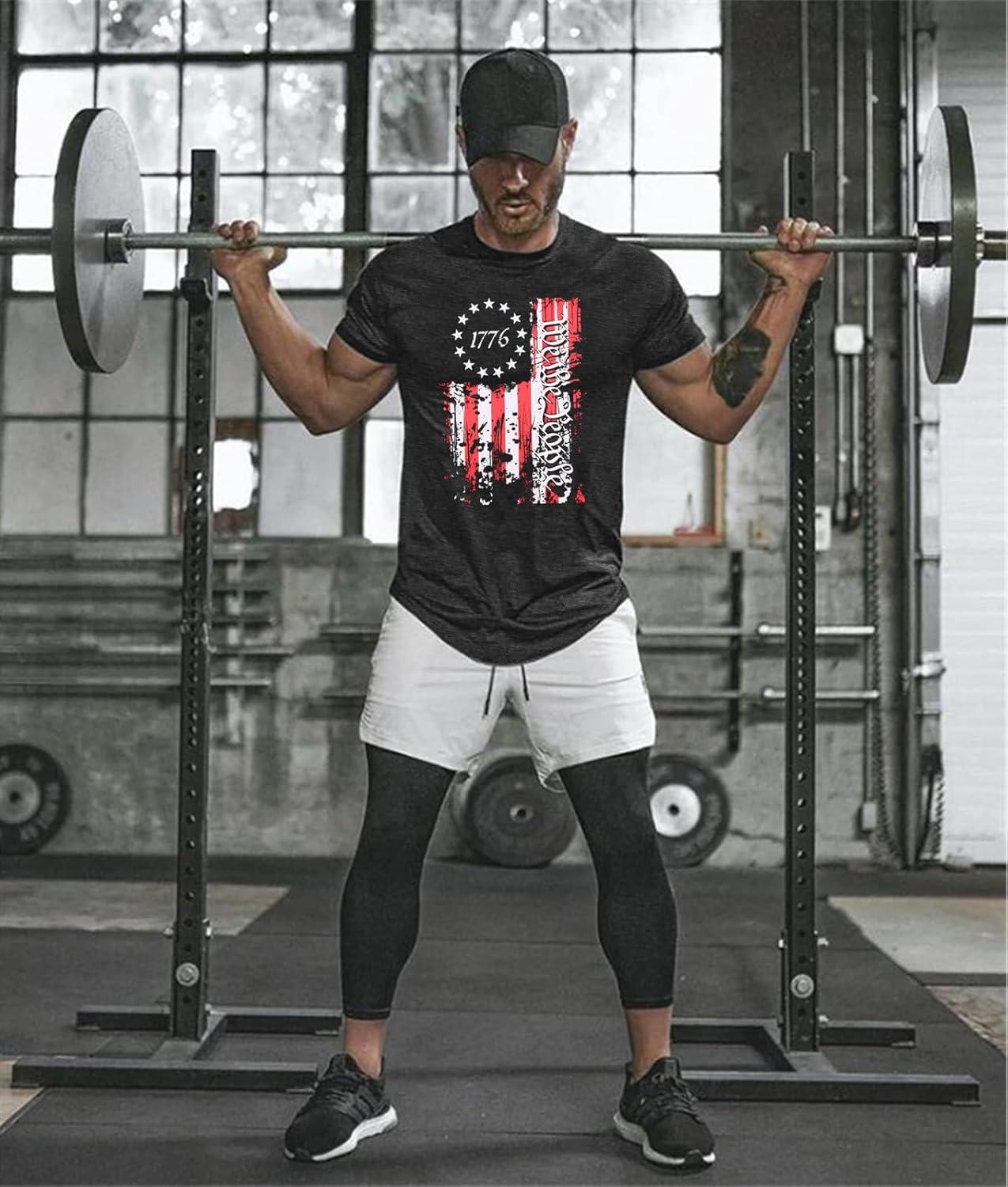 COOFANDY Men Muscle Workout T Shirt Gym Bodybuilding Active Short Sleeve Tee Top Black(One Piece- Black American Flag)