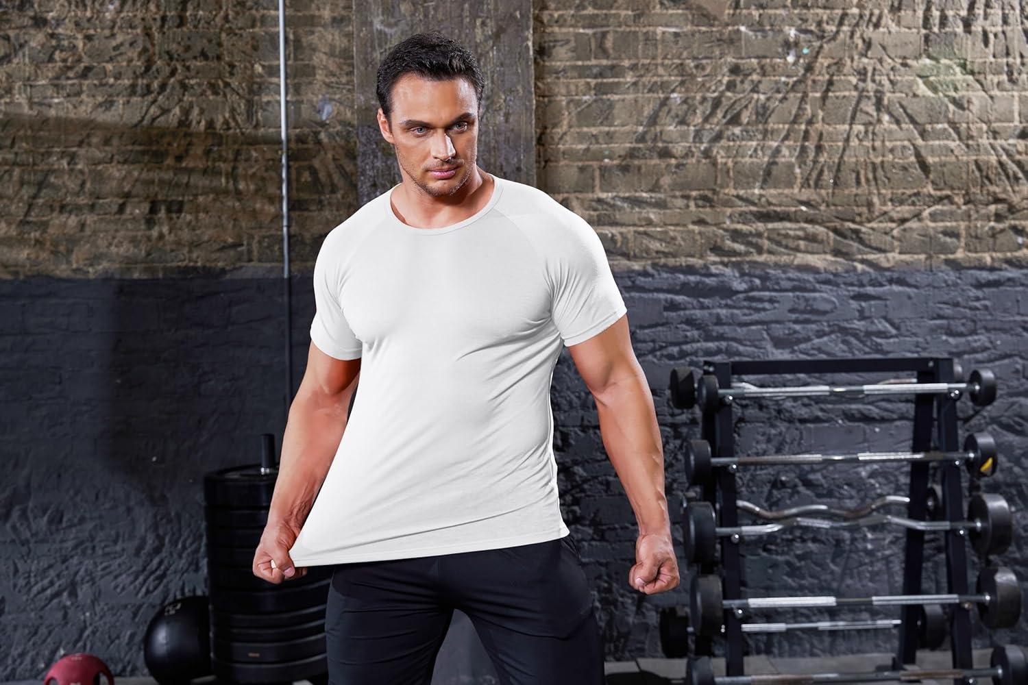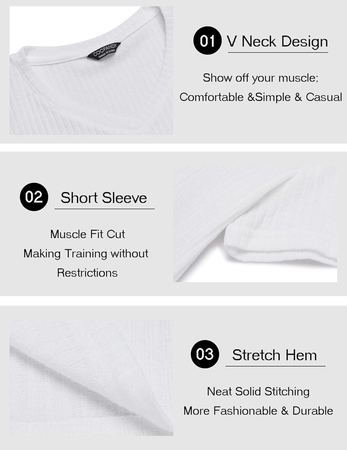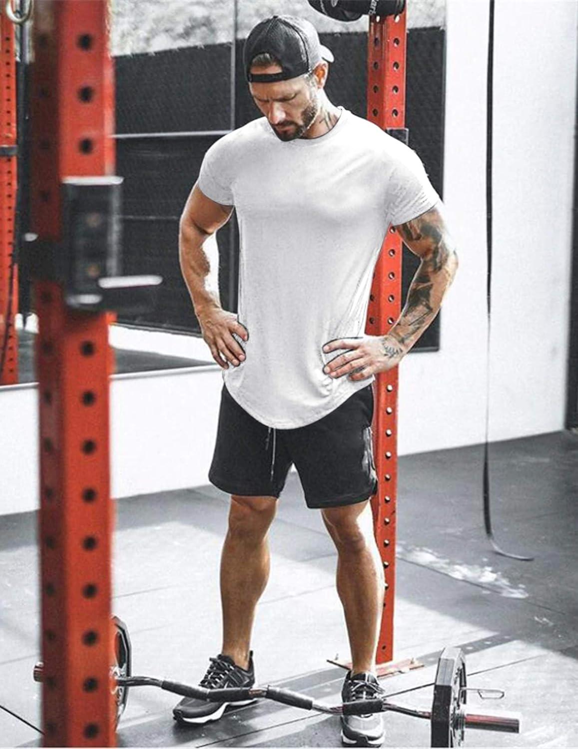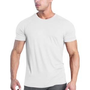 COOFANDY Men Muscle Workout T Shirt Gym Bodybuilding Active Short Sleeve Tee Top Black(One Piece- White)