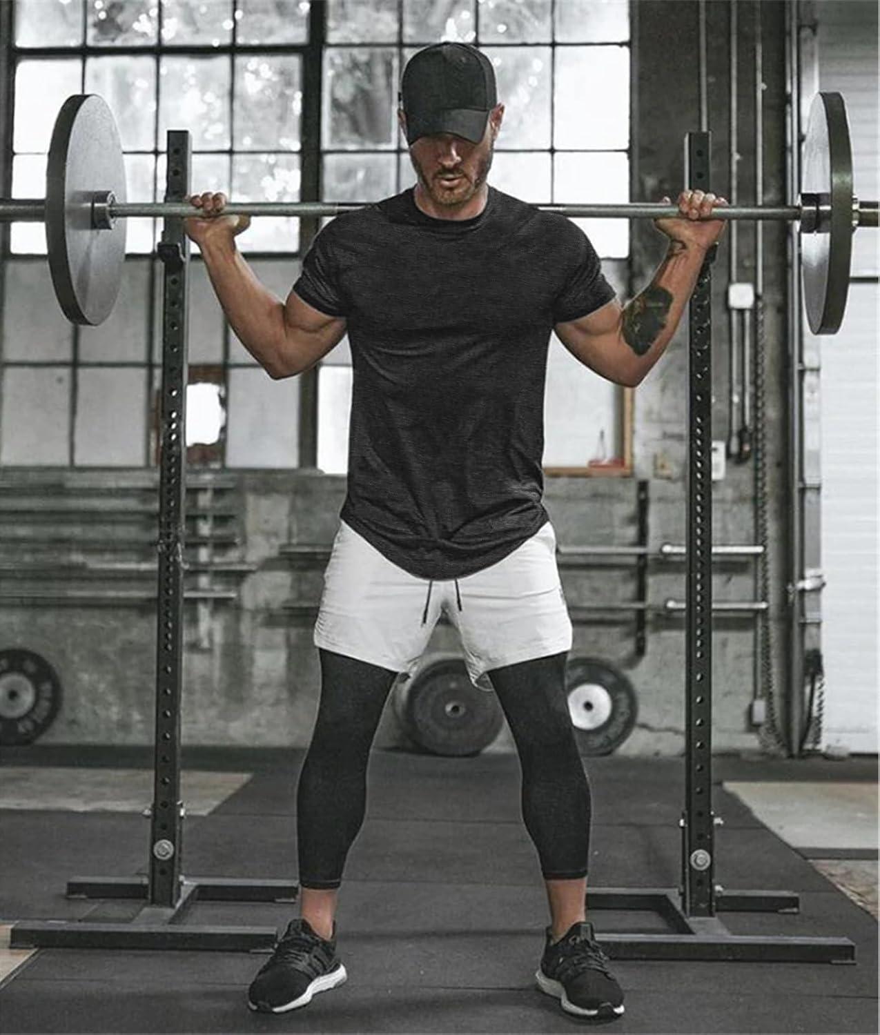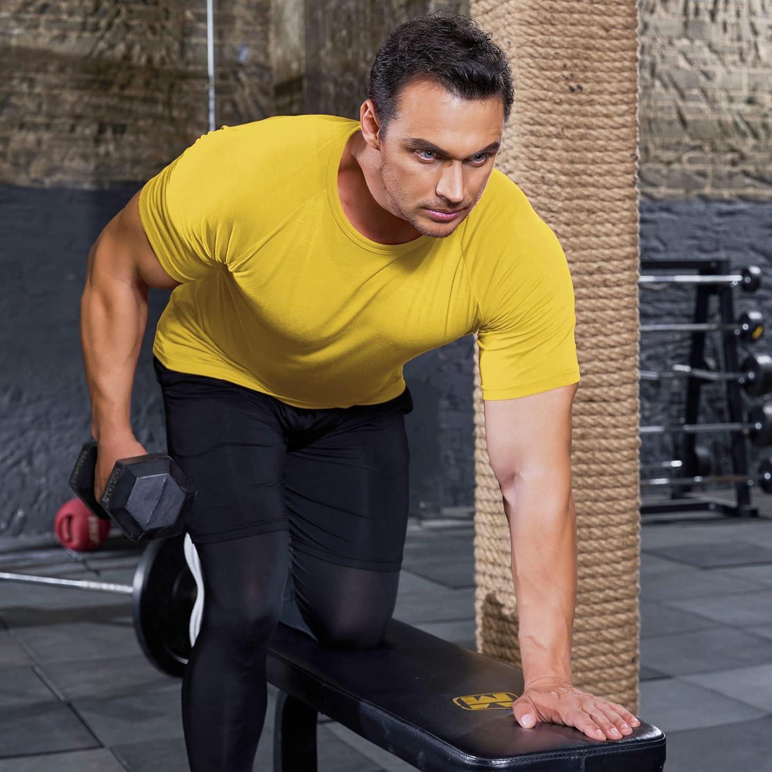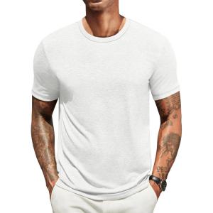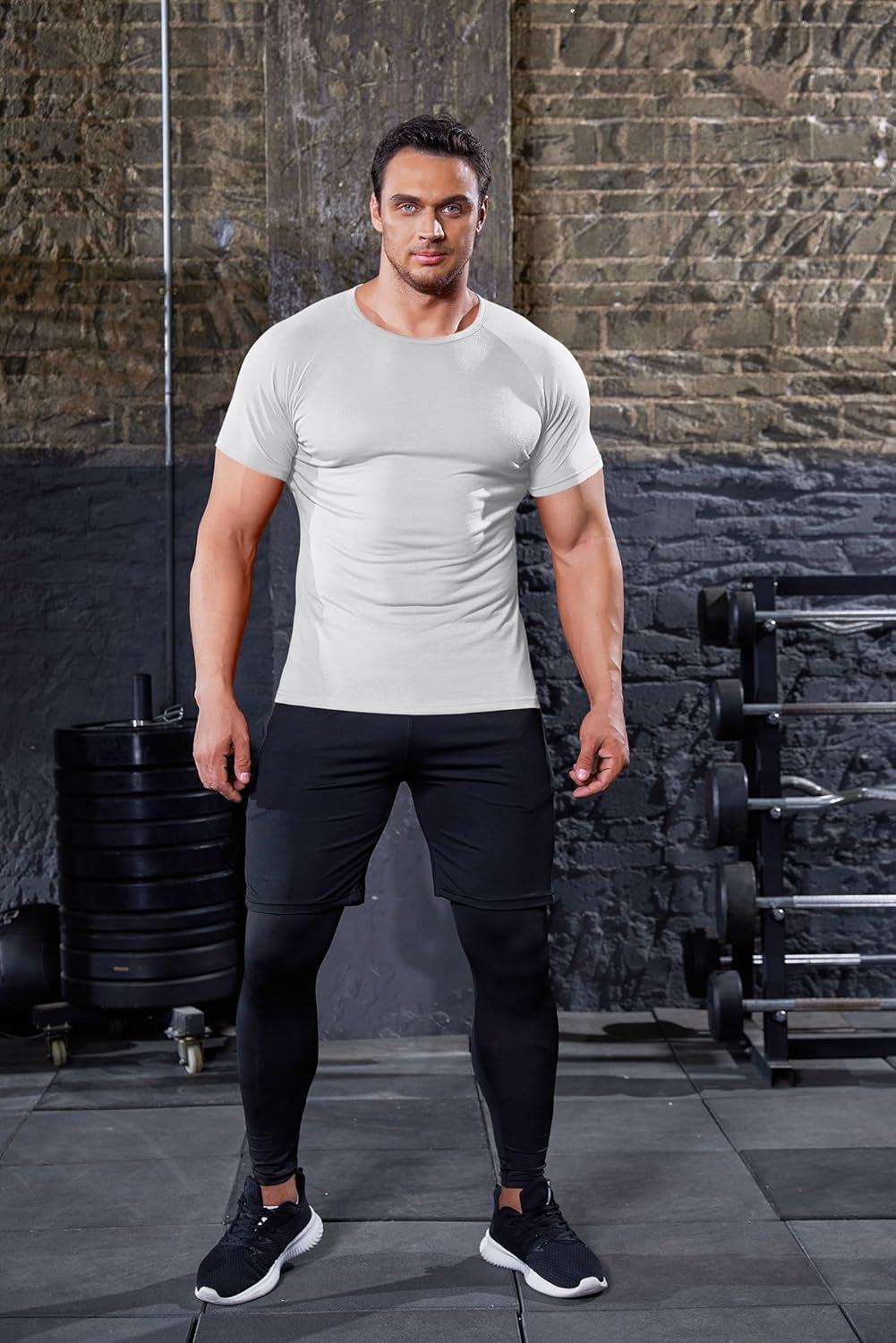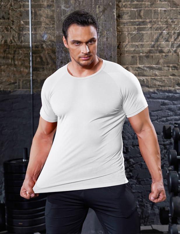 COOFANDY Men Muscle Workout T Shirt Gym Bodybuilding Active Short Sleeve Tee Top Black(One Piece- White)