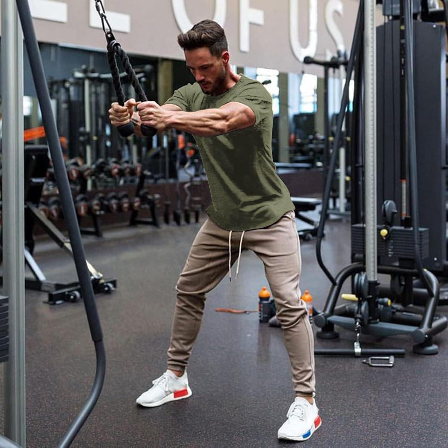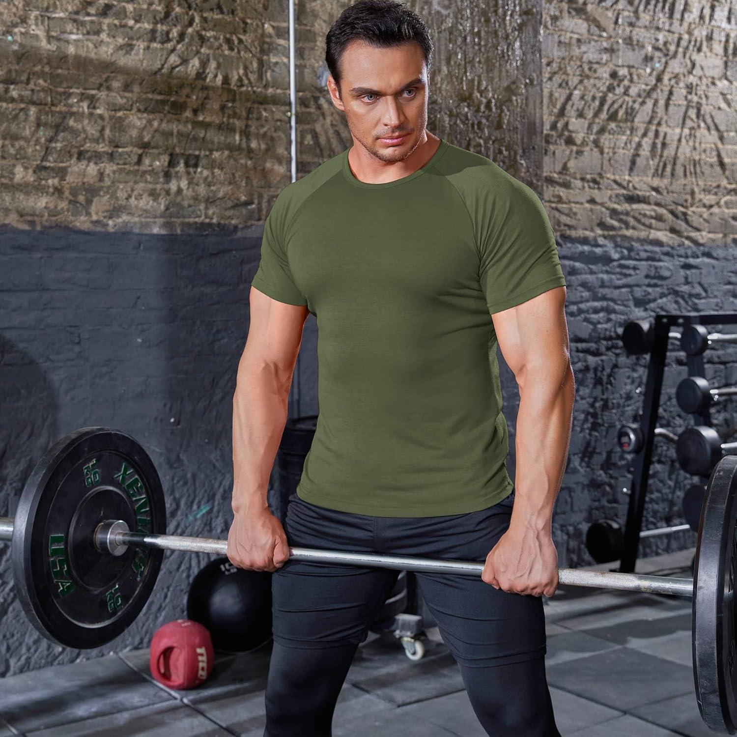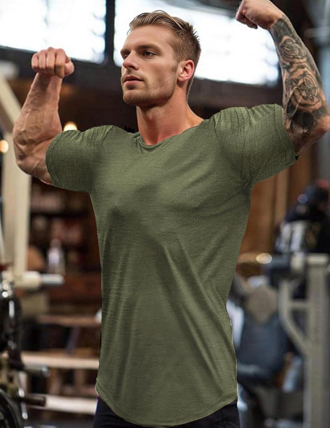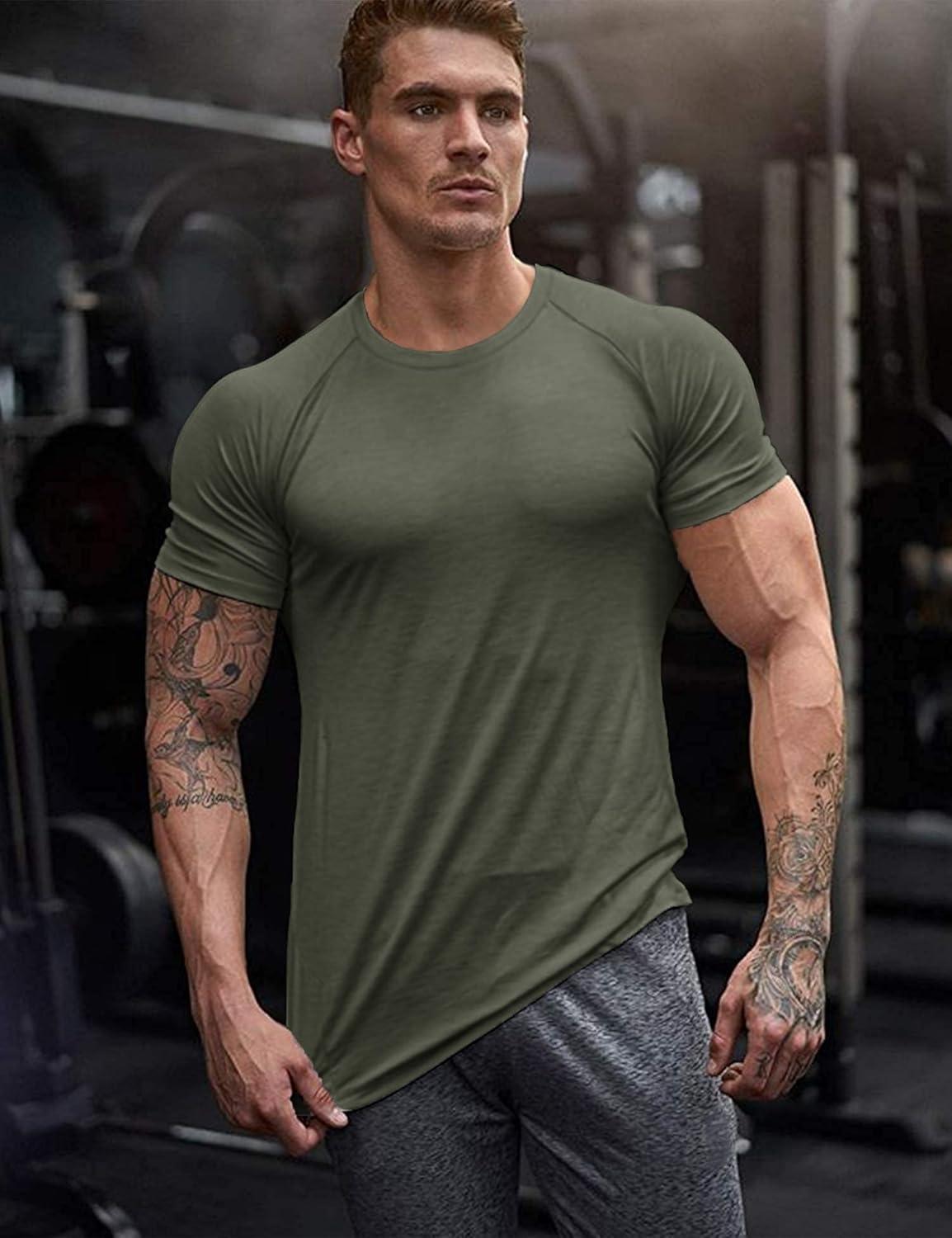COOFANDY Men Muscle Workout T Shirt Gym Bodybuilding Active Short Sleeve Tee Top Black(One Piece- Army Green)