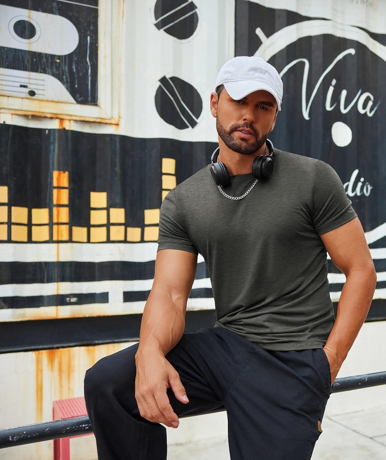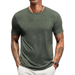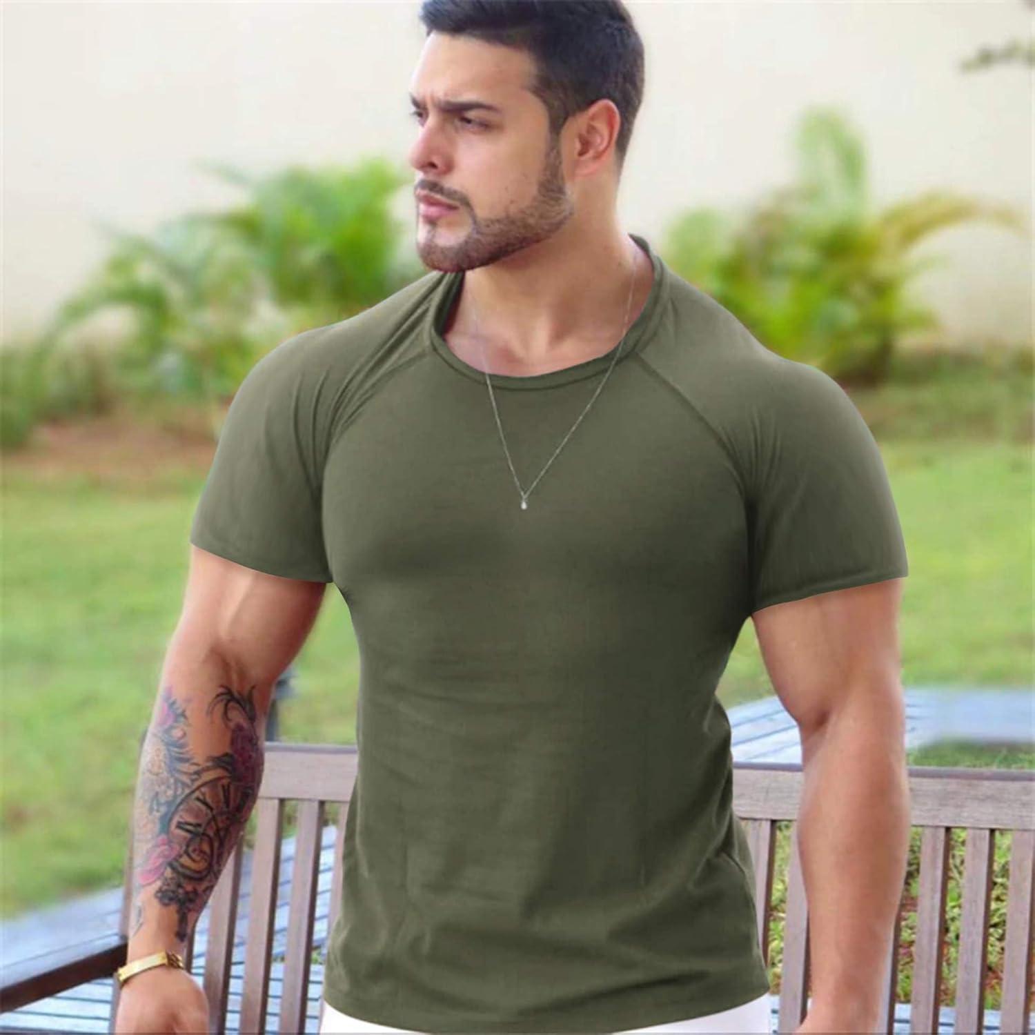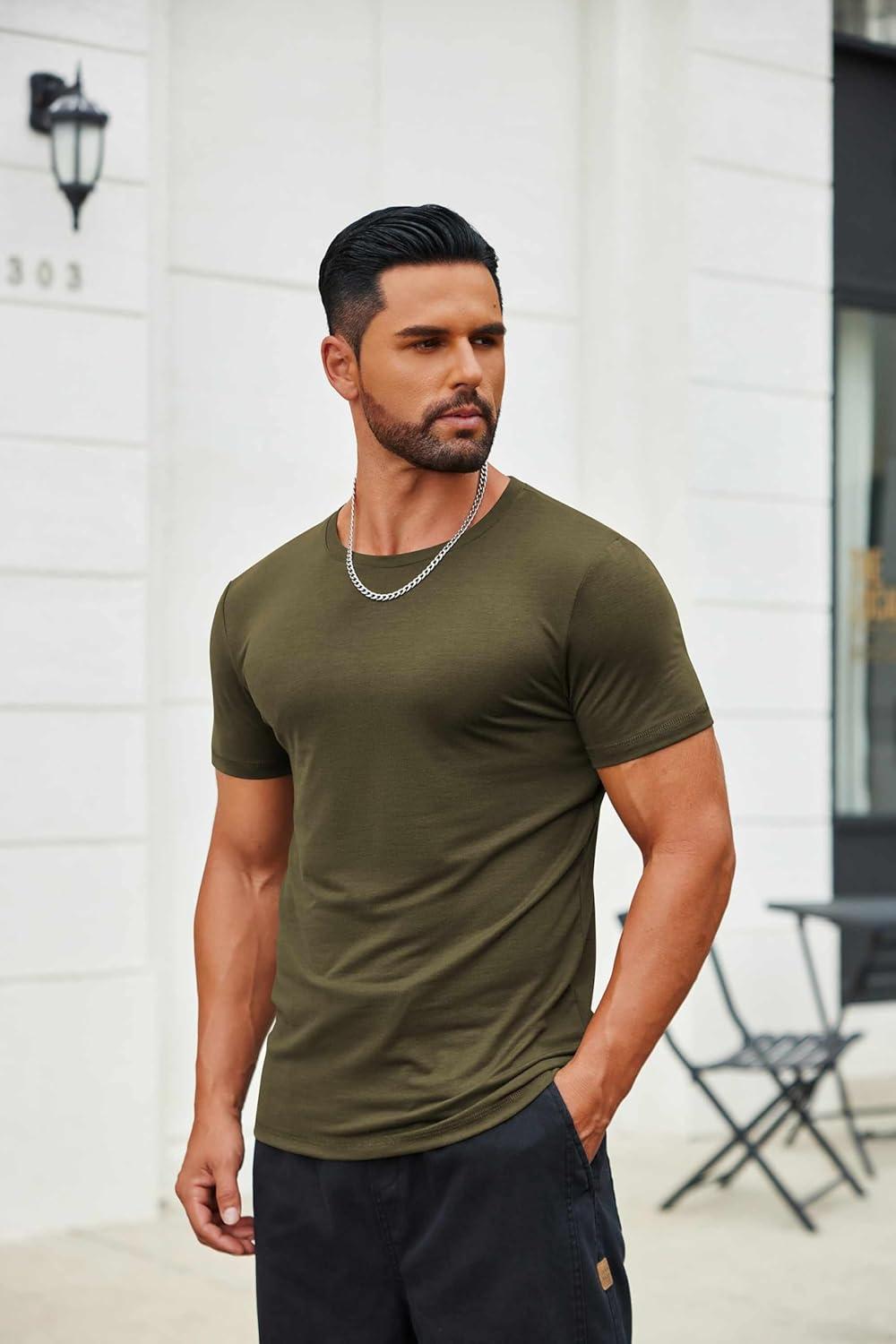COOFANDY Men Muscle Workout T Shirt Gym Bodybuilding Active Short Sleeve Tee Top Black(One Piece- Army Green)