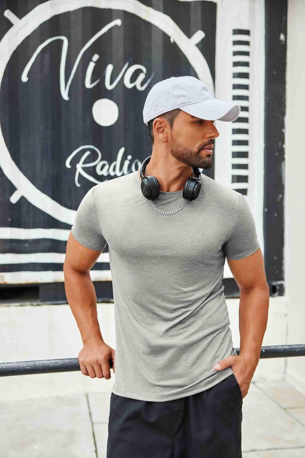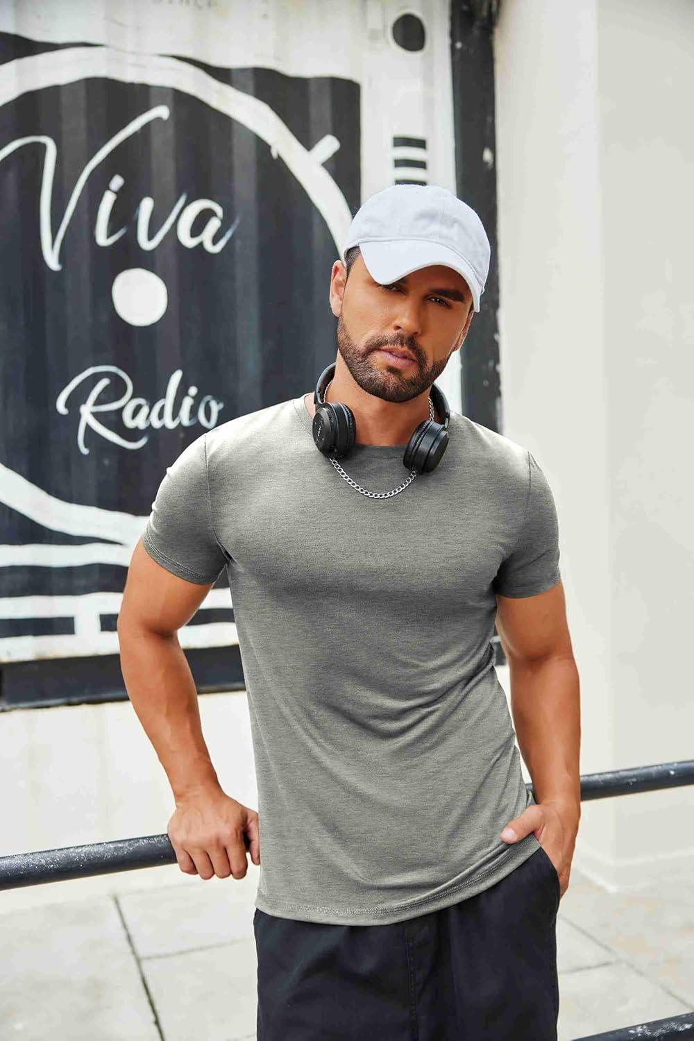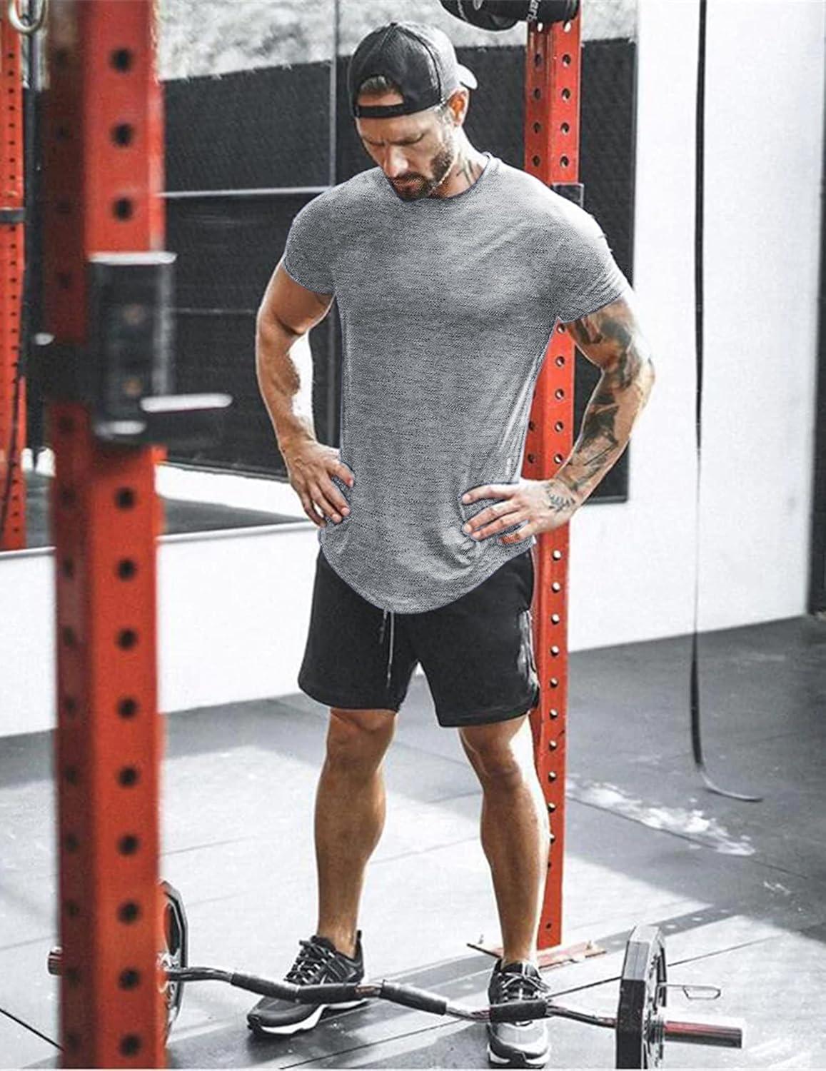 COOFANDY Mens Muscle T-Shirts V-Neck Slim Fit Workout Shirt Short Sleeve Longline Gym Athletic Tee Shirts(Grey)