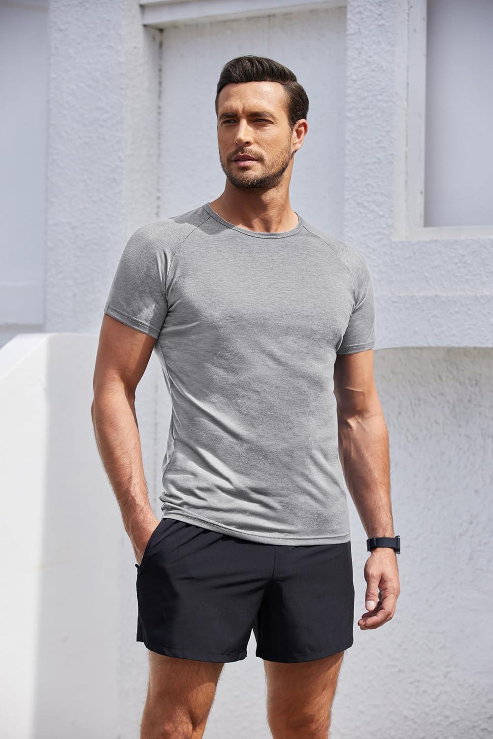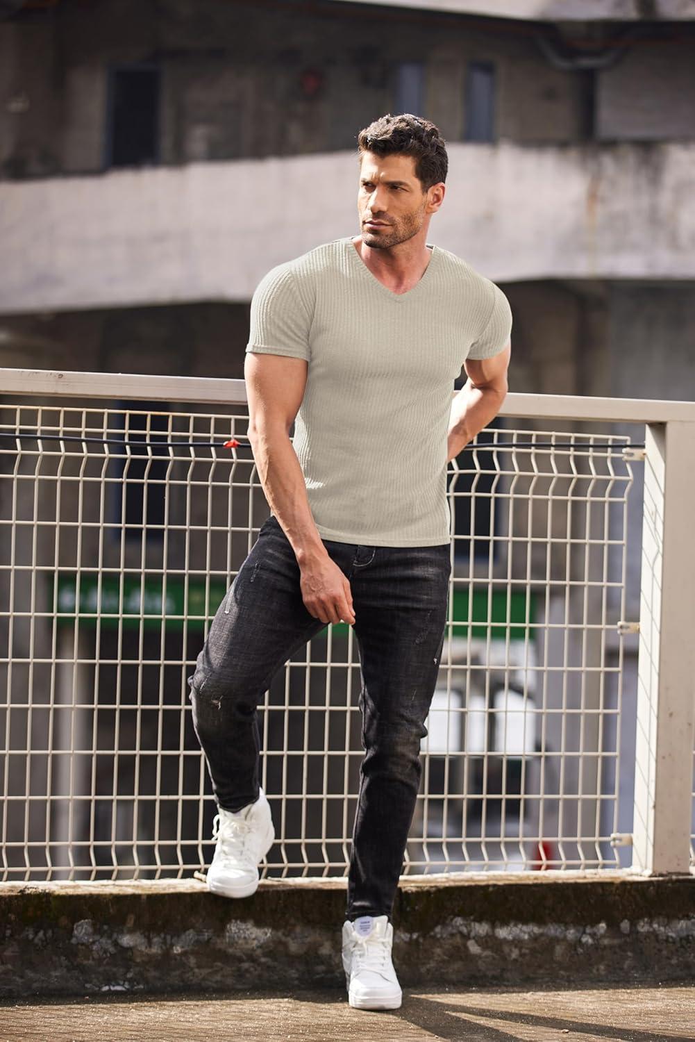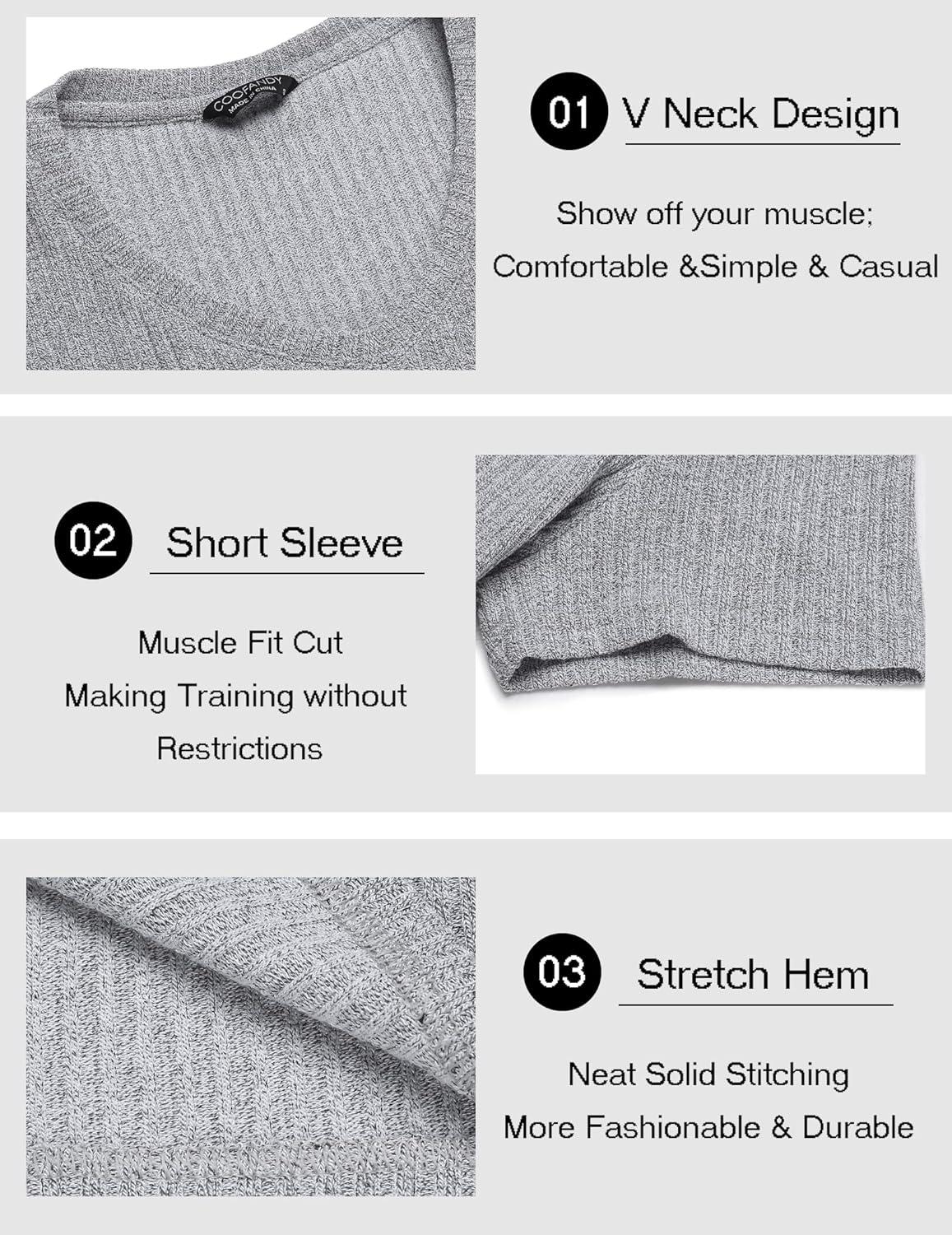 COOFANDY Mens Muscle T-Shirts V-Neck Slim Fit Workout Shirt Short Sleeve Longline Gym Athletic Tee Shirts(Grey)