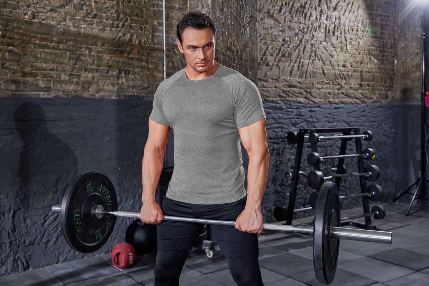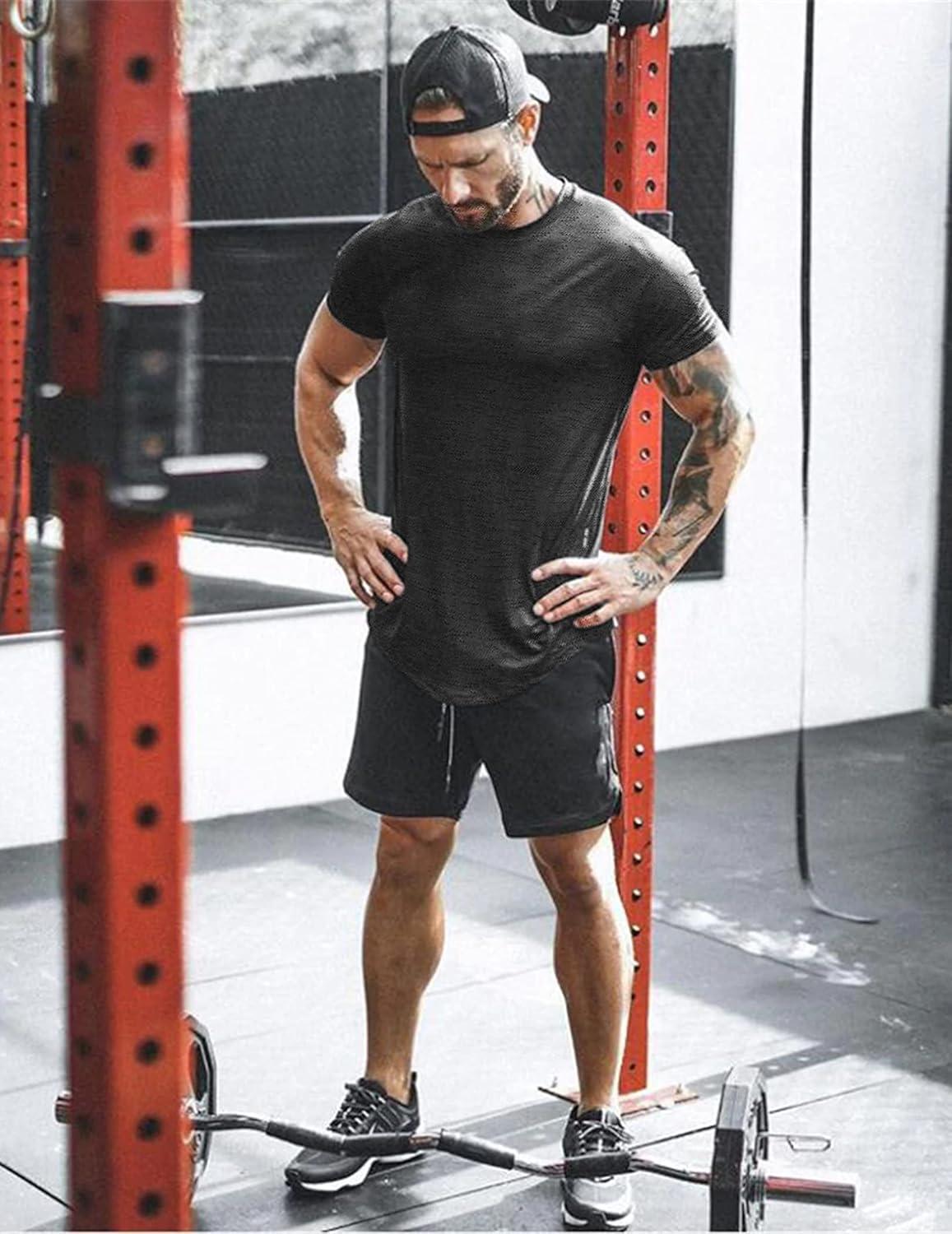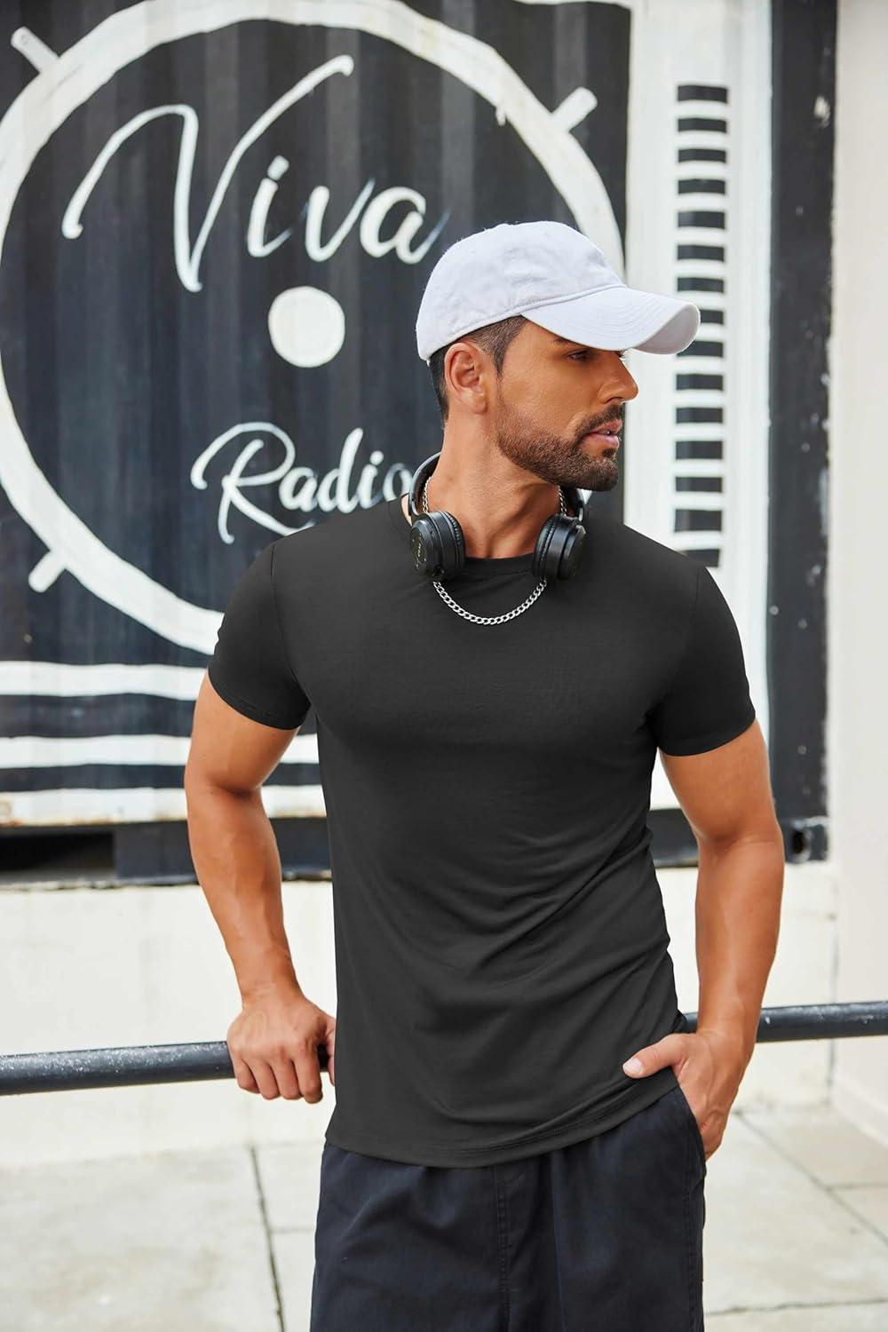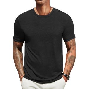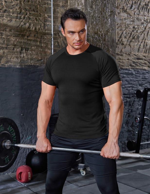 COOFANDY Men Muscle Workout T Shirt Gym Bodybuilding Active Short Sleeve Tee Top Black(One Piece- Black)