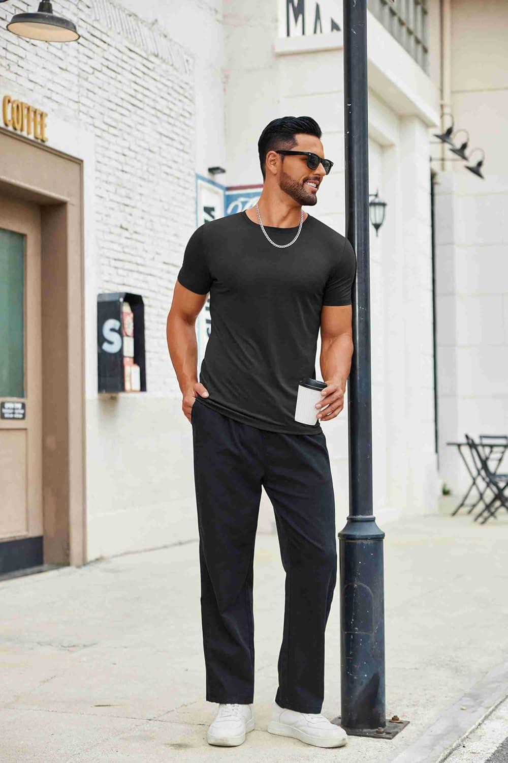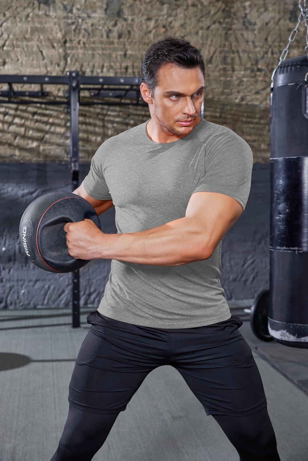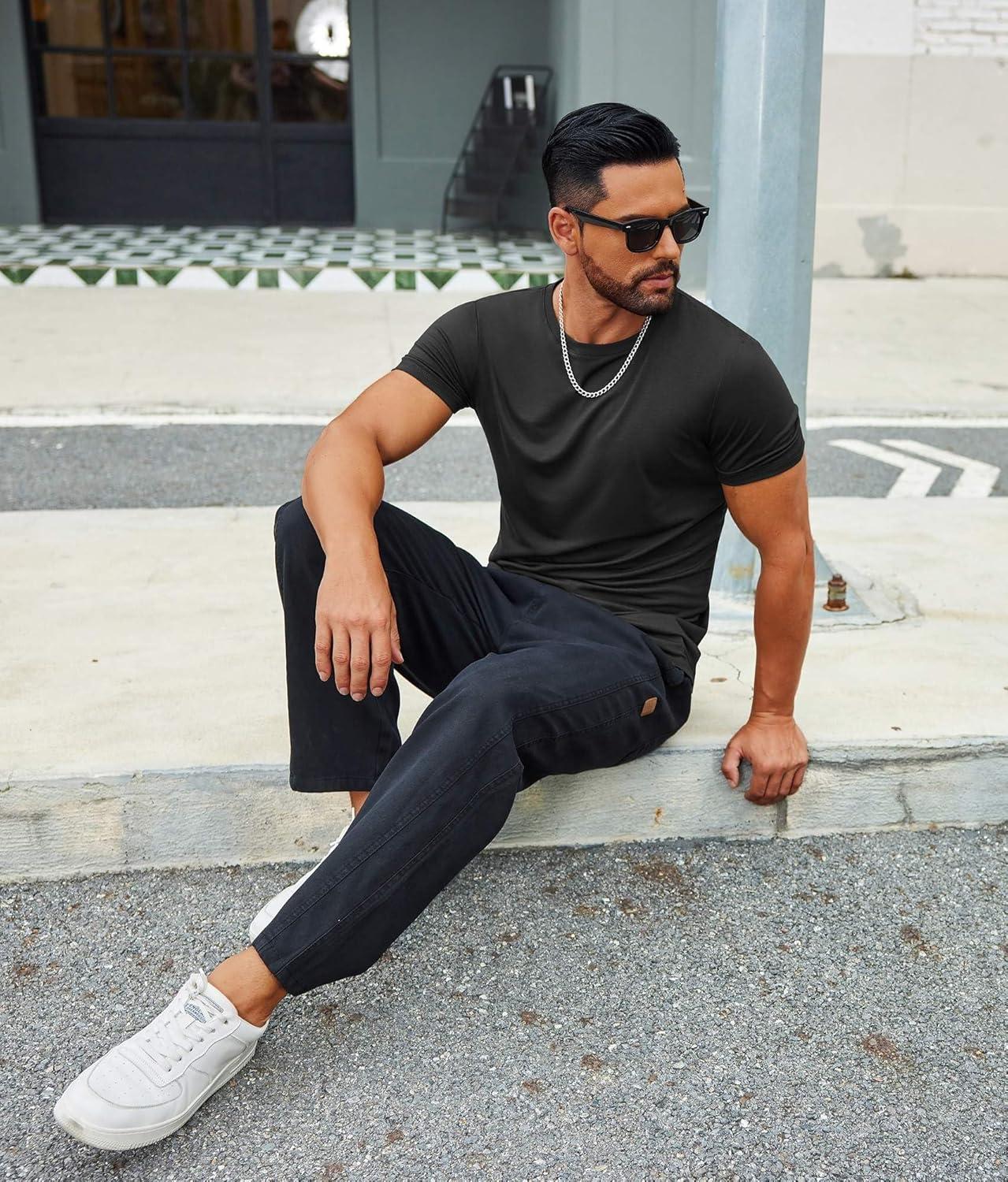COOFANDY Men Muscle Workout T Shirt Gym Bodybuilding Active Short Sleeve Tee Top Black(One Piece- Black)