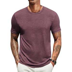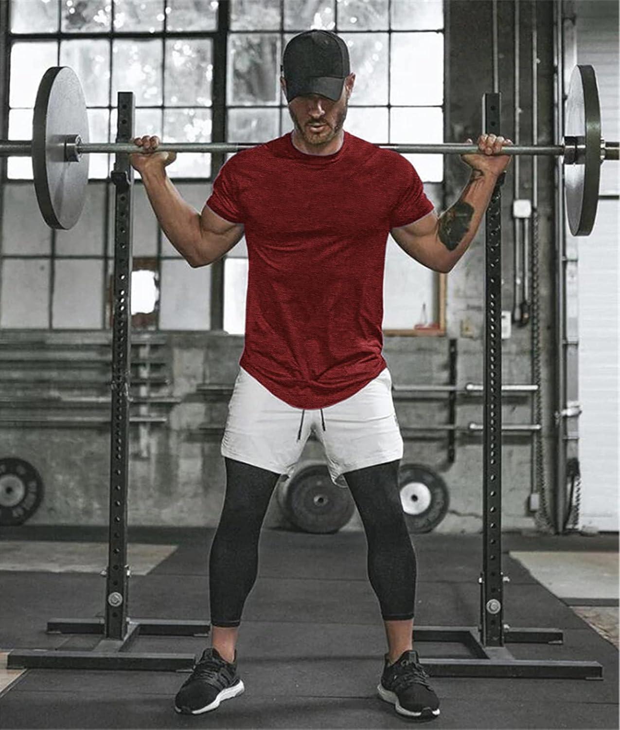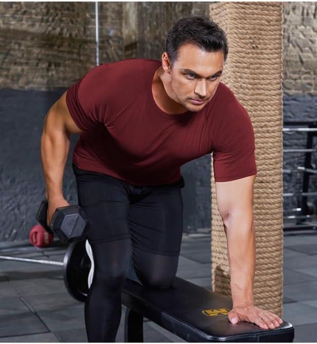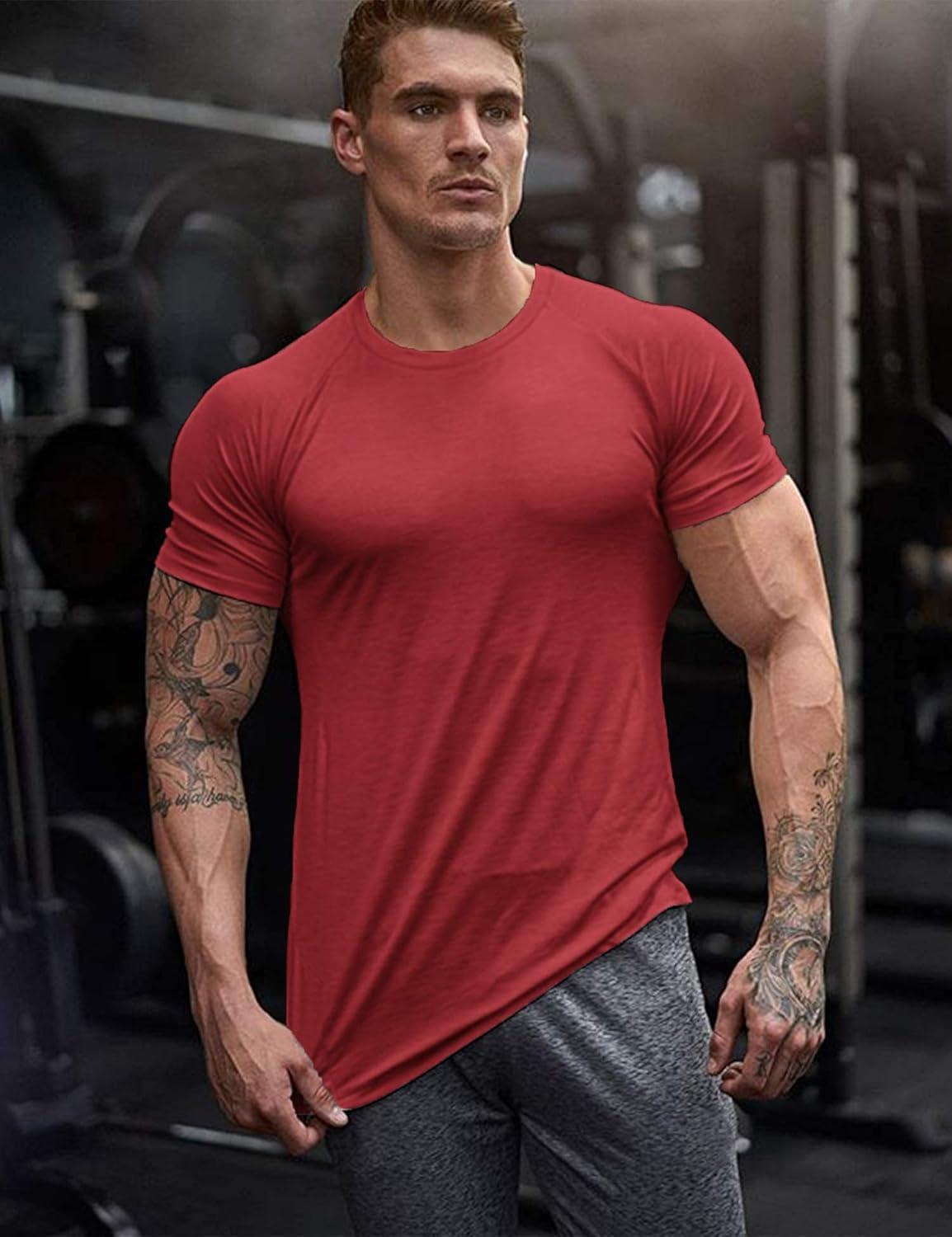 COOFANDY Men Muscle Workout T Shirt Gym Bodybuilding Active Short Sleeve Tee Top Black(One Piece- Wine Red)