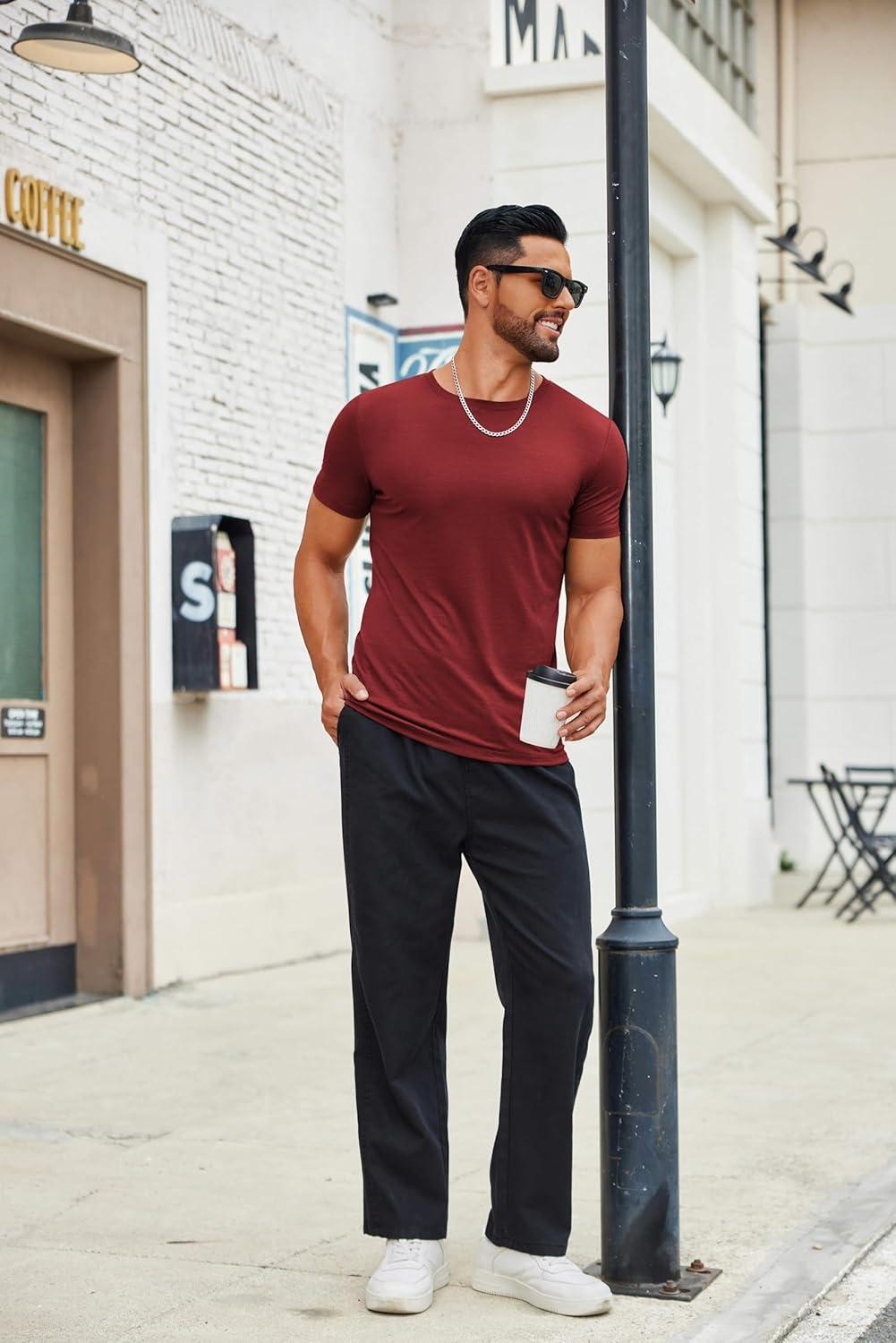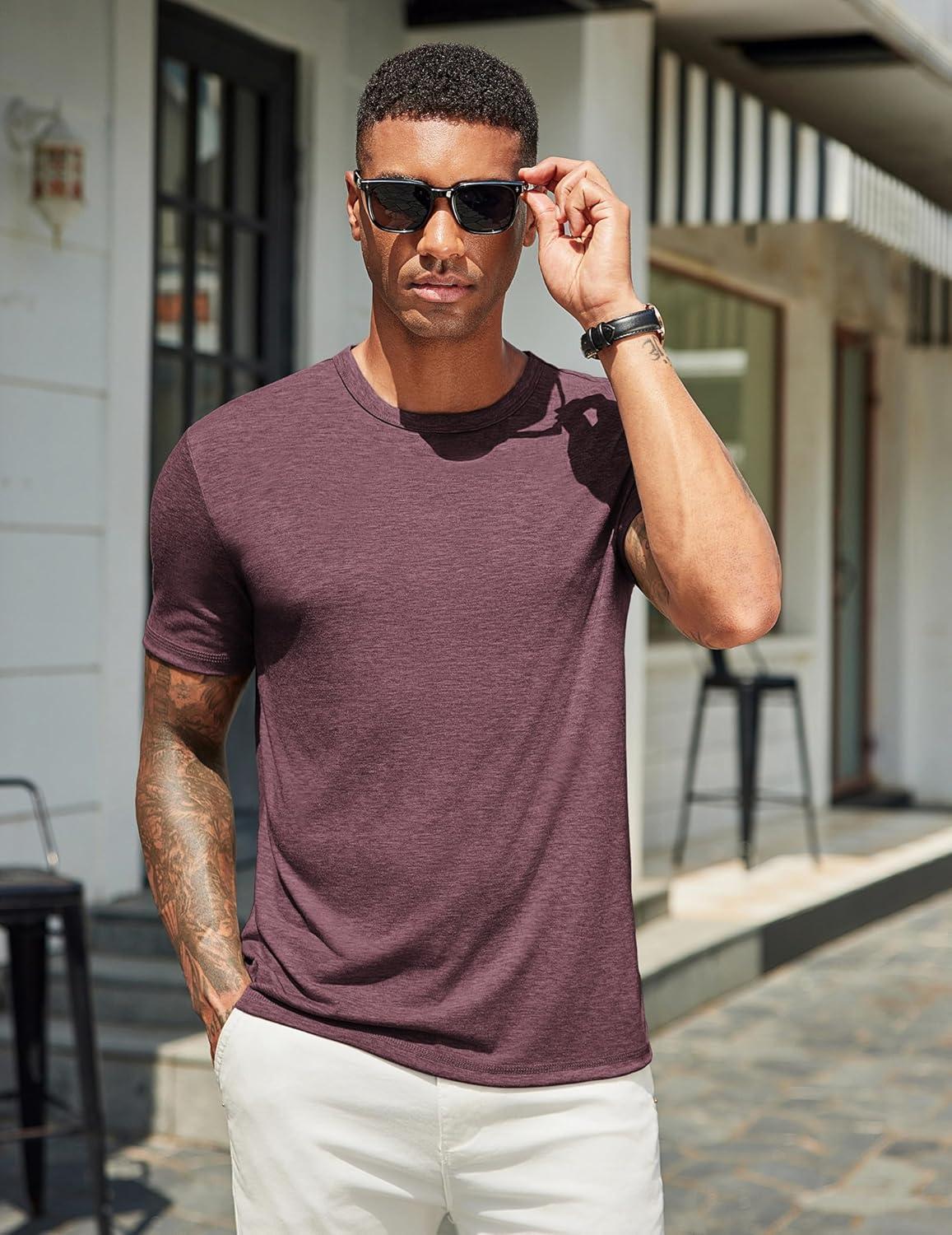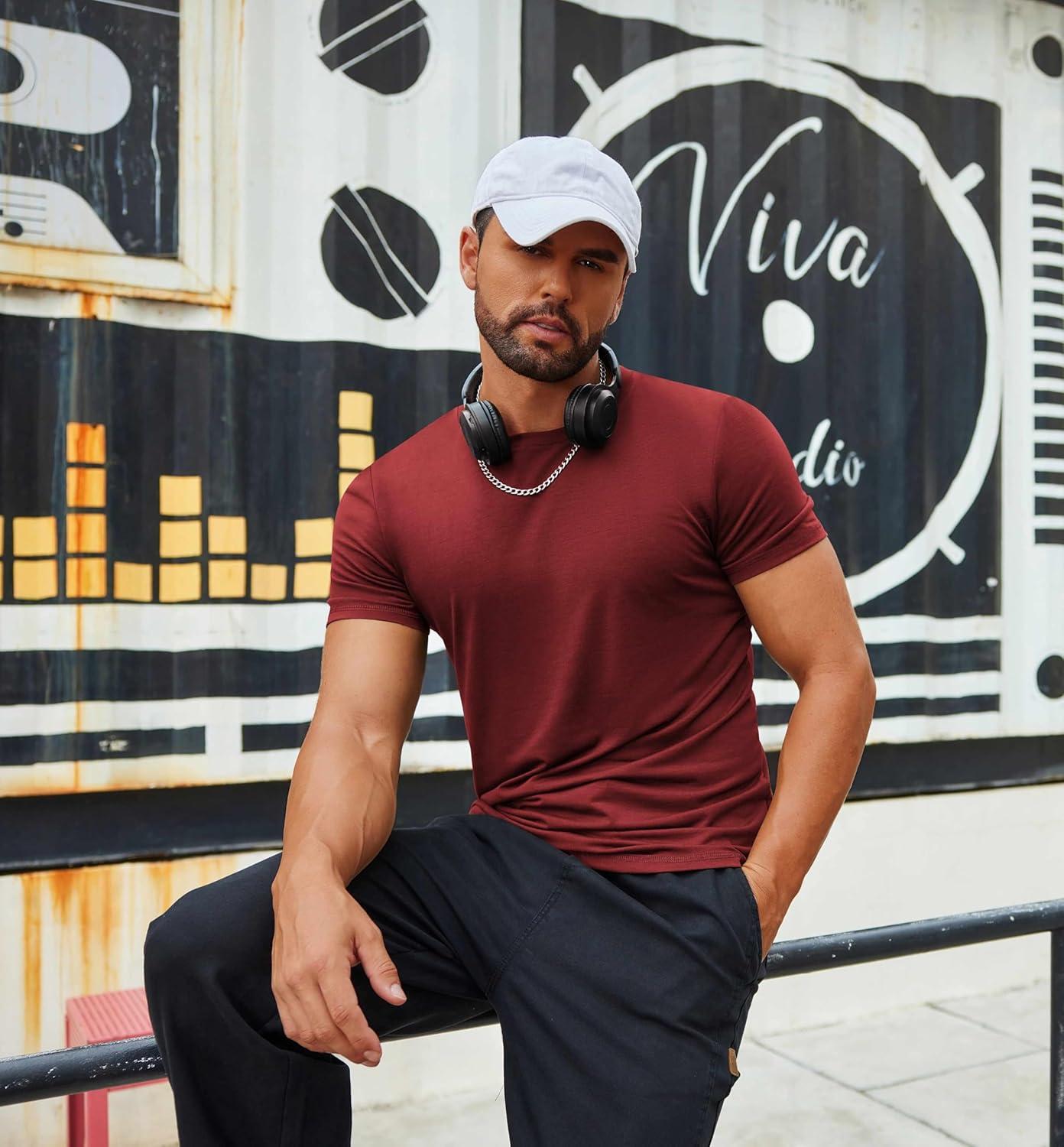 COOFANDY Men Muscle Workout T Shirt Gym Bodybuilding Active Short Sleeve Tee Top Black(One Piece- Wine Red)